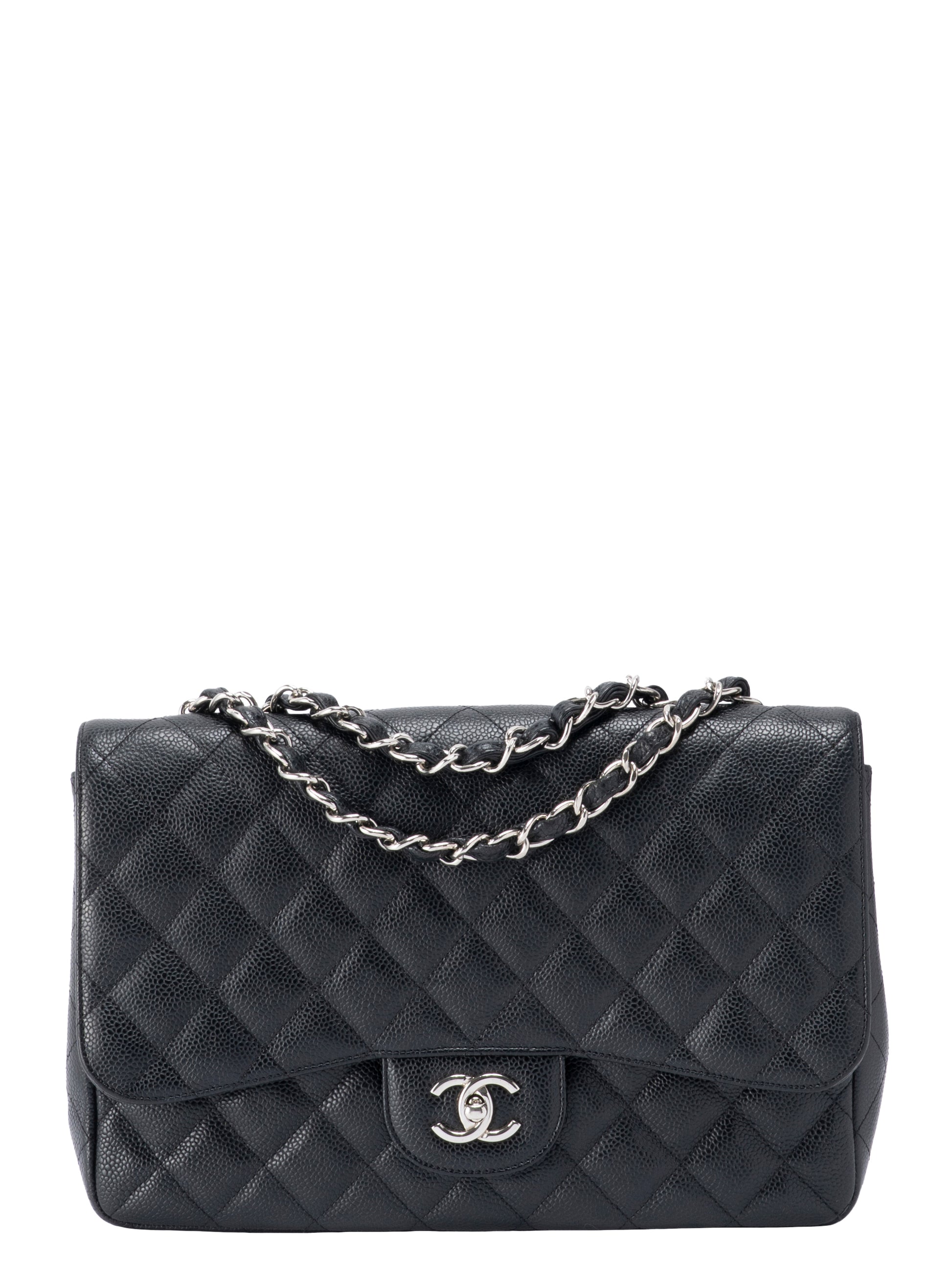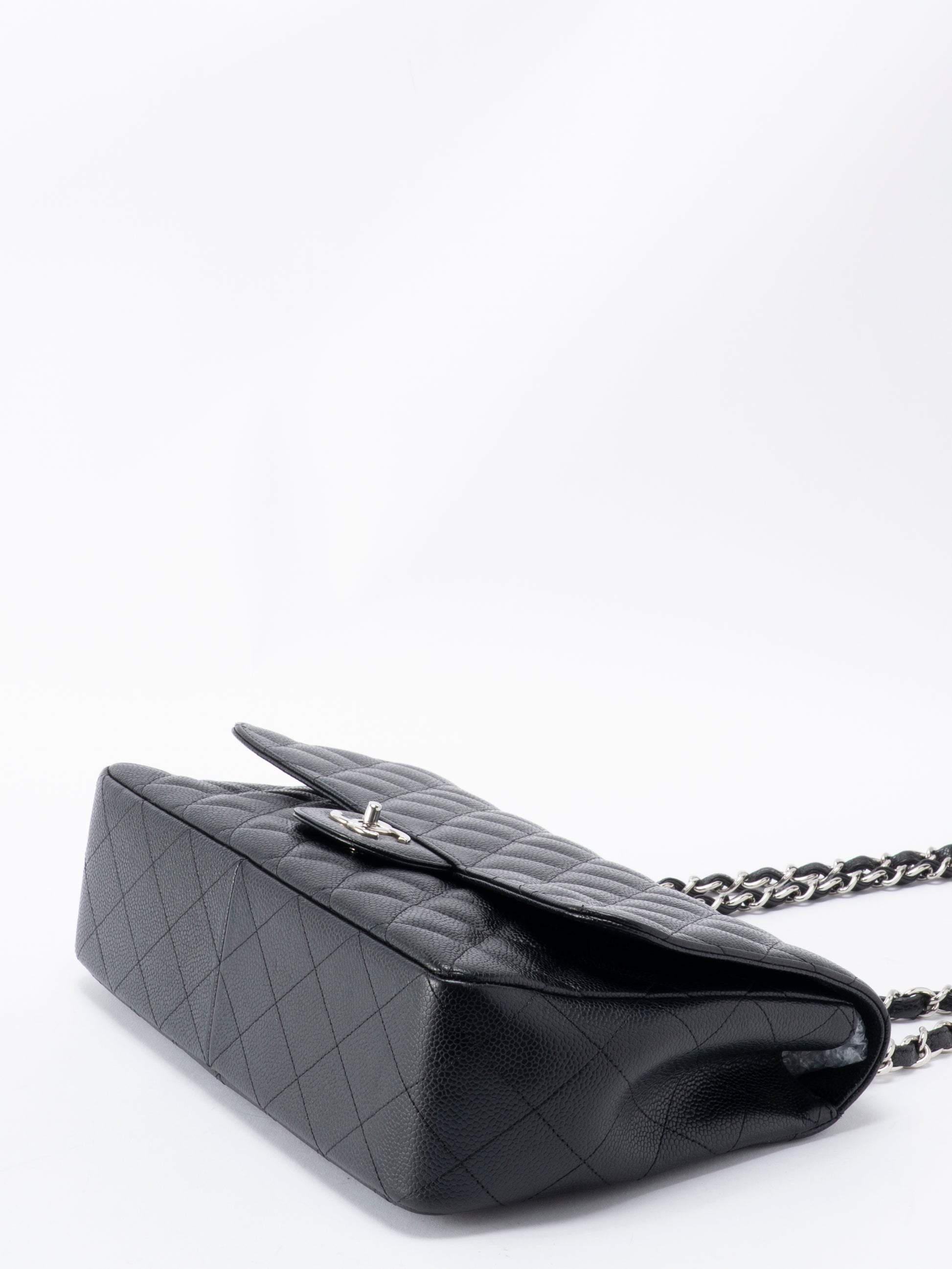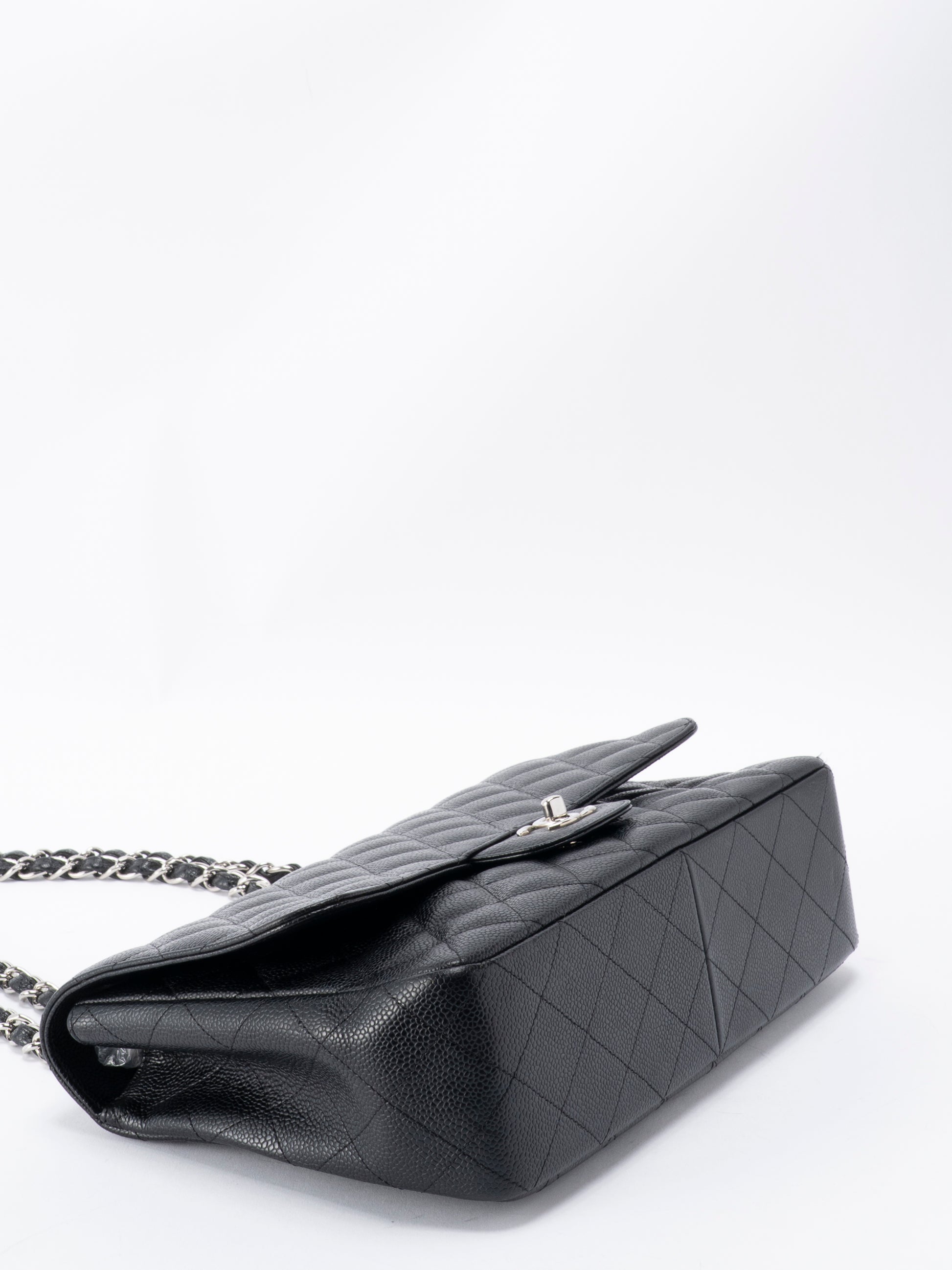 シャネル デカマトラッセ30 チェーンショルダーバッグ キャビアスキン ブラック シルバー金具