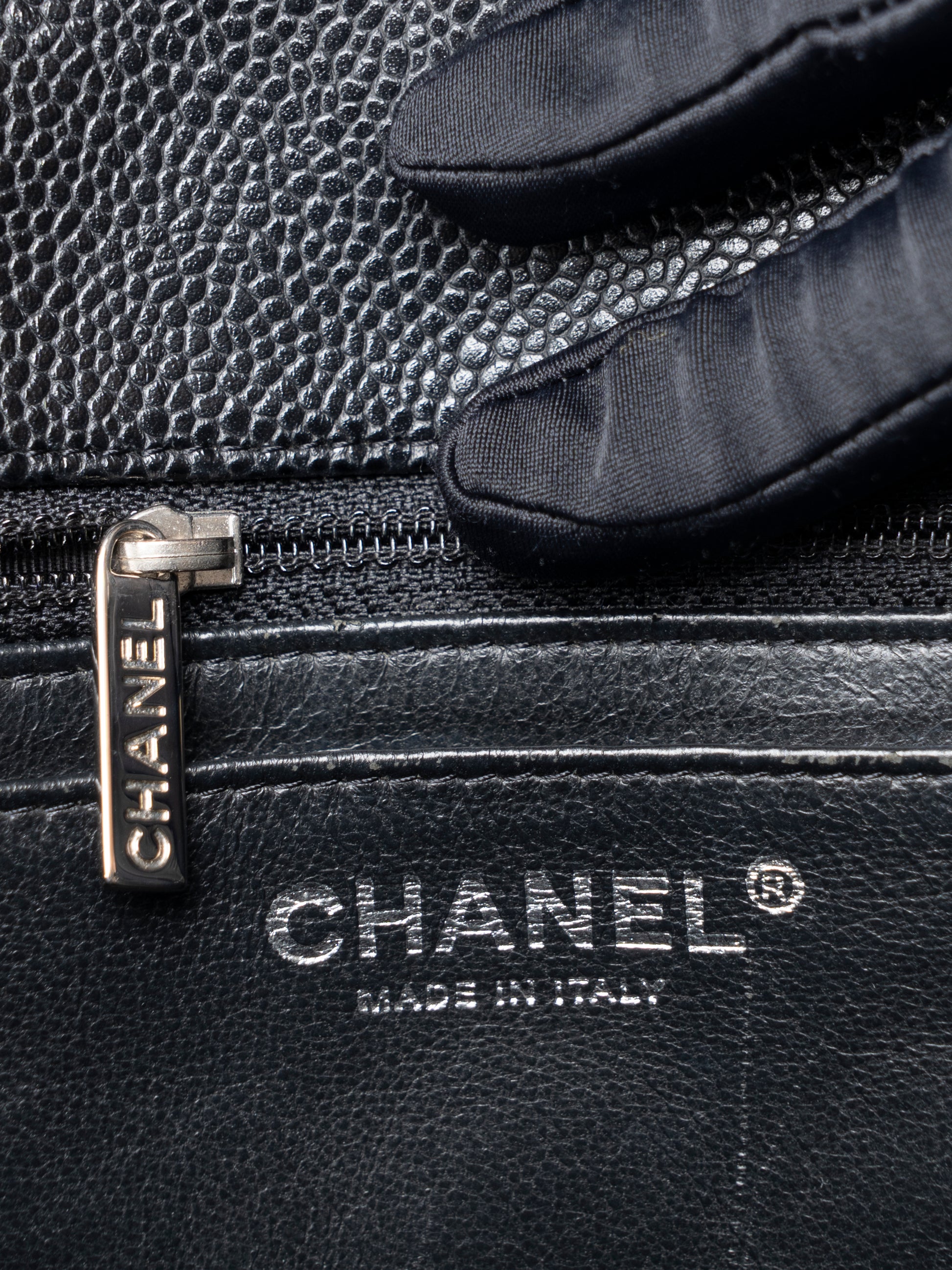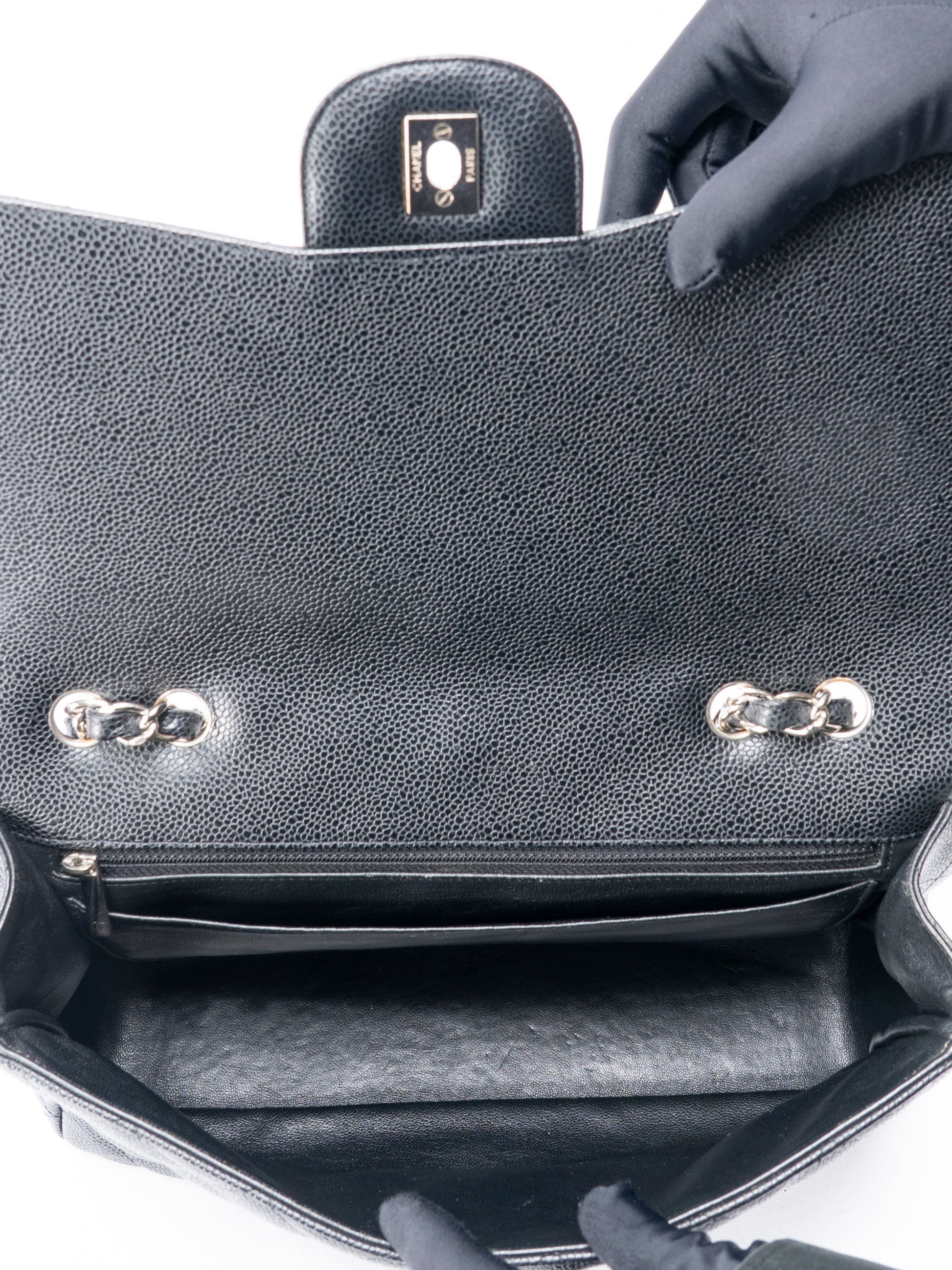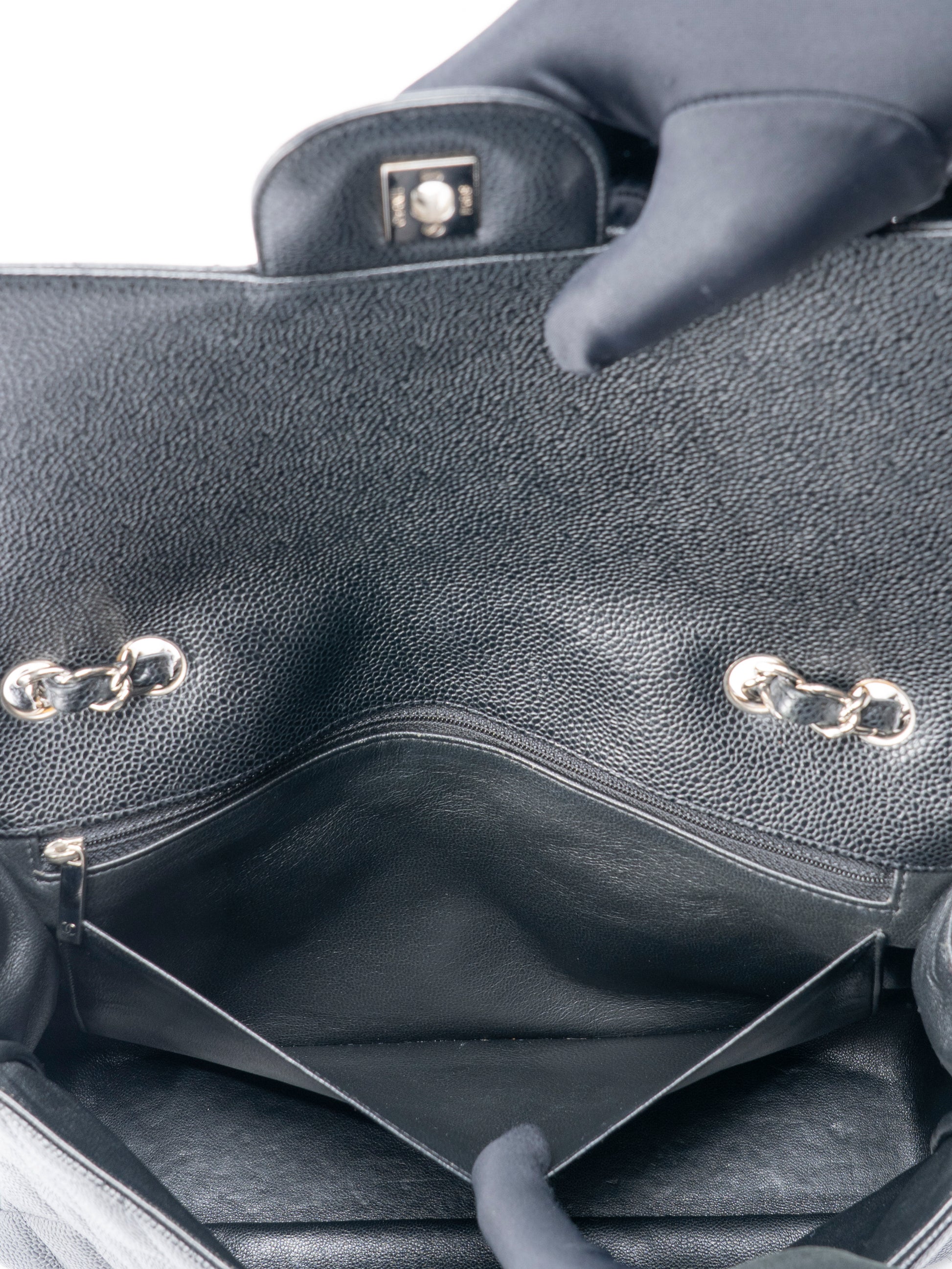 シャネル デカマトラッセ30 チェーンショルダーバッグ キャビアスキン ブラック シルバー金具