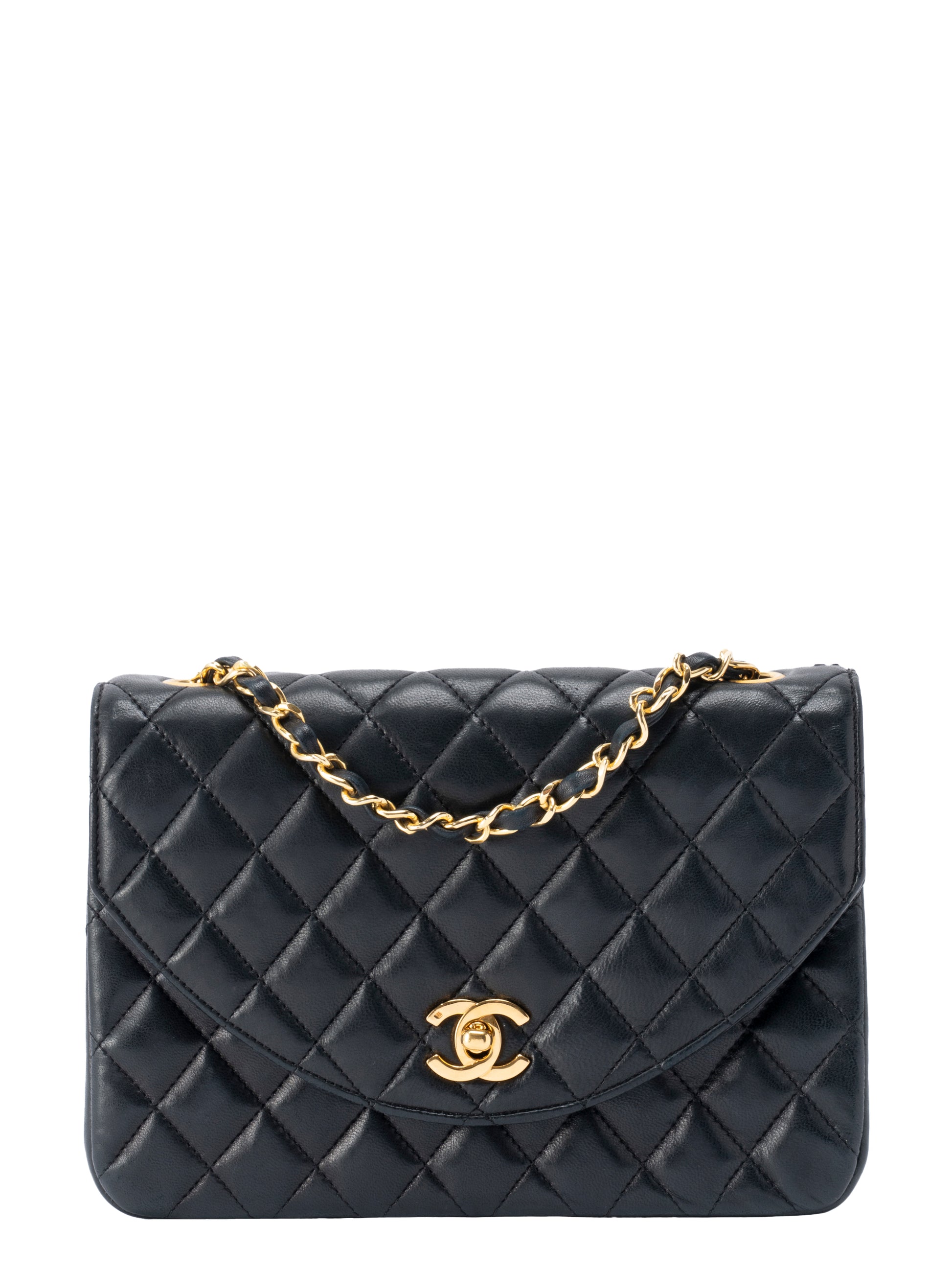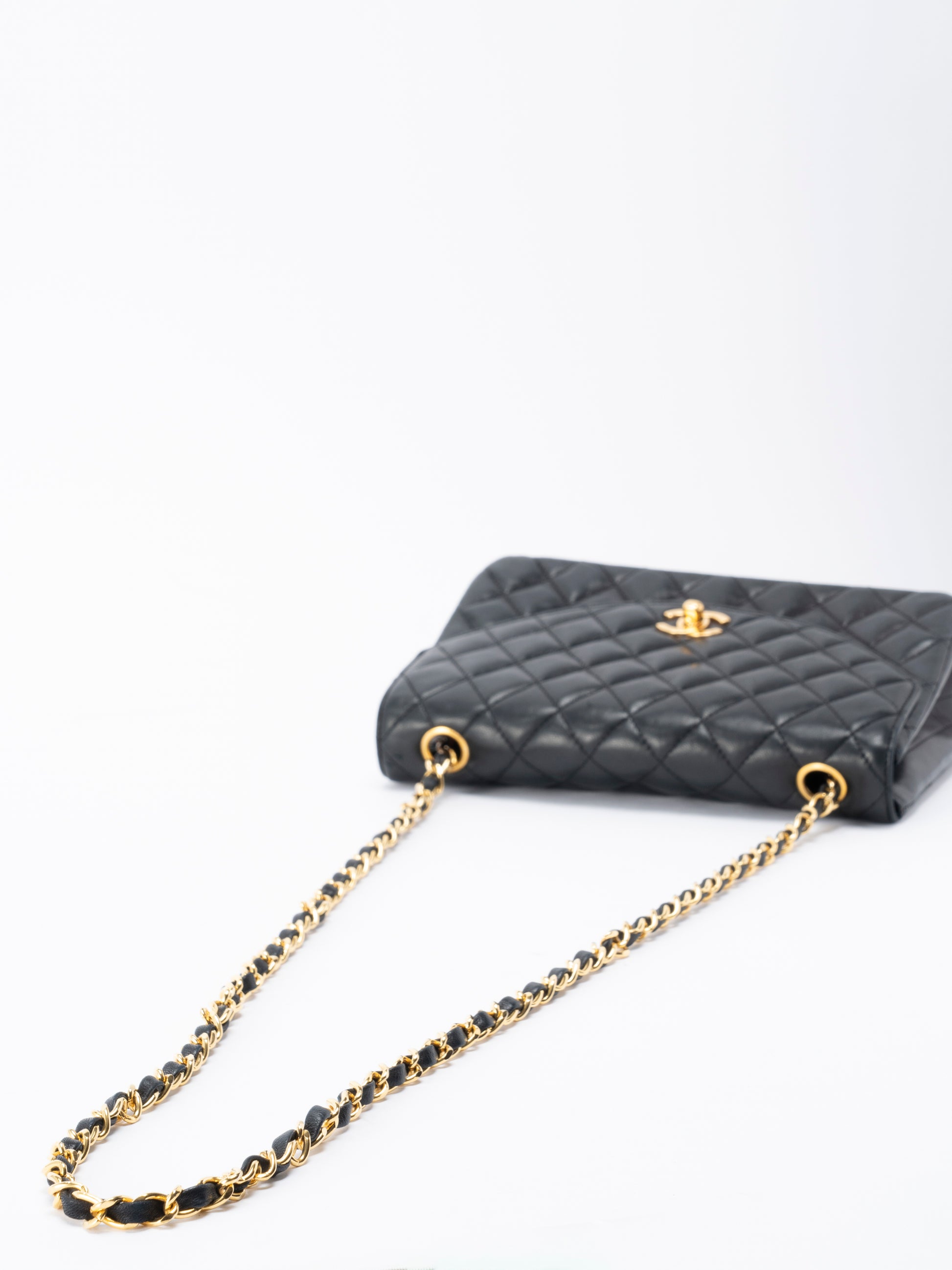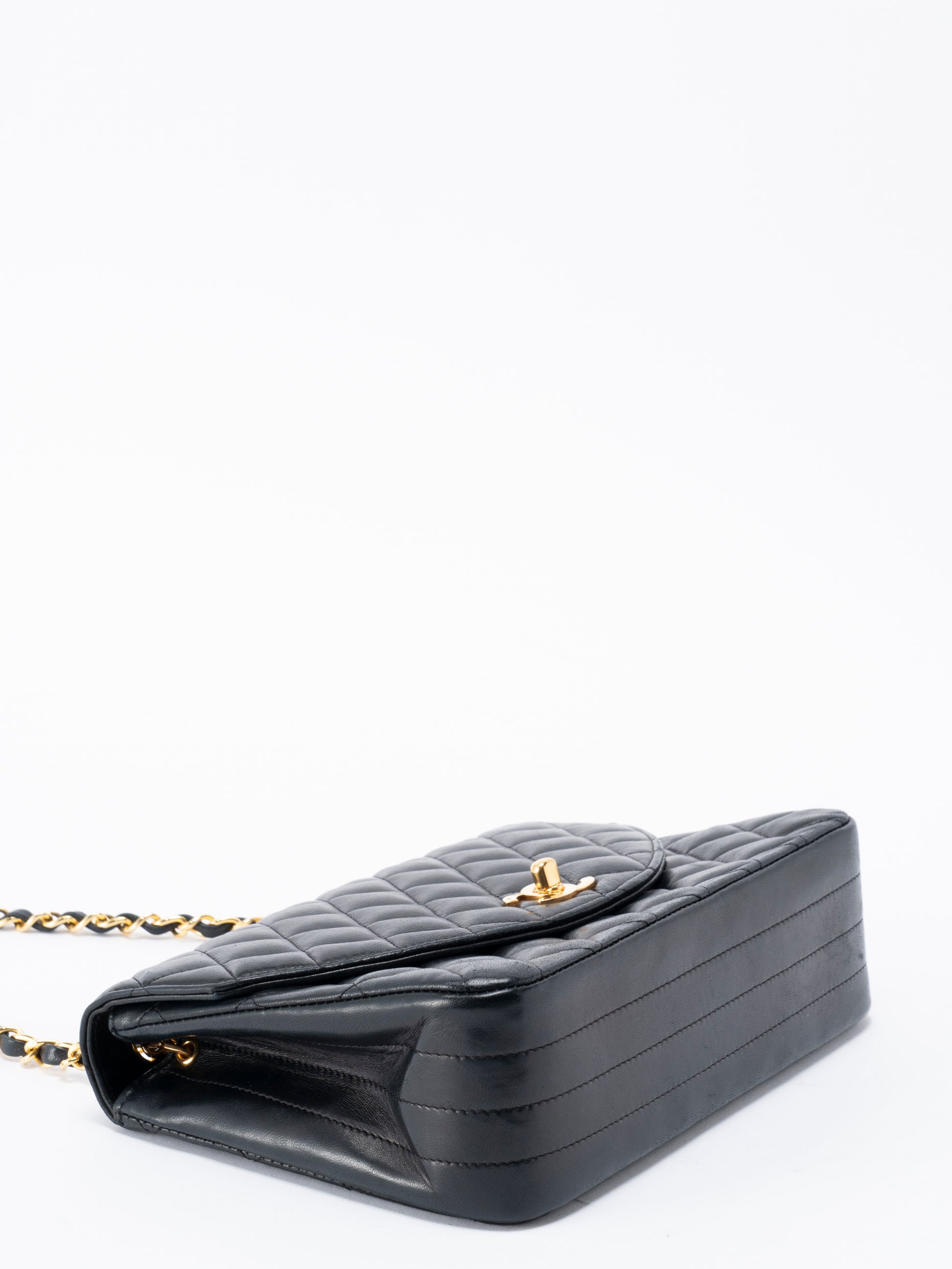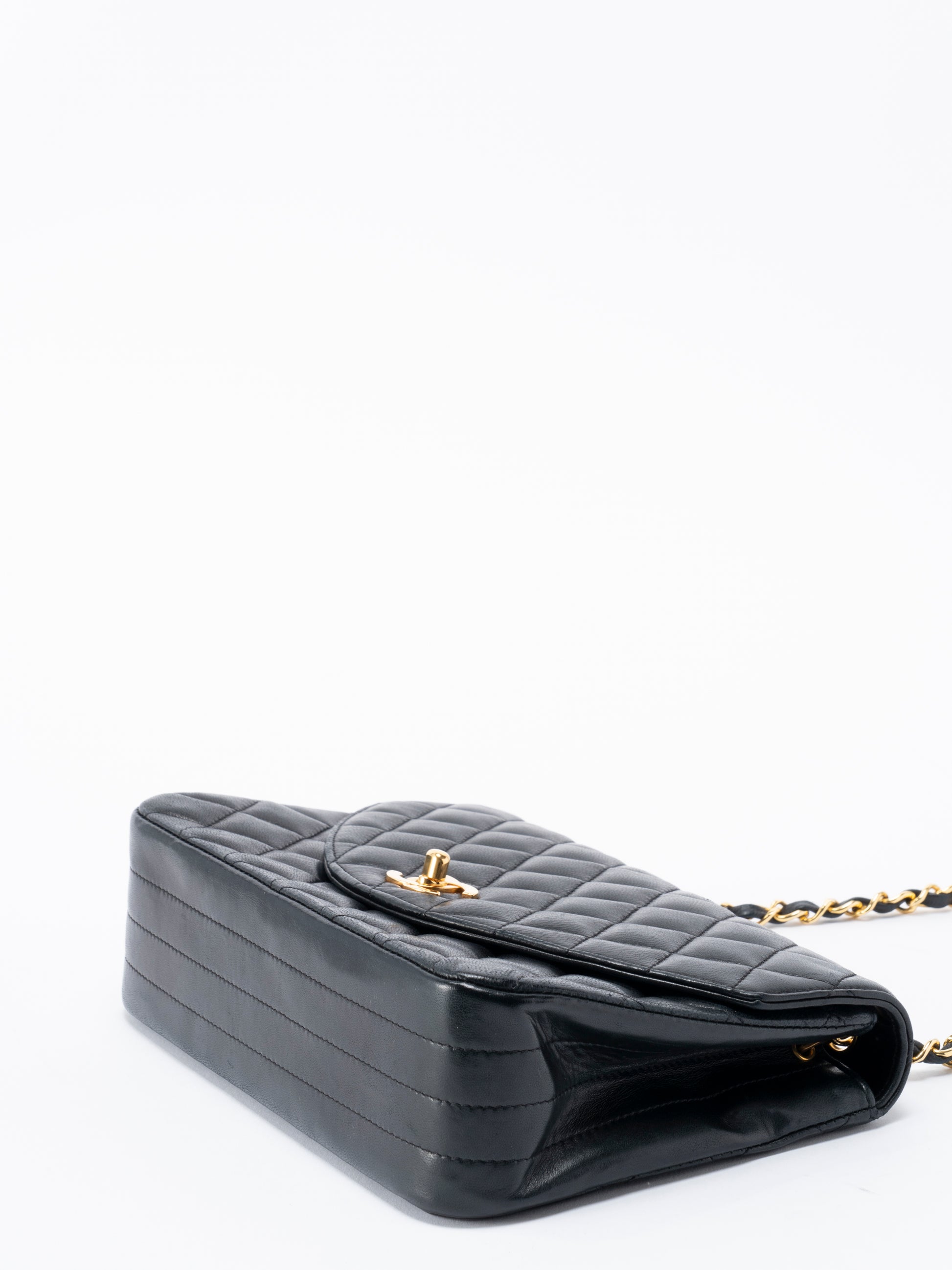 シャネル マトラッセ シングルフラップ チェーンショルダーバッグ ラムスキン ブラック ゴールド金具