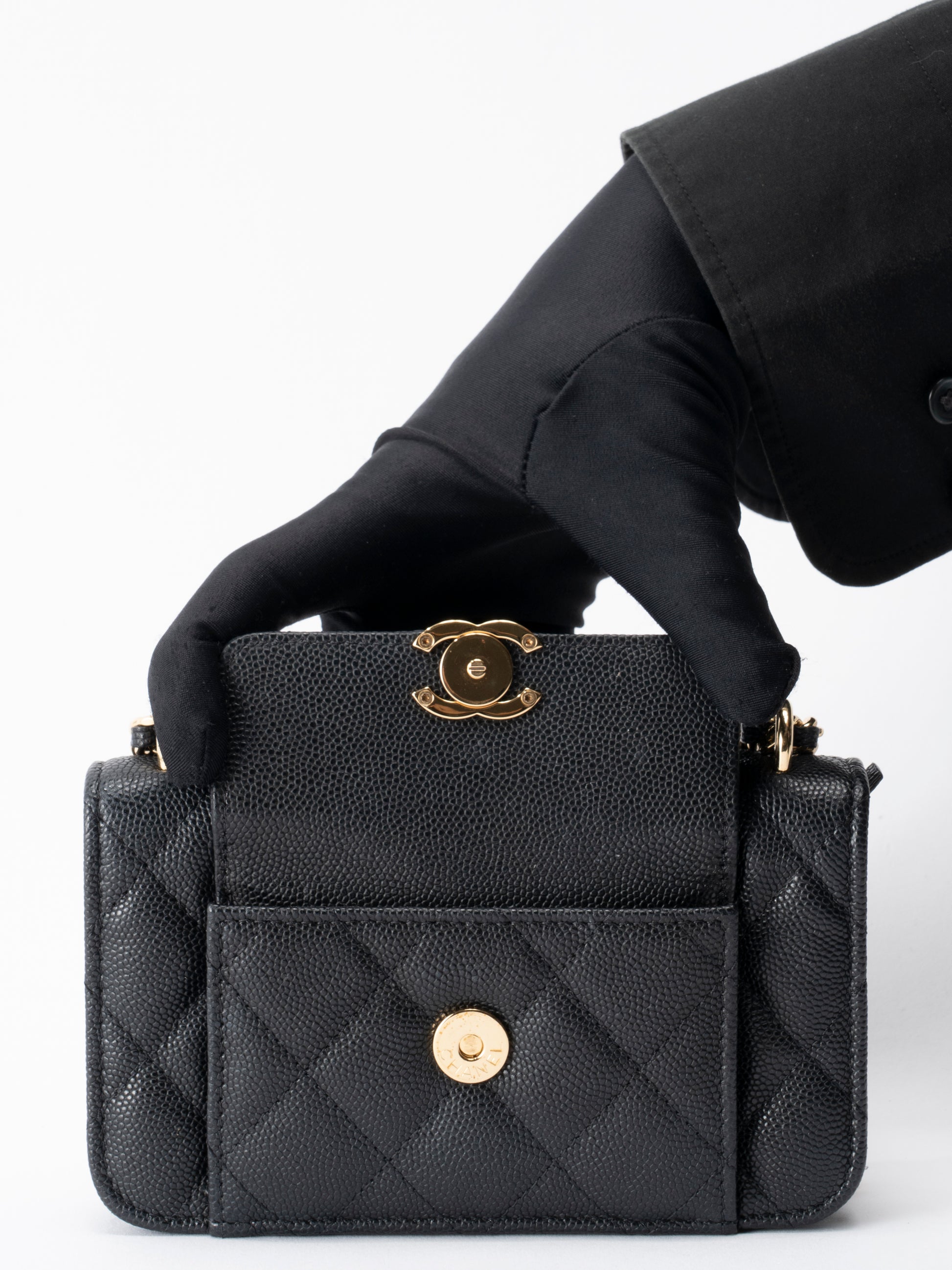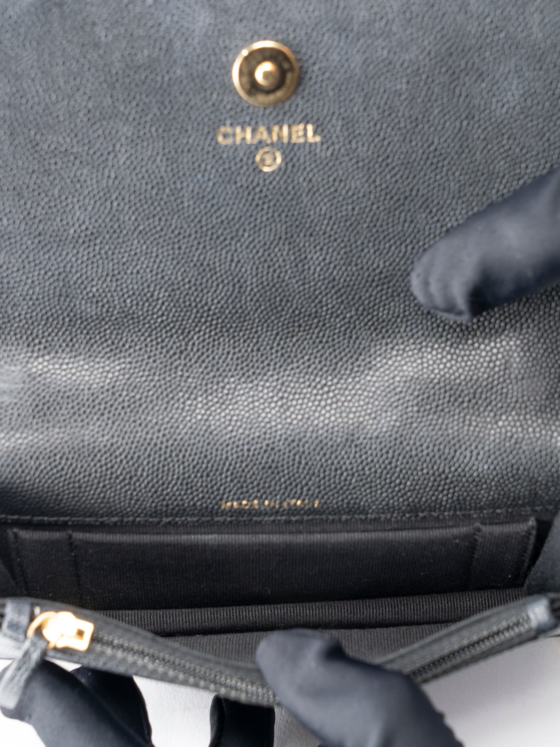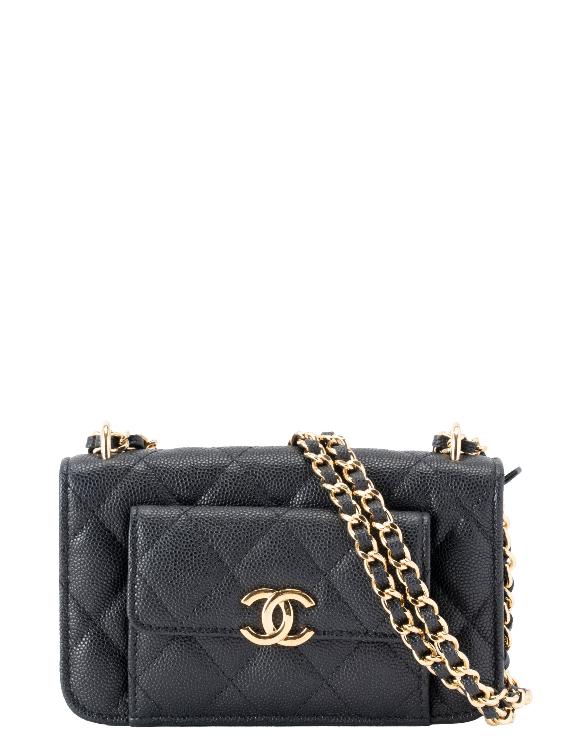シャネル マトラッセ チェーンクラッチ ランダムシリアル キャビアスキン ブラック ゴールド金具