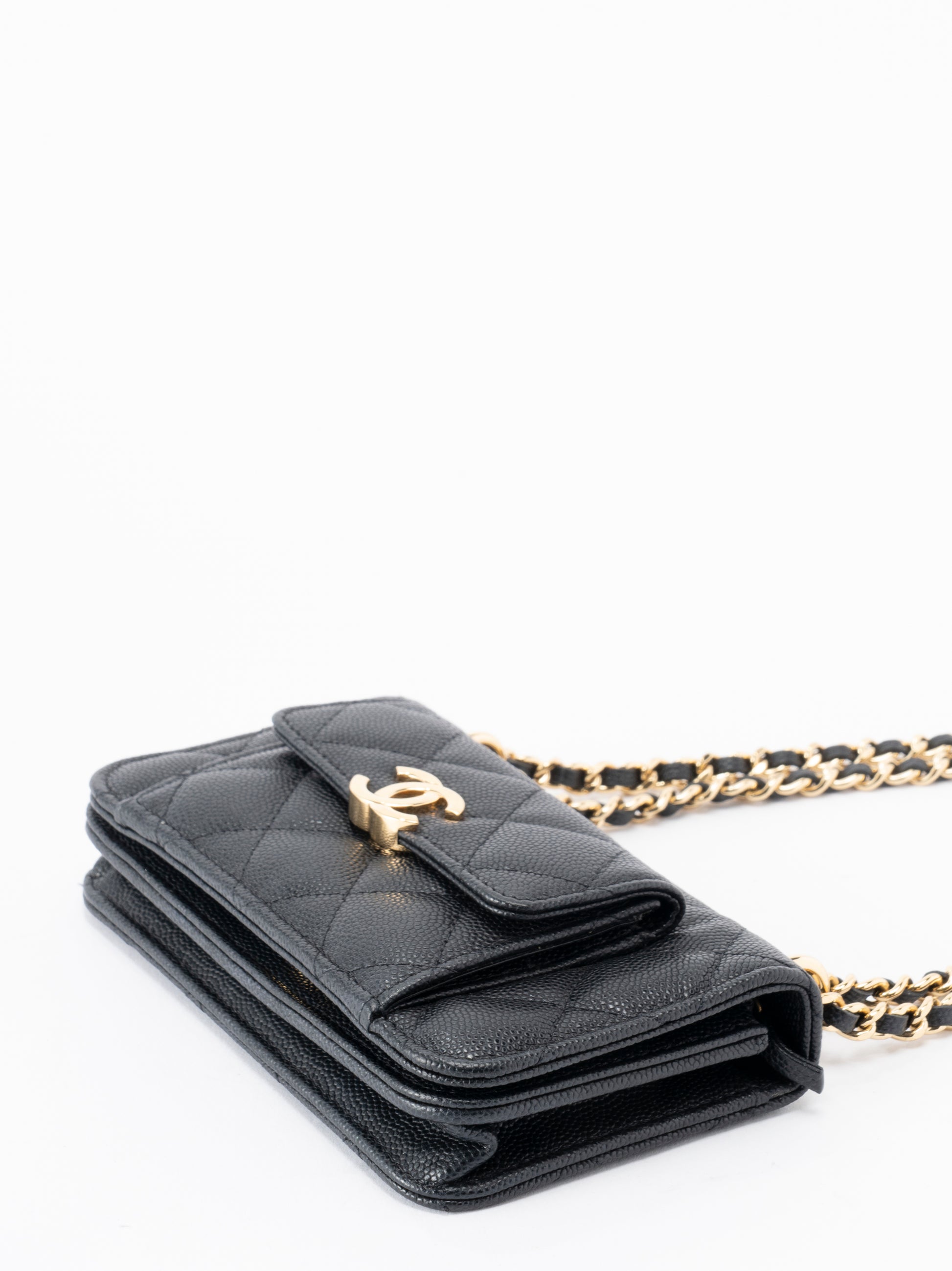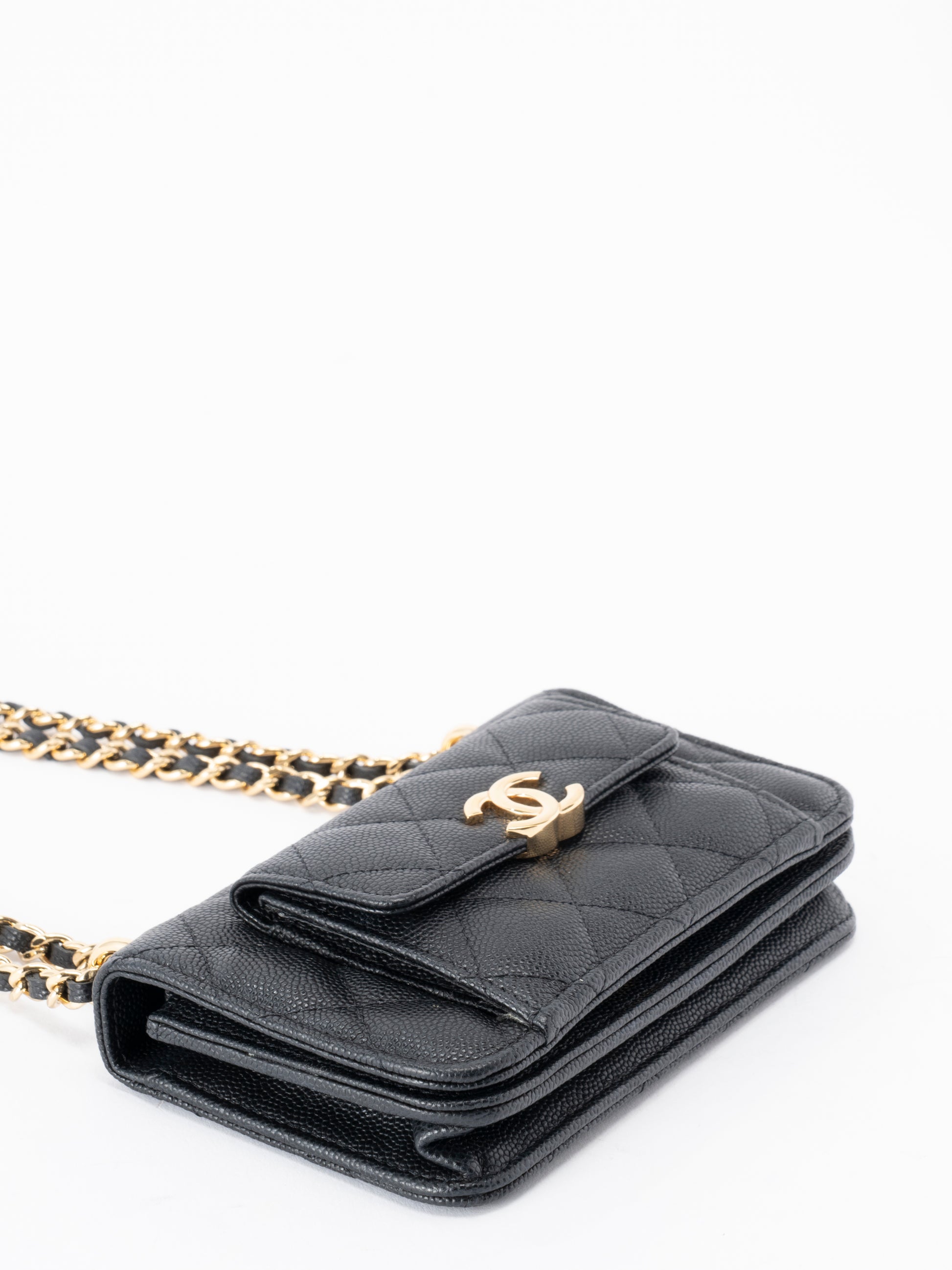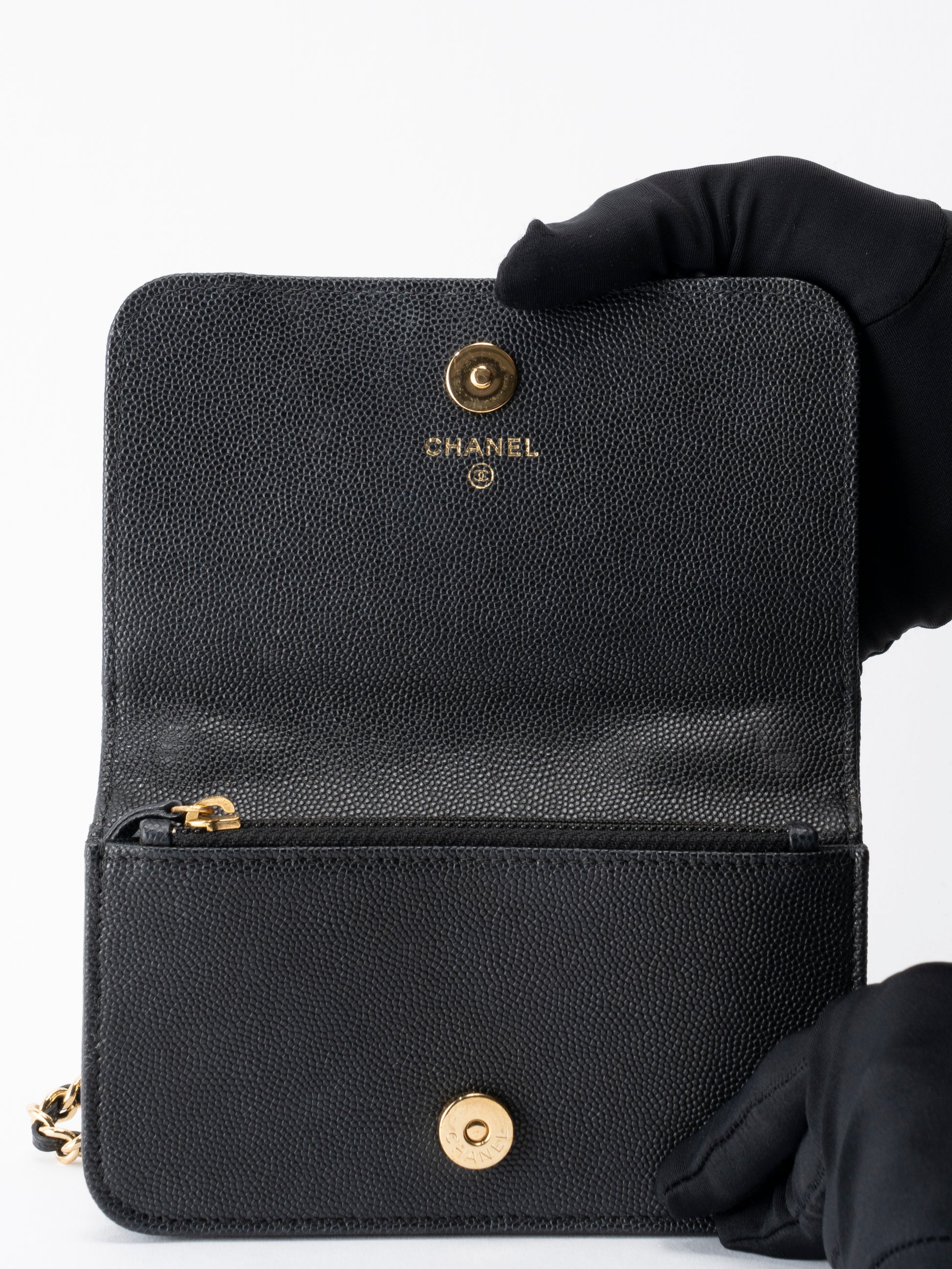 シャネル マトラッセ チェーンクラッチ ランダムシリアル キャビアスキン ブラック ゴールド金具