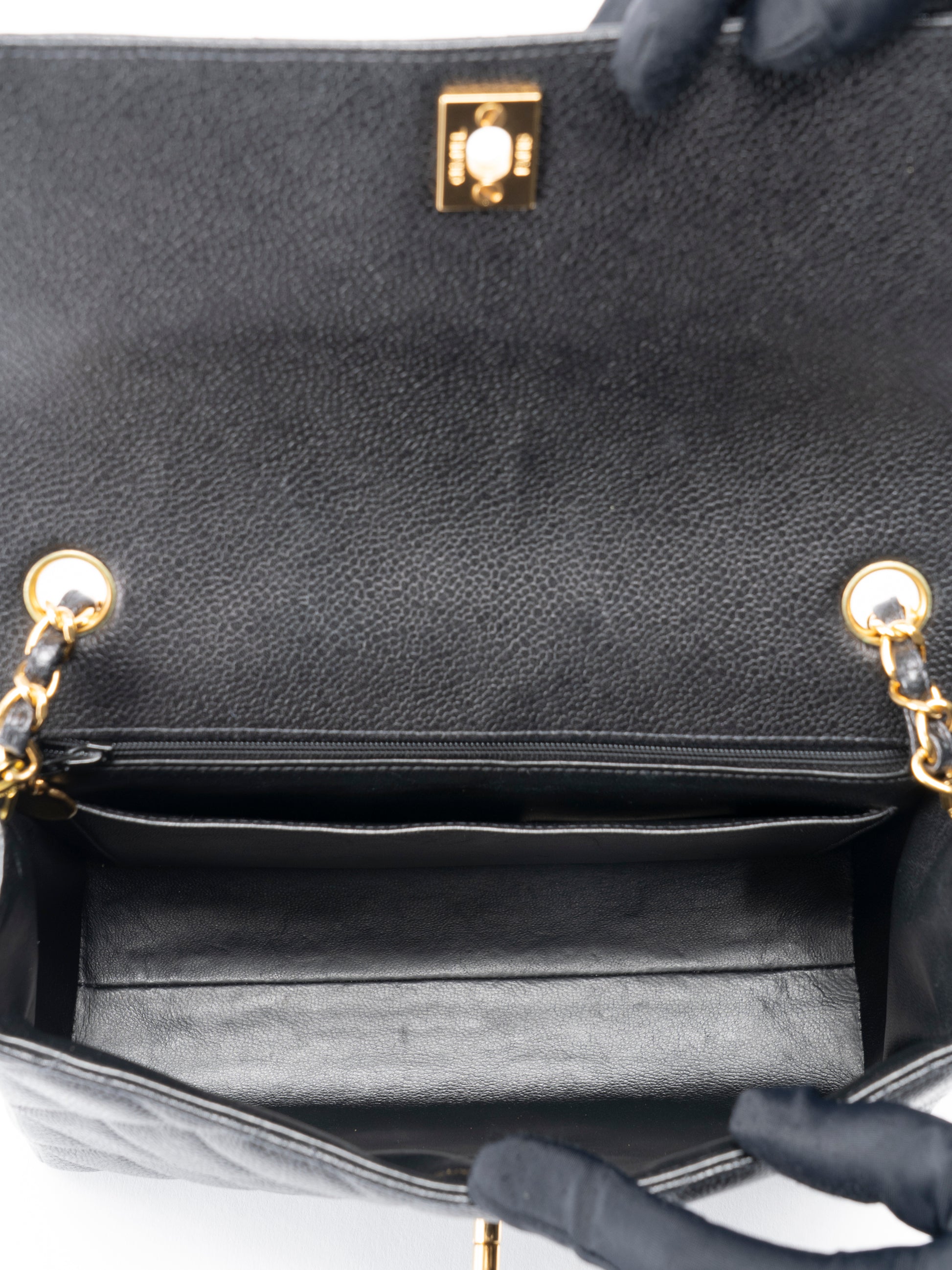 シャネル マトラッセ チェーンショルダーバッグ キャビアスキン ブラック ゴールド金具