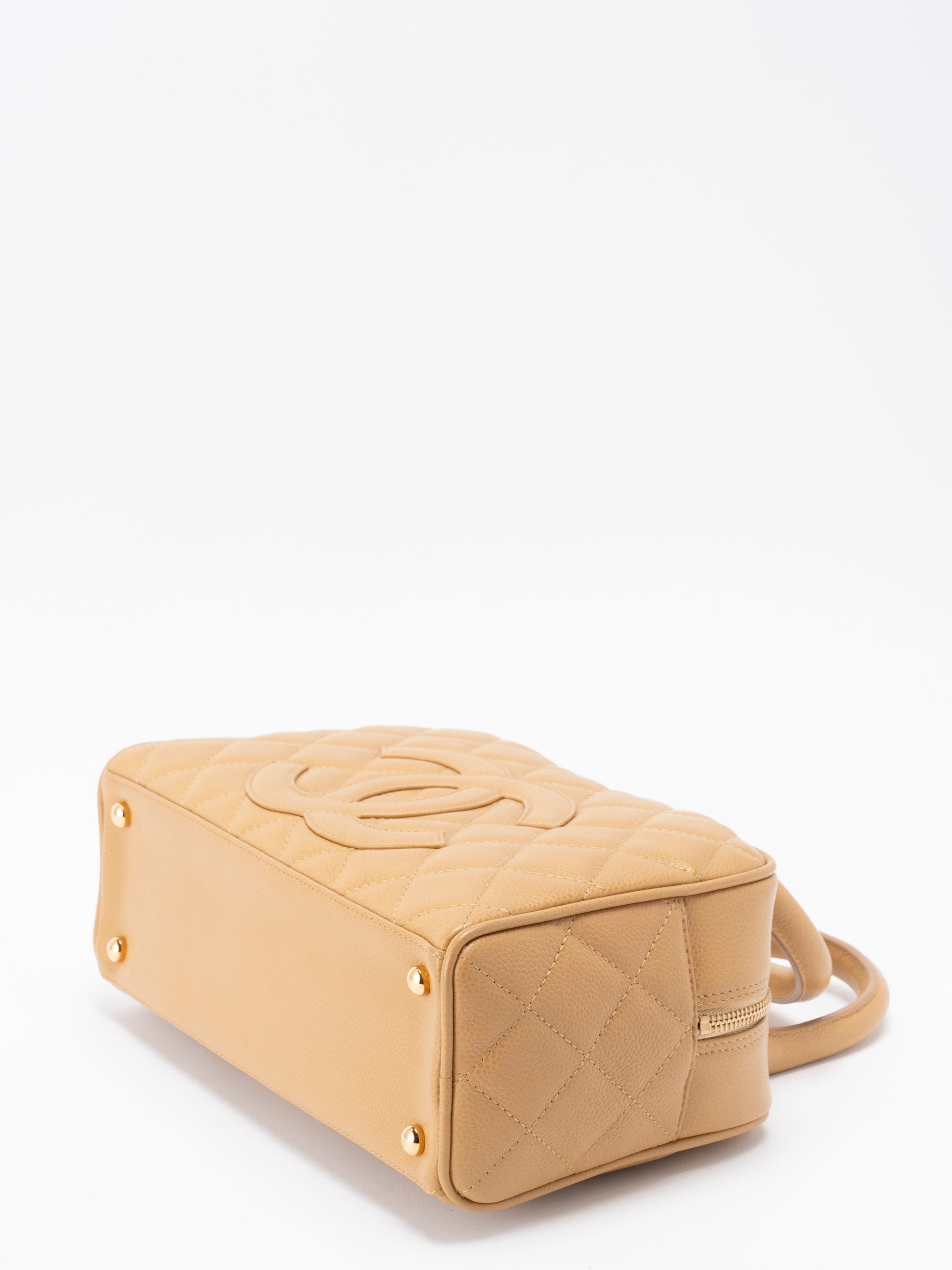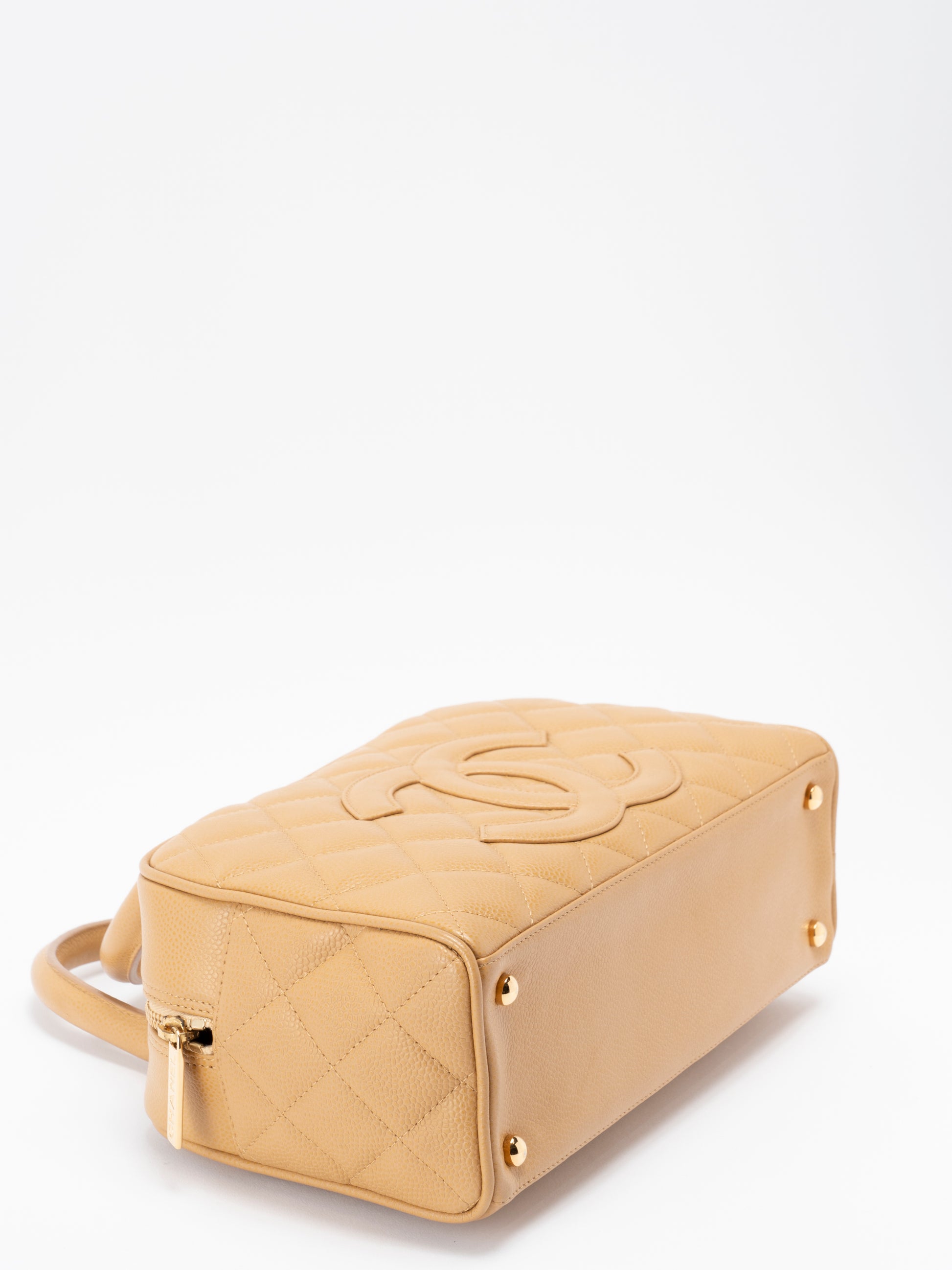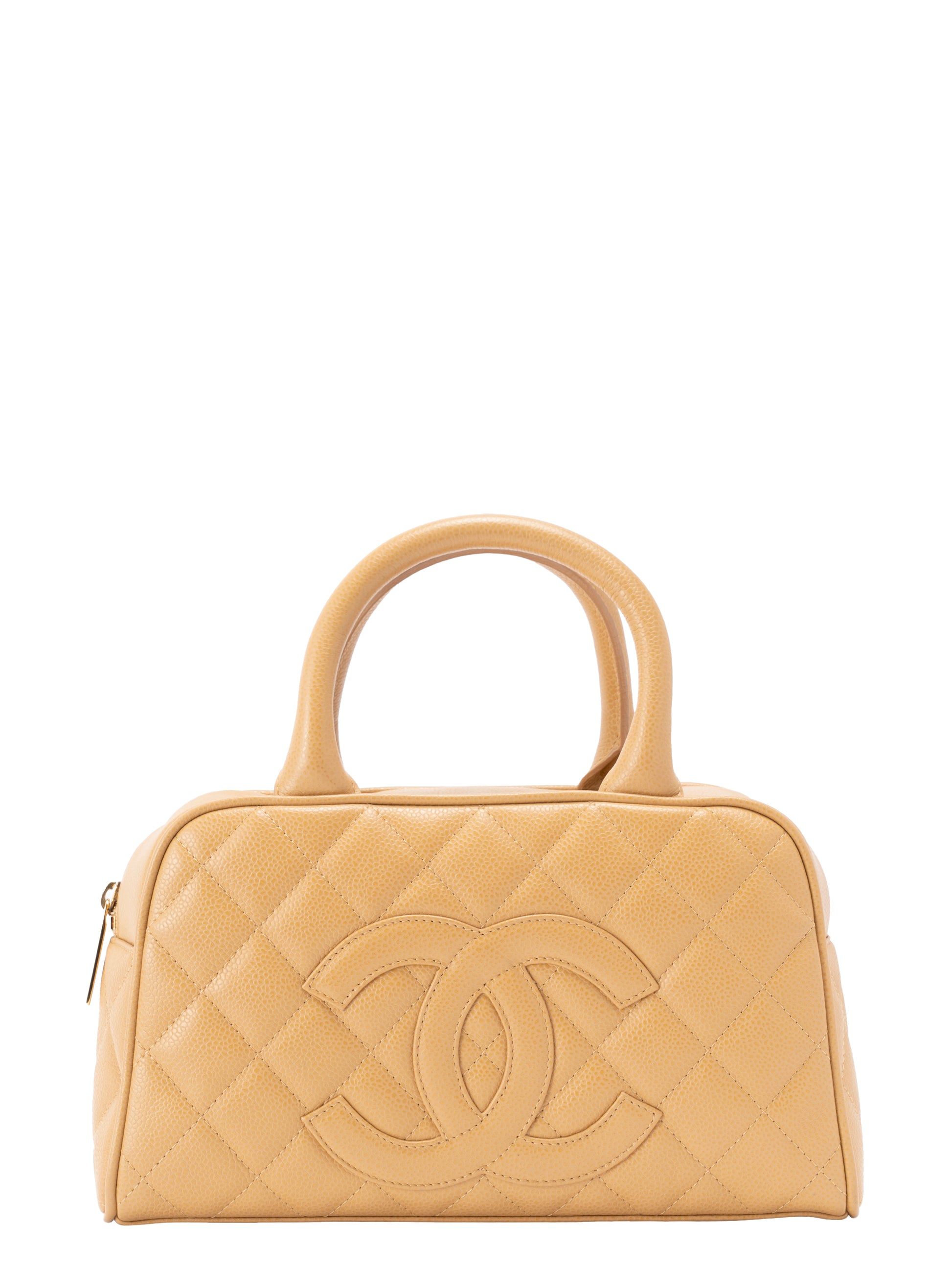 シャネル マトラッセ ハンドバッグ キャビアスキン ベージュ ゴールド金具