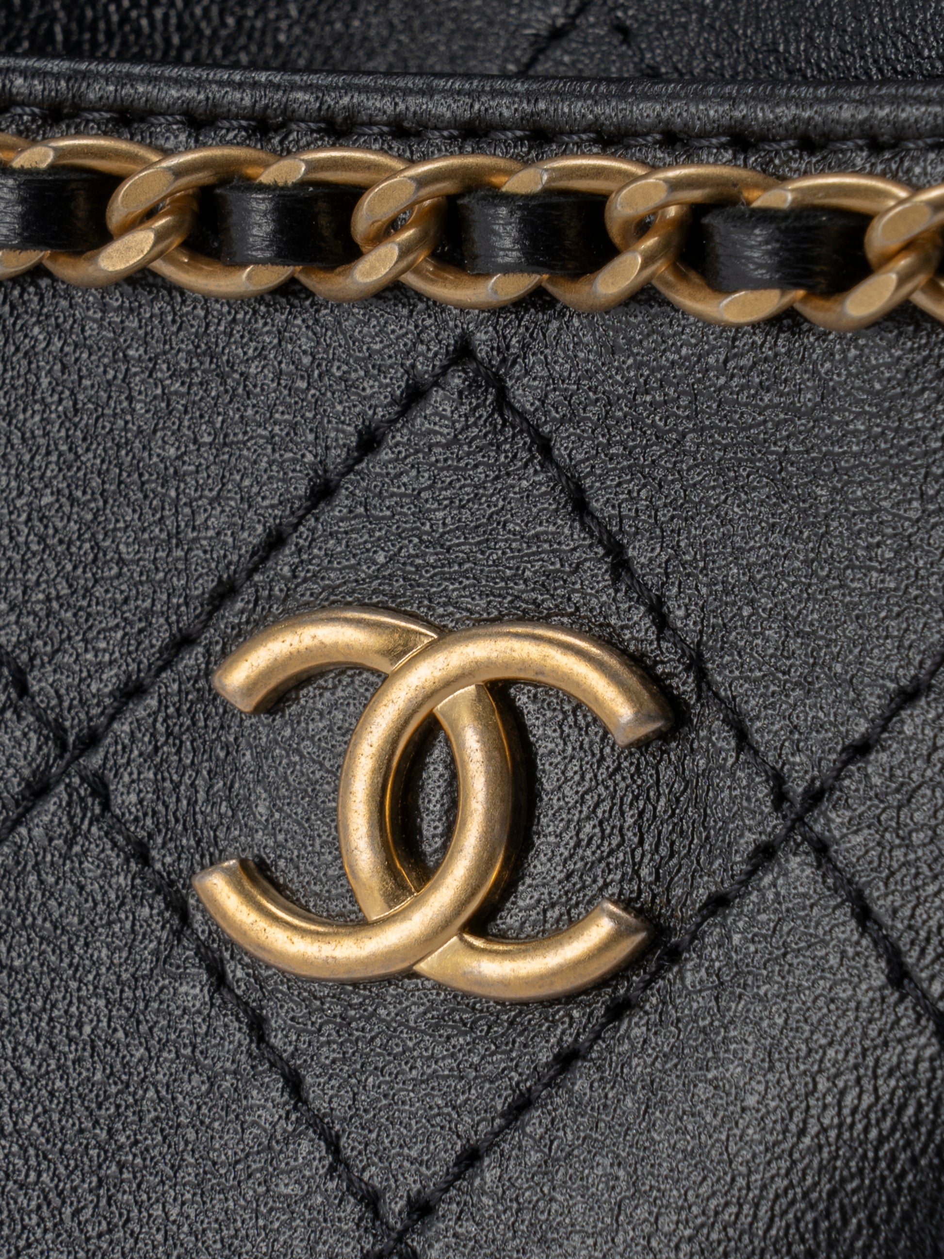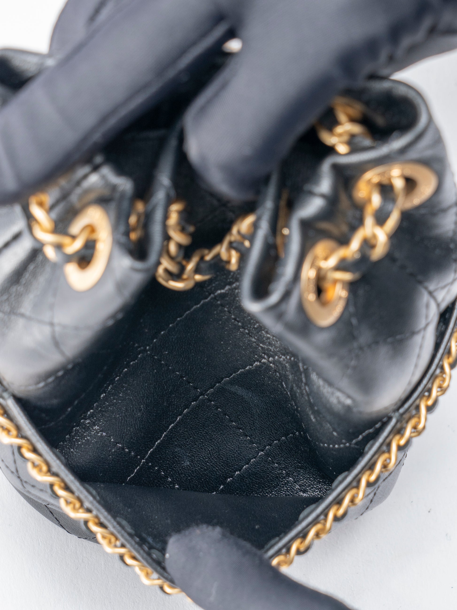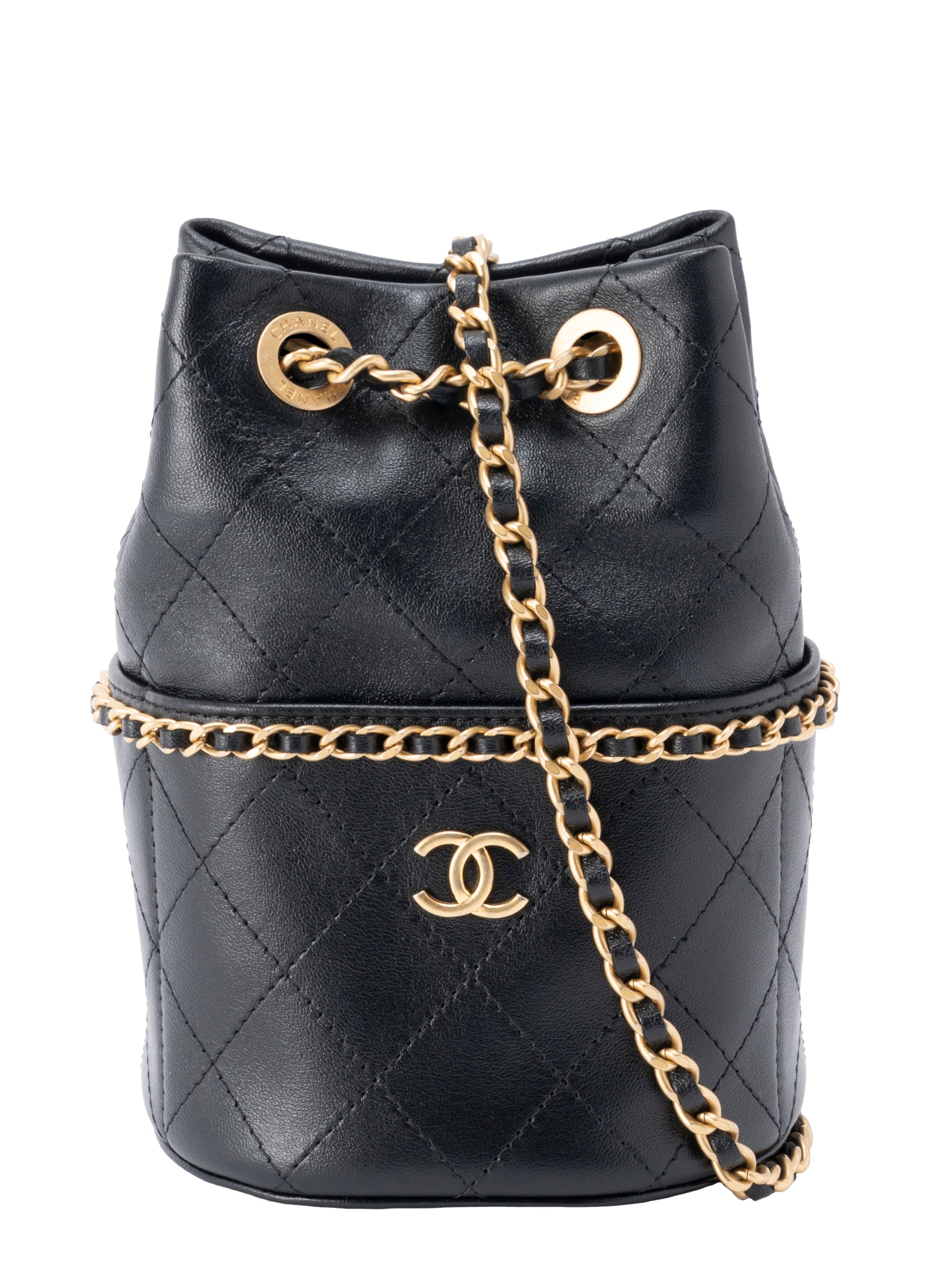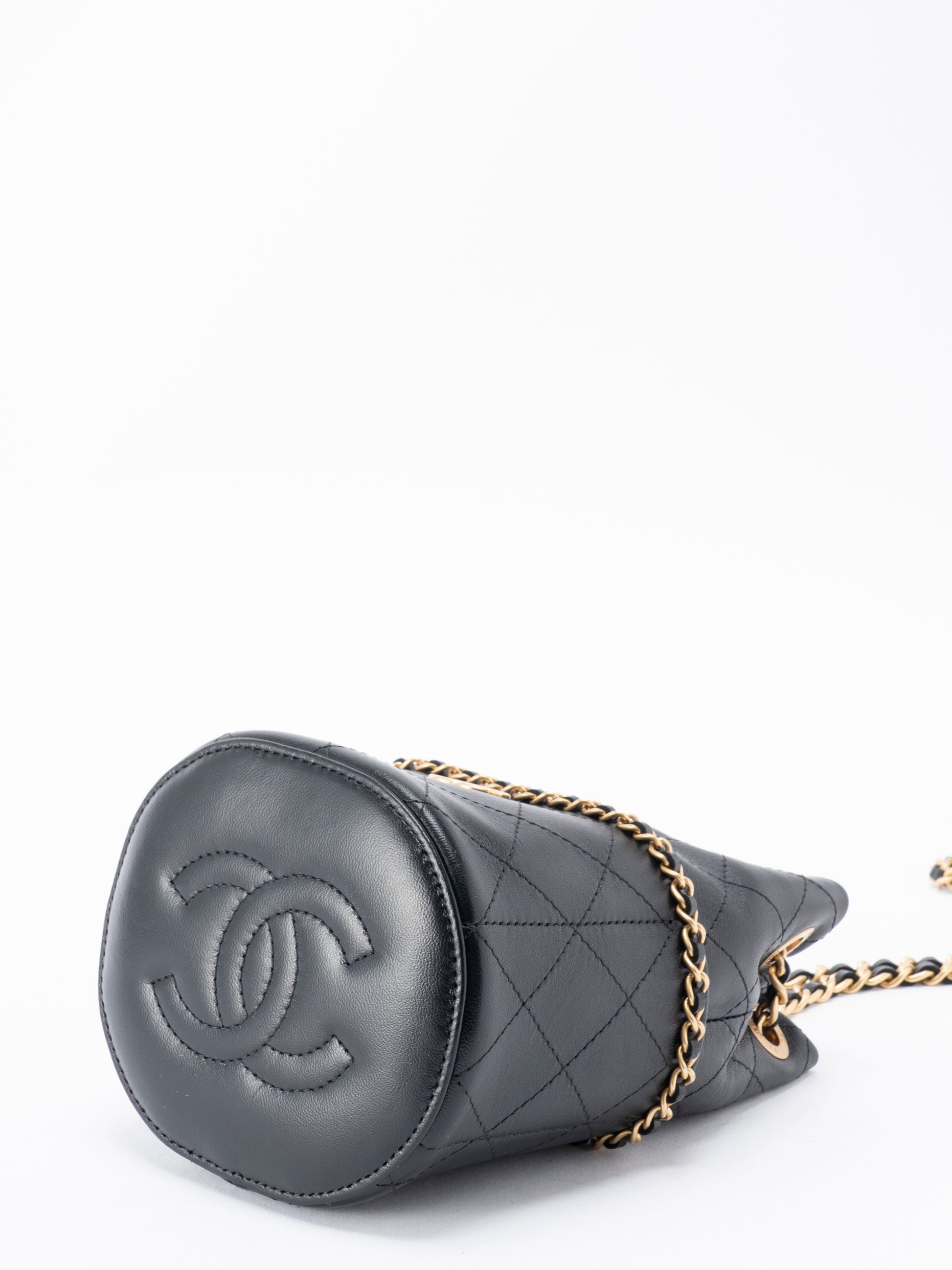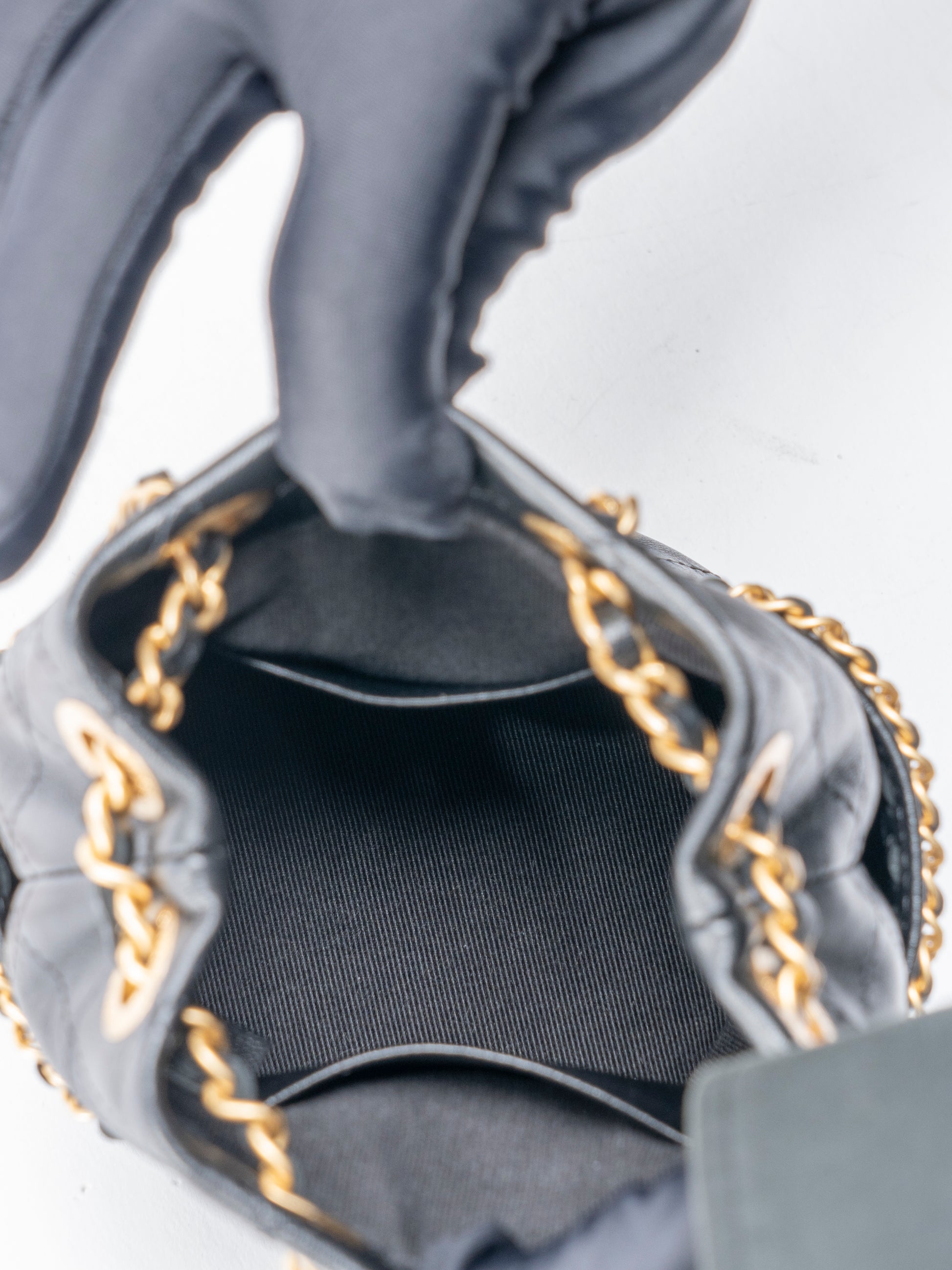 シャネル マトラッセ ランダムシリアル ミニ チェーンバゲットバッグ ラムスキン ブラック ゴールド金具
