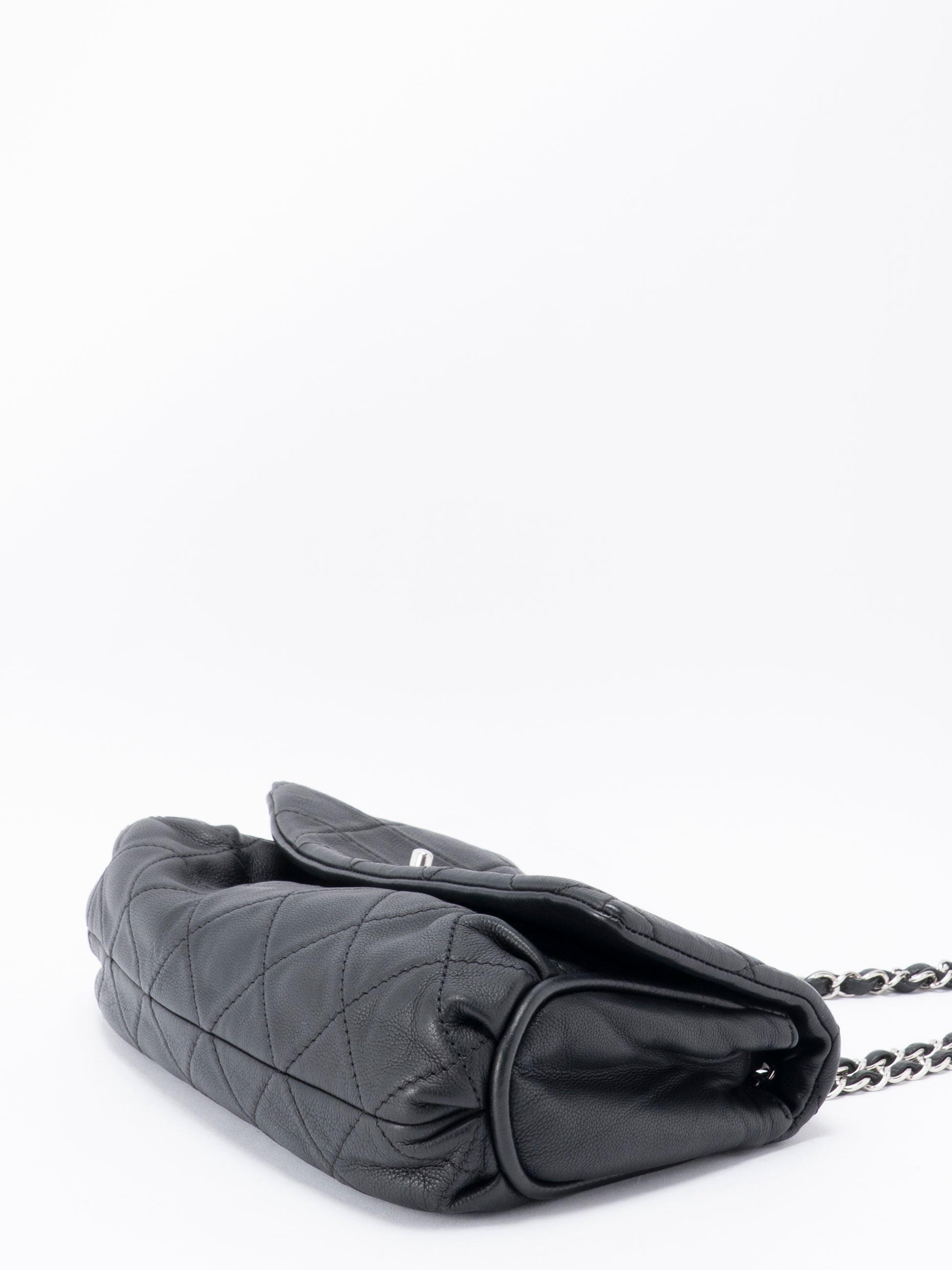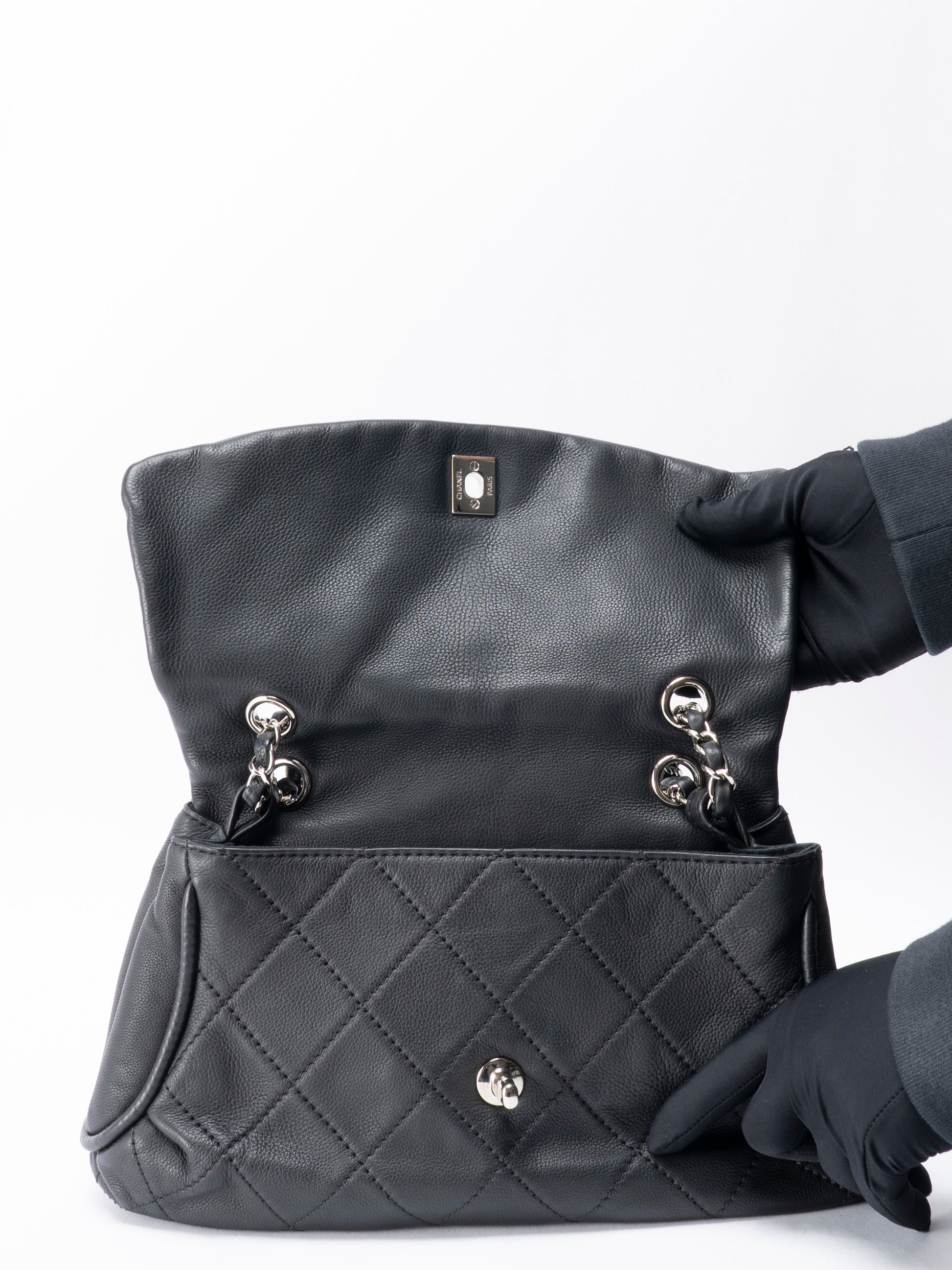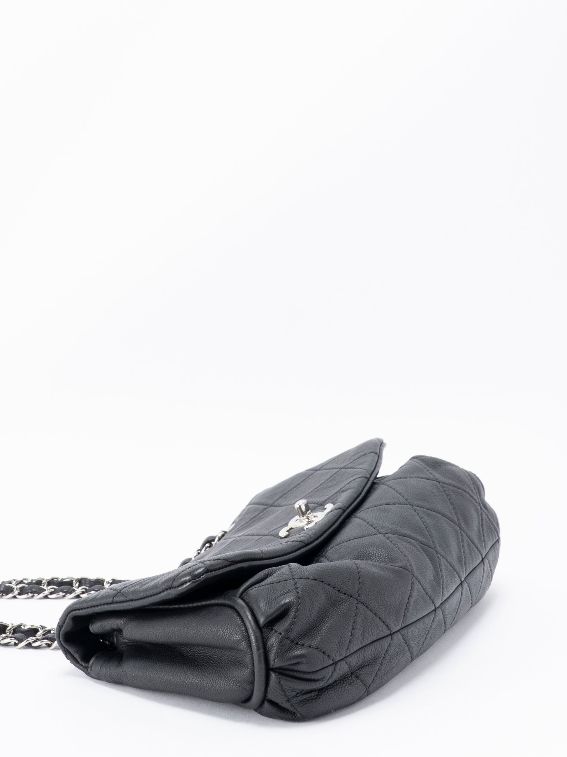 シャネル マトラッセ Wチェーンショルダーバッグ キャビアスキン ブラック シルバー金具