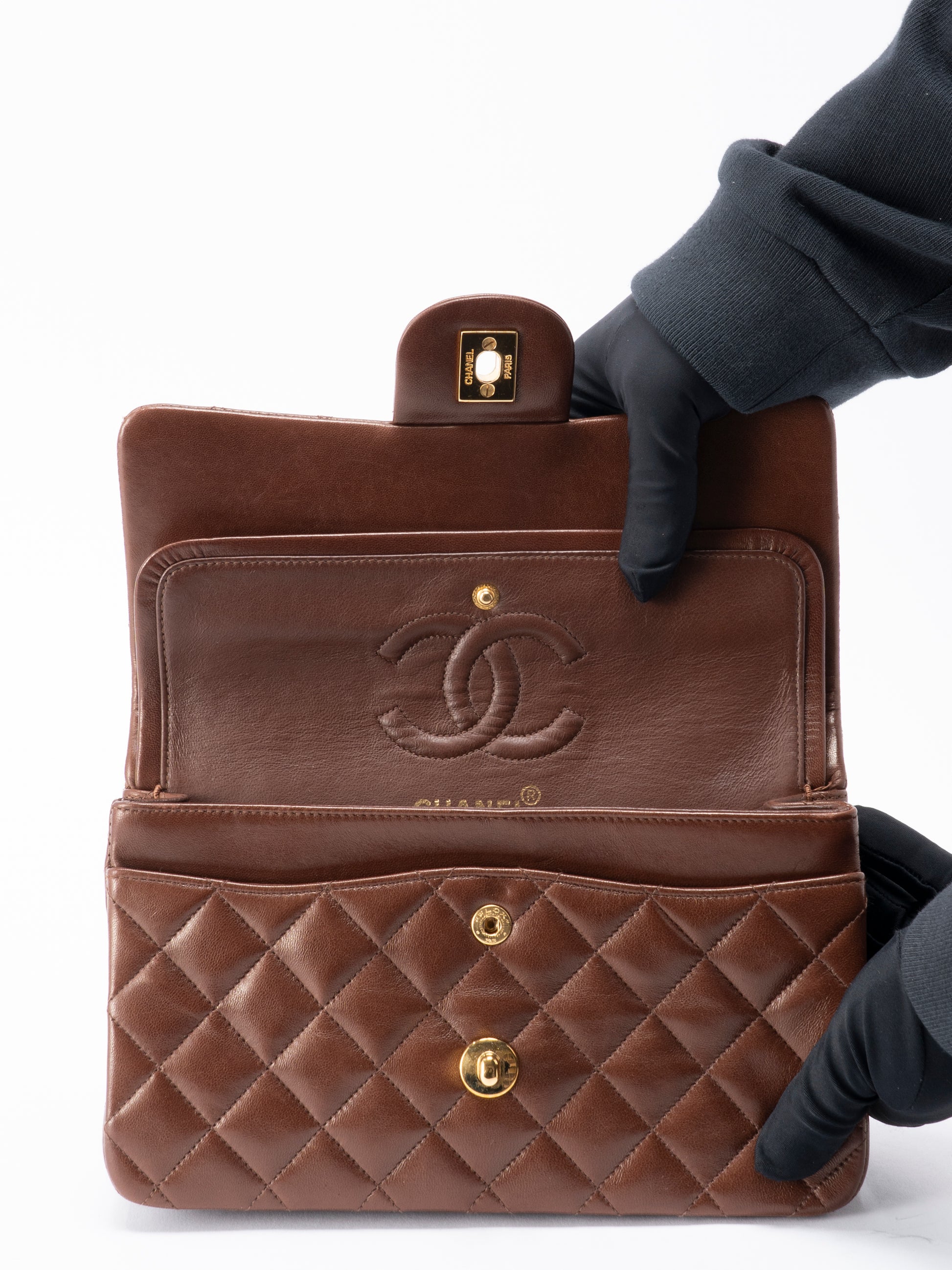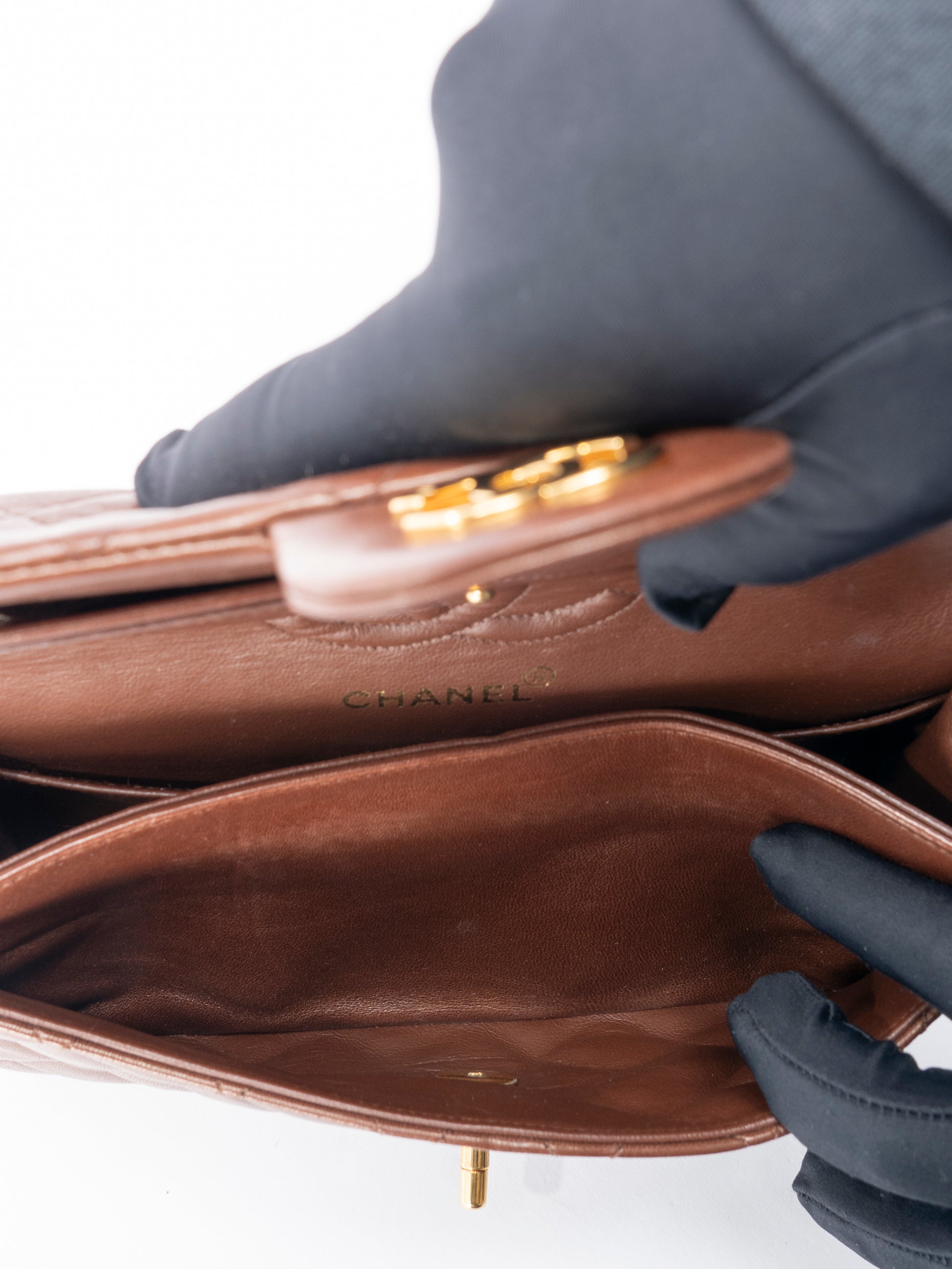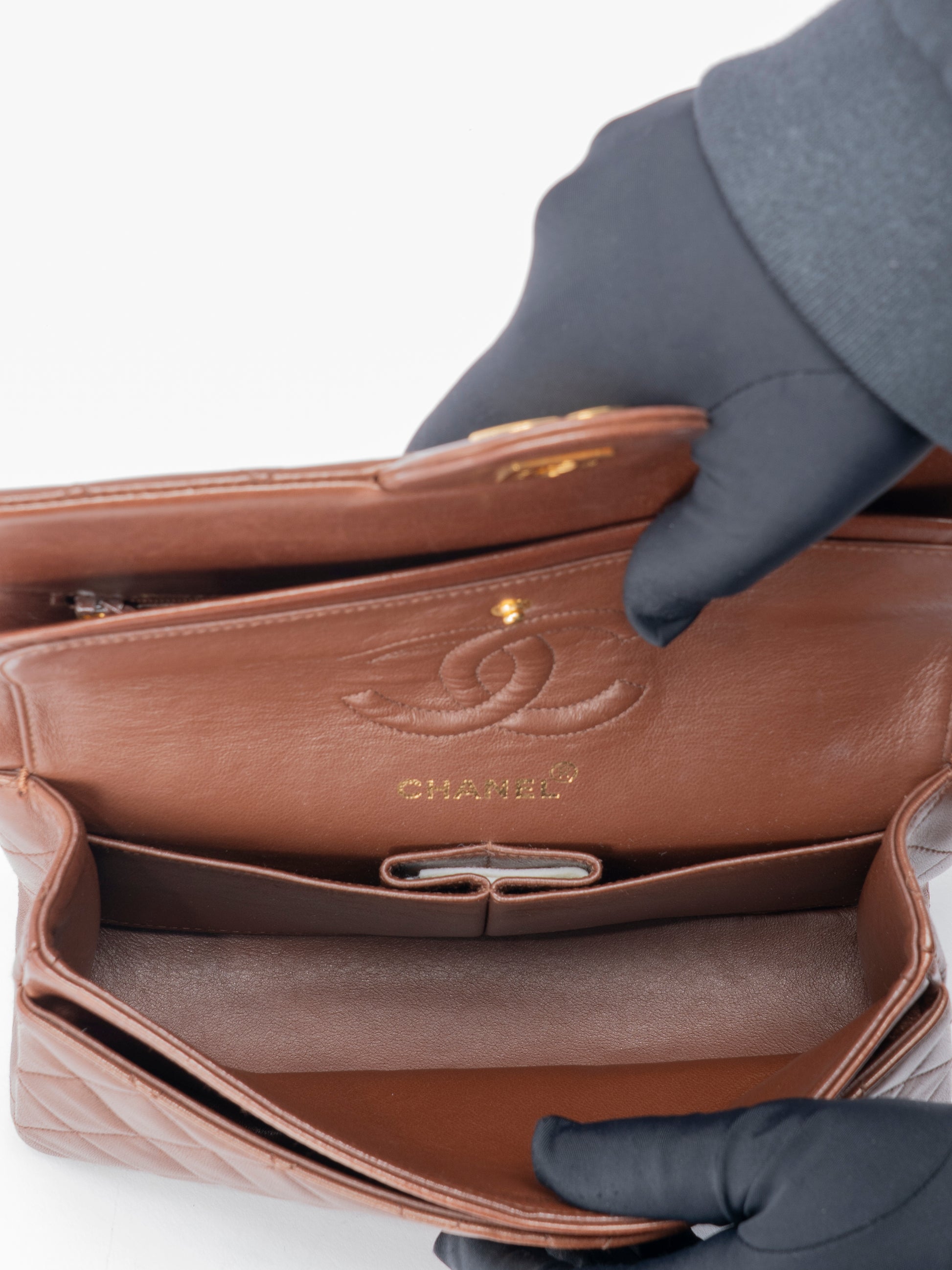 シャネル Wフラップ マトラッセ23 ショルダーチェーンバッグ ラムスキン ブラウン ゴールド金具