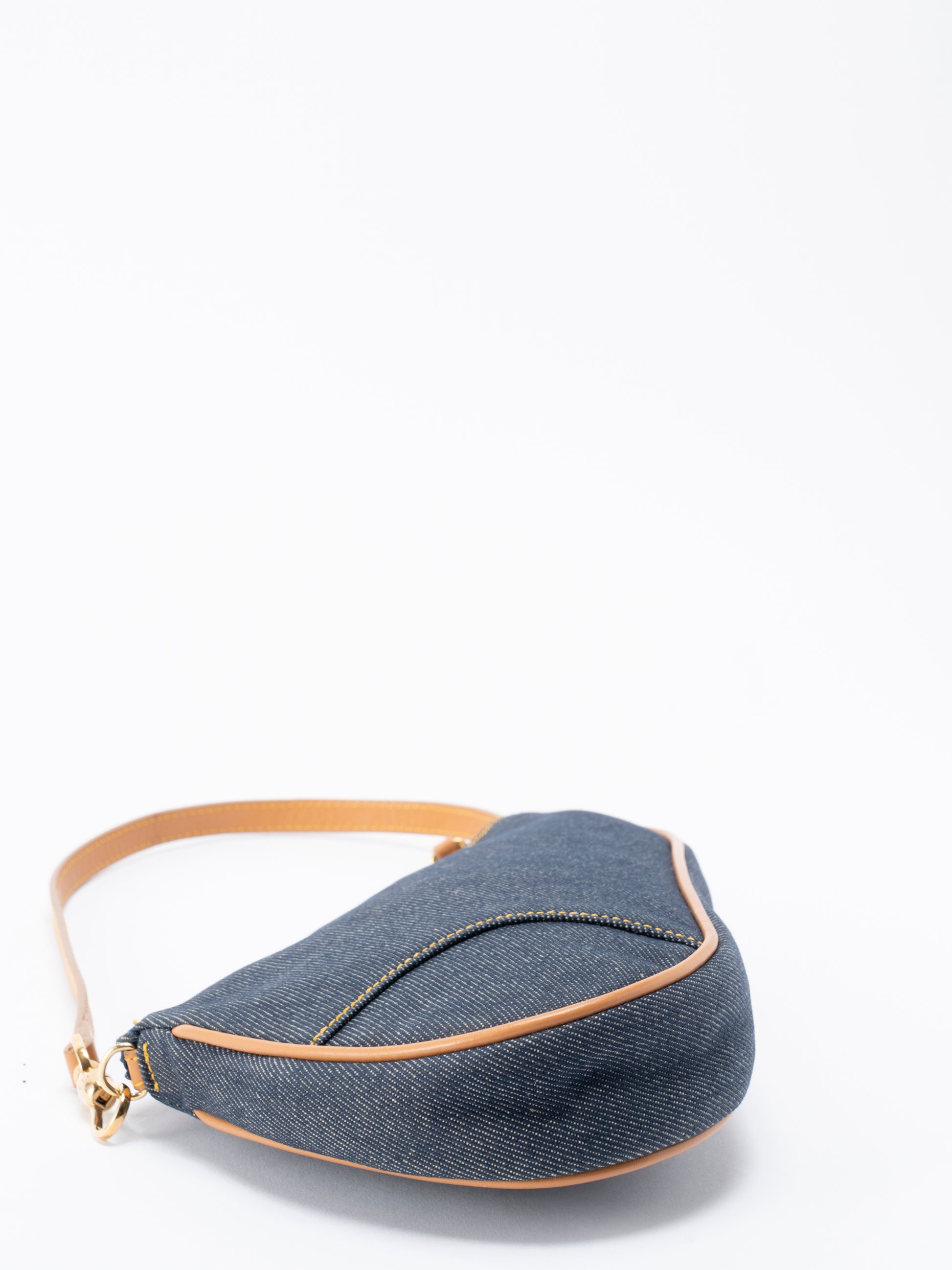 ディオール トロッター サドルバッグ ショルダーバッグ デニム ネイビー ゴールド金具