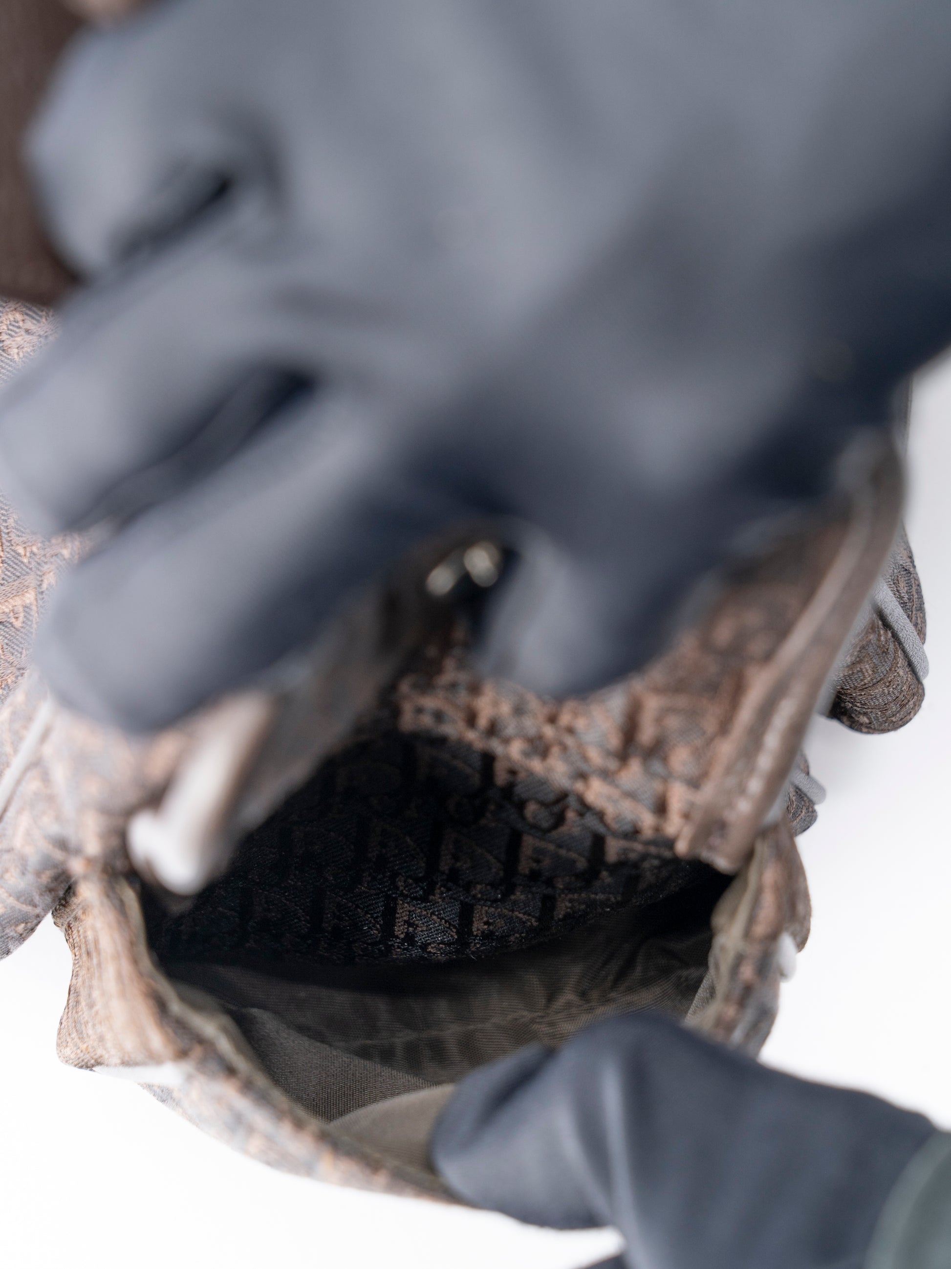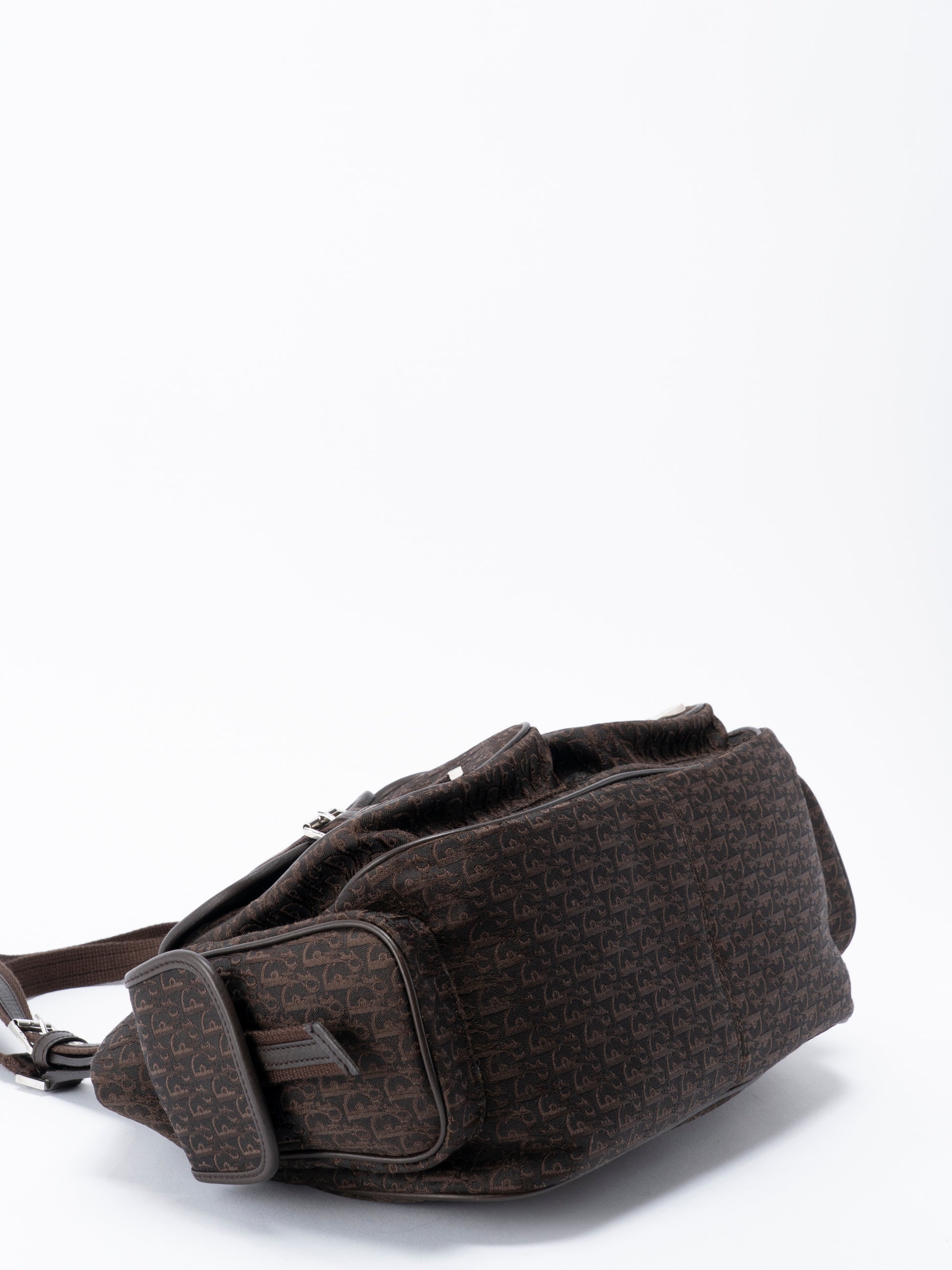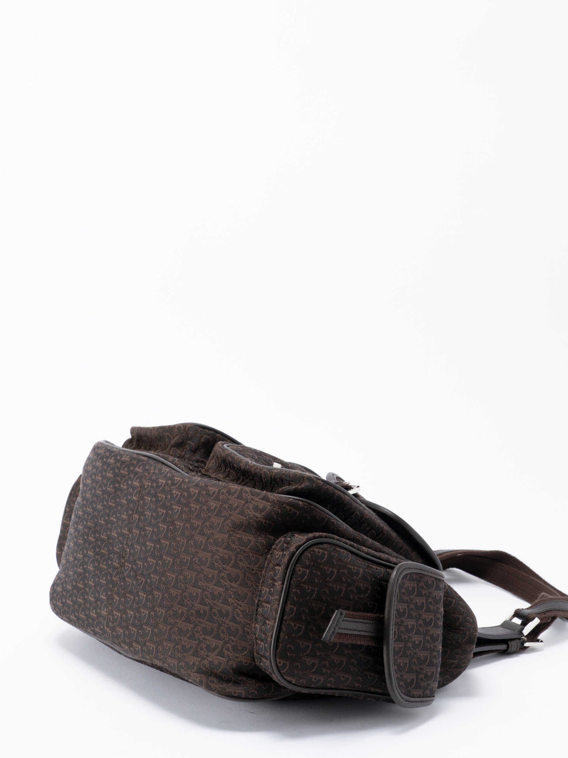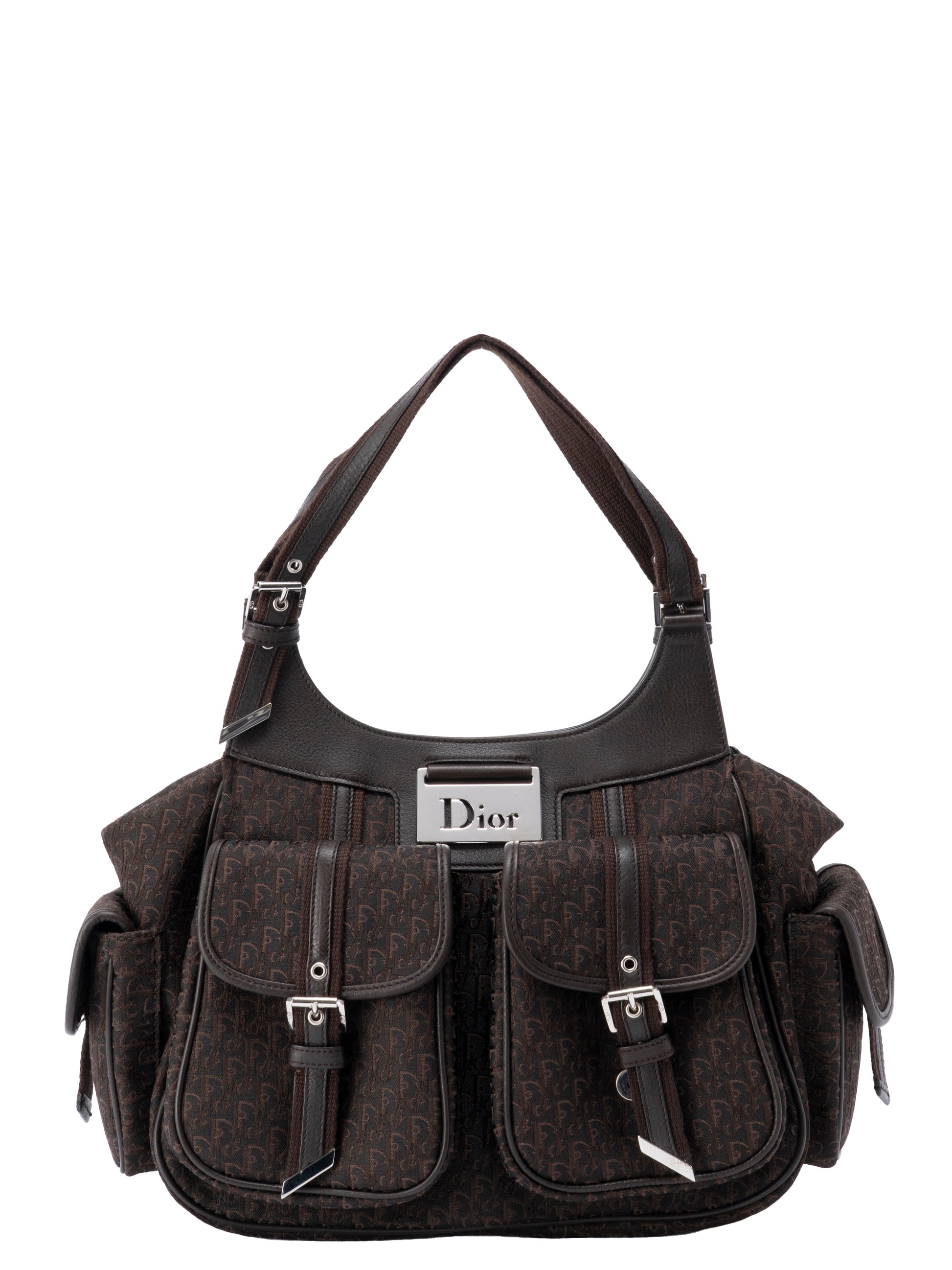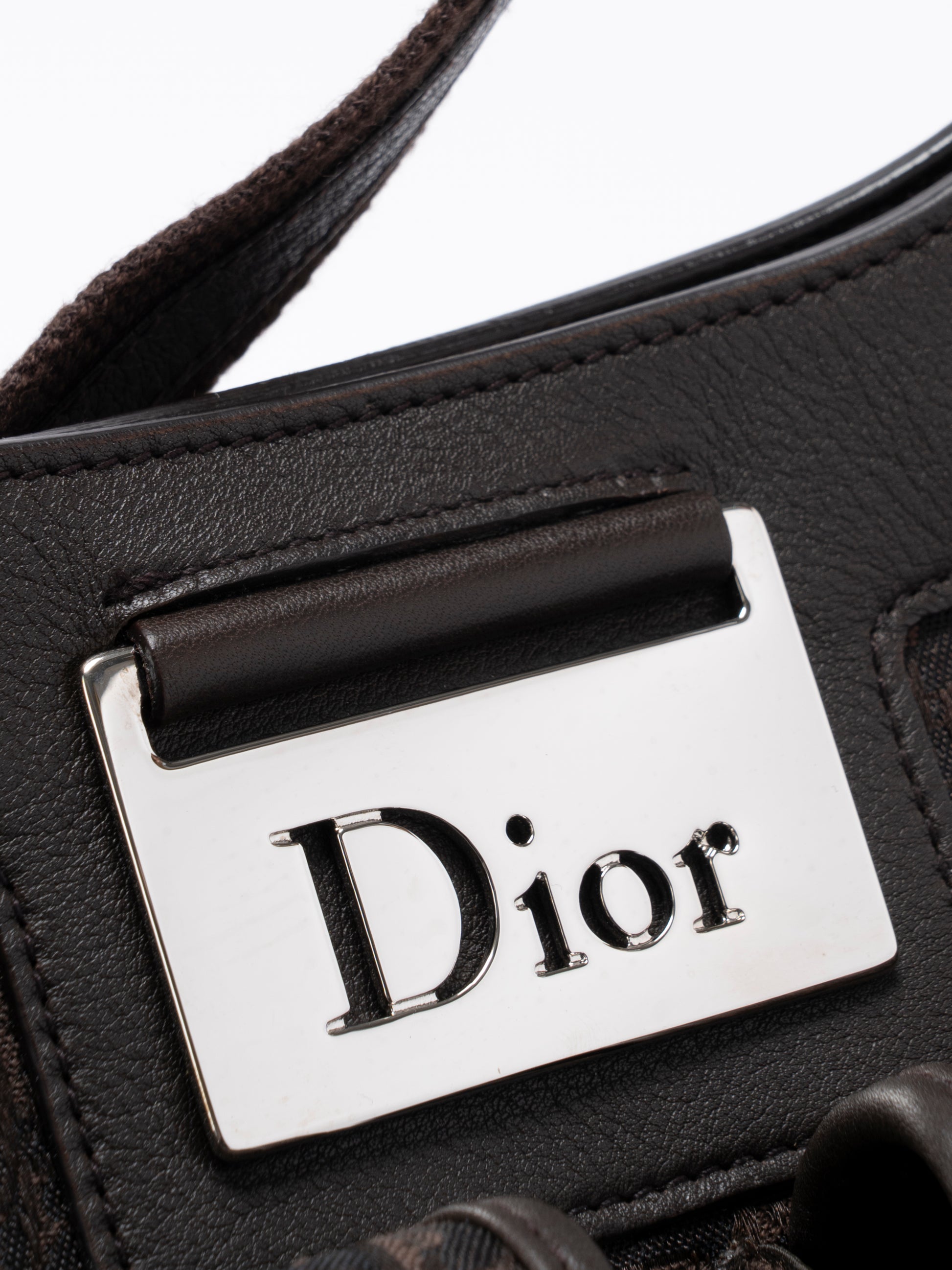デイオール ストリートシック マルチポケット ハンドバッグ レザー×キャンバス ダークブラウン シルバー金具