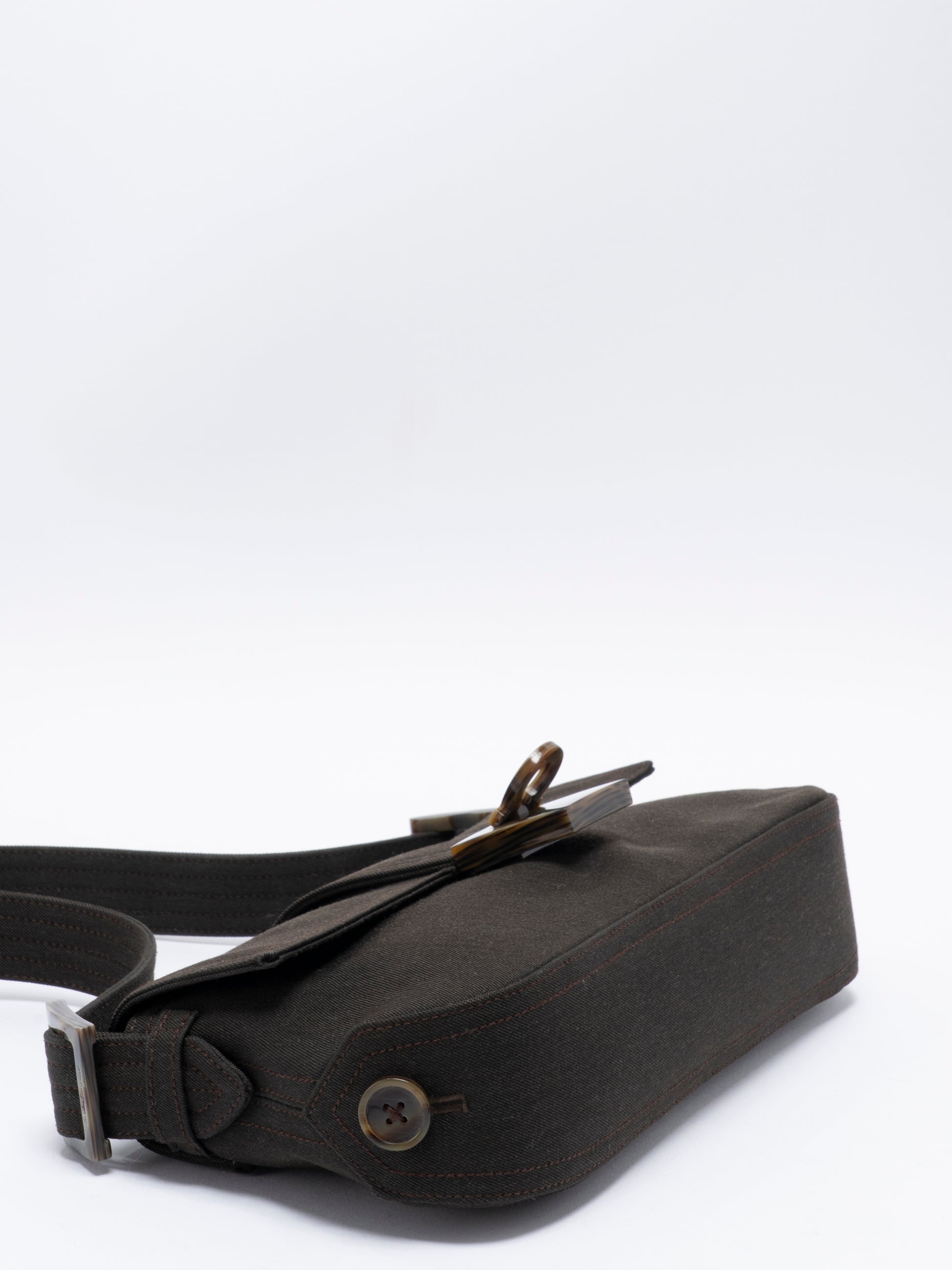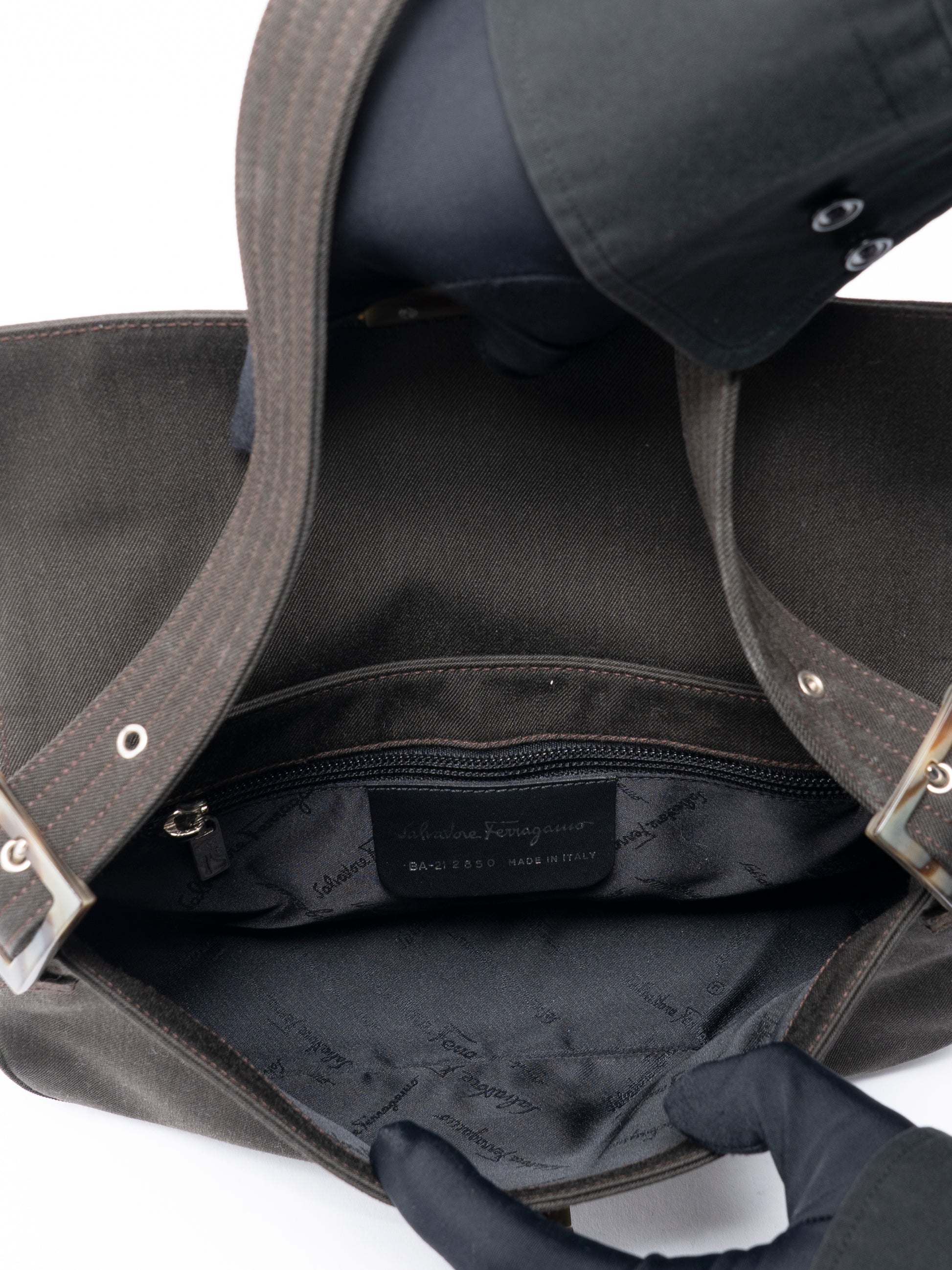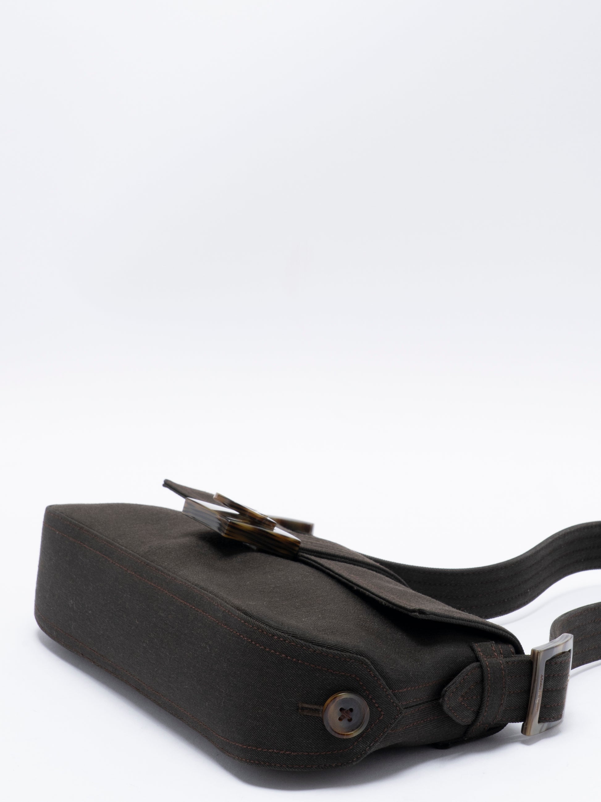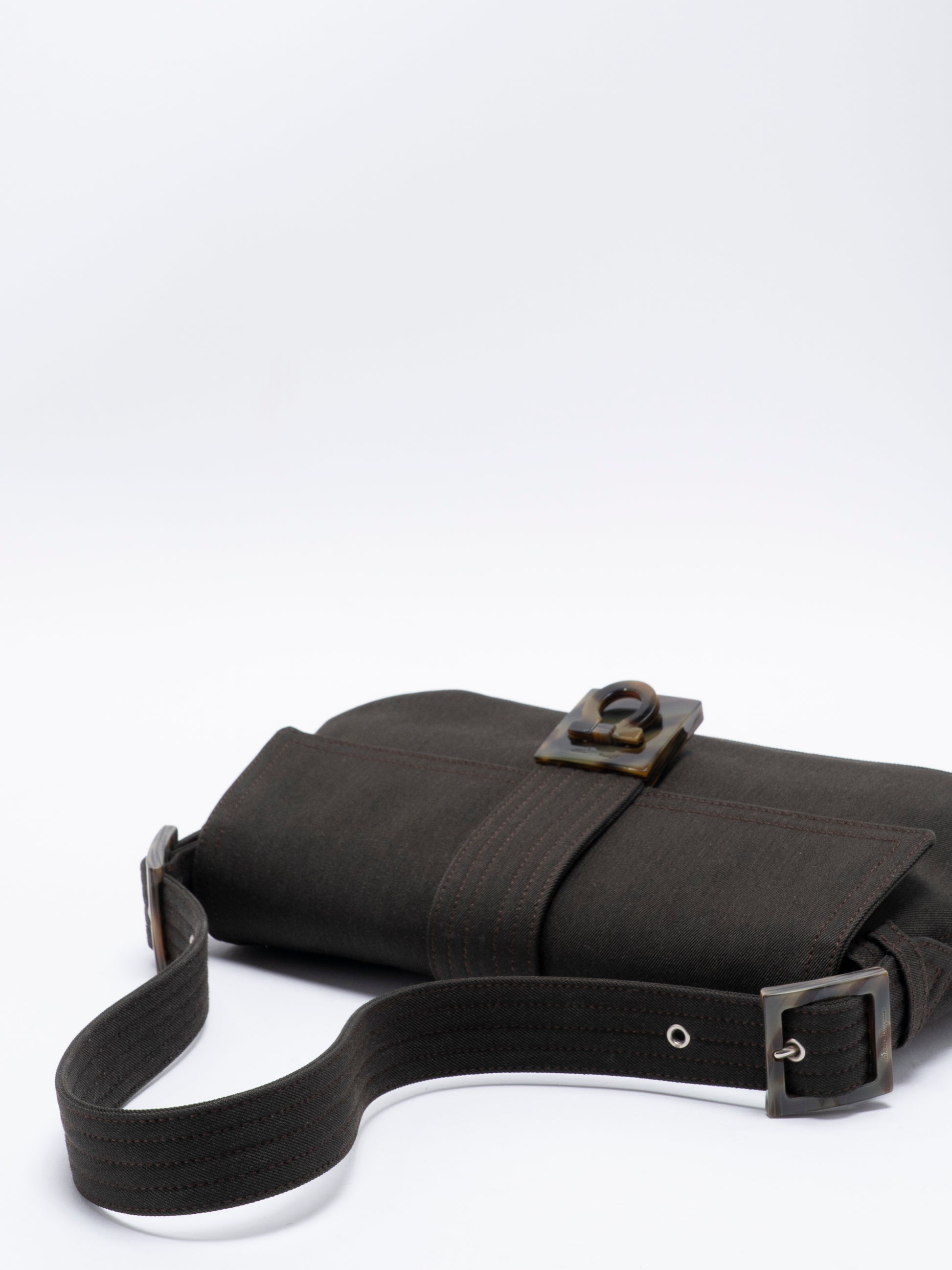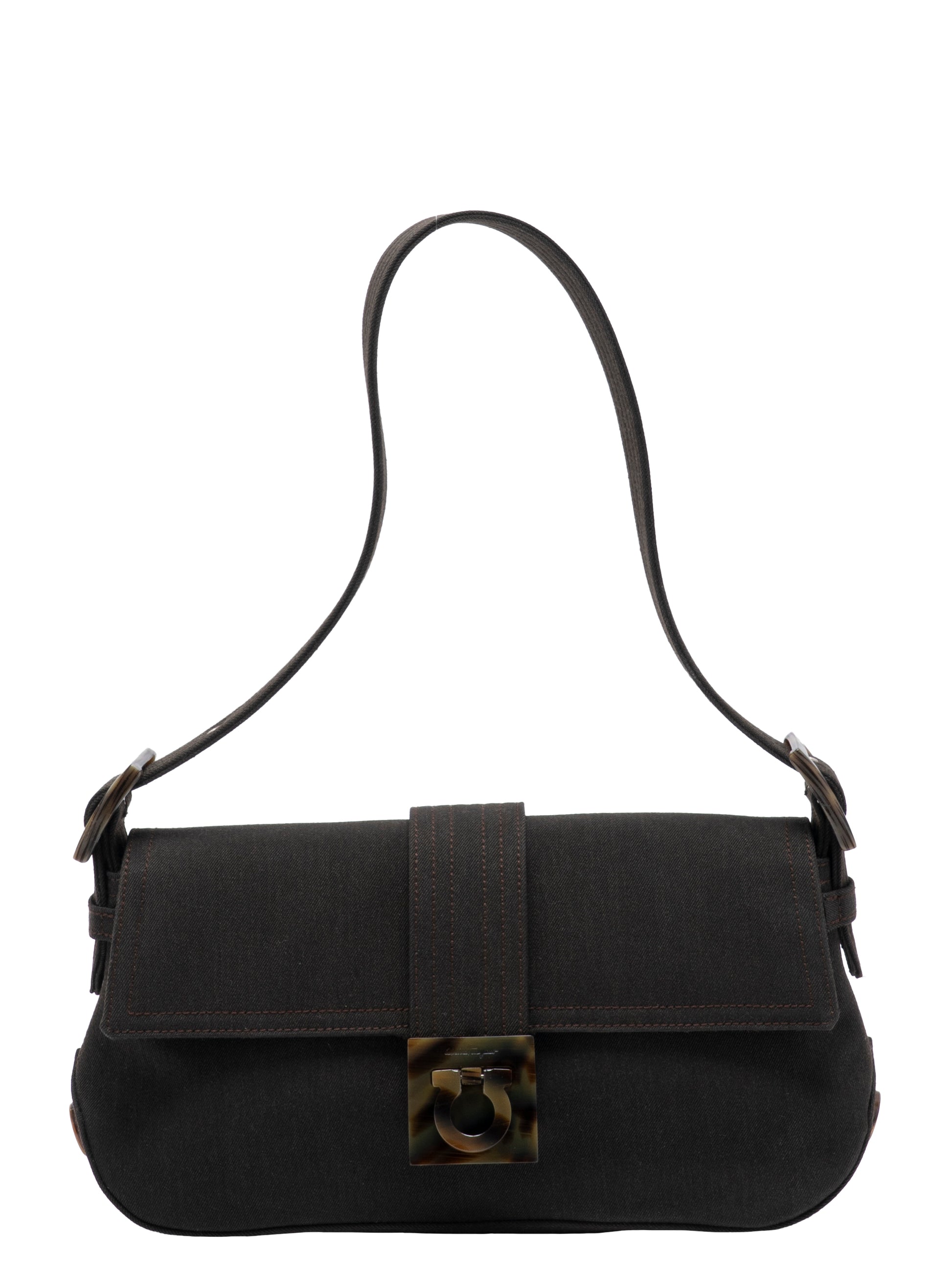 フェラガモ べっ甲柄 ガンチーニ ワンショルダーバッグ キャンバス ブラウン