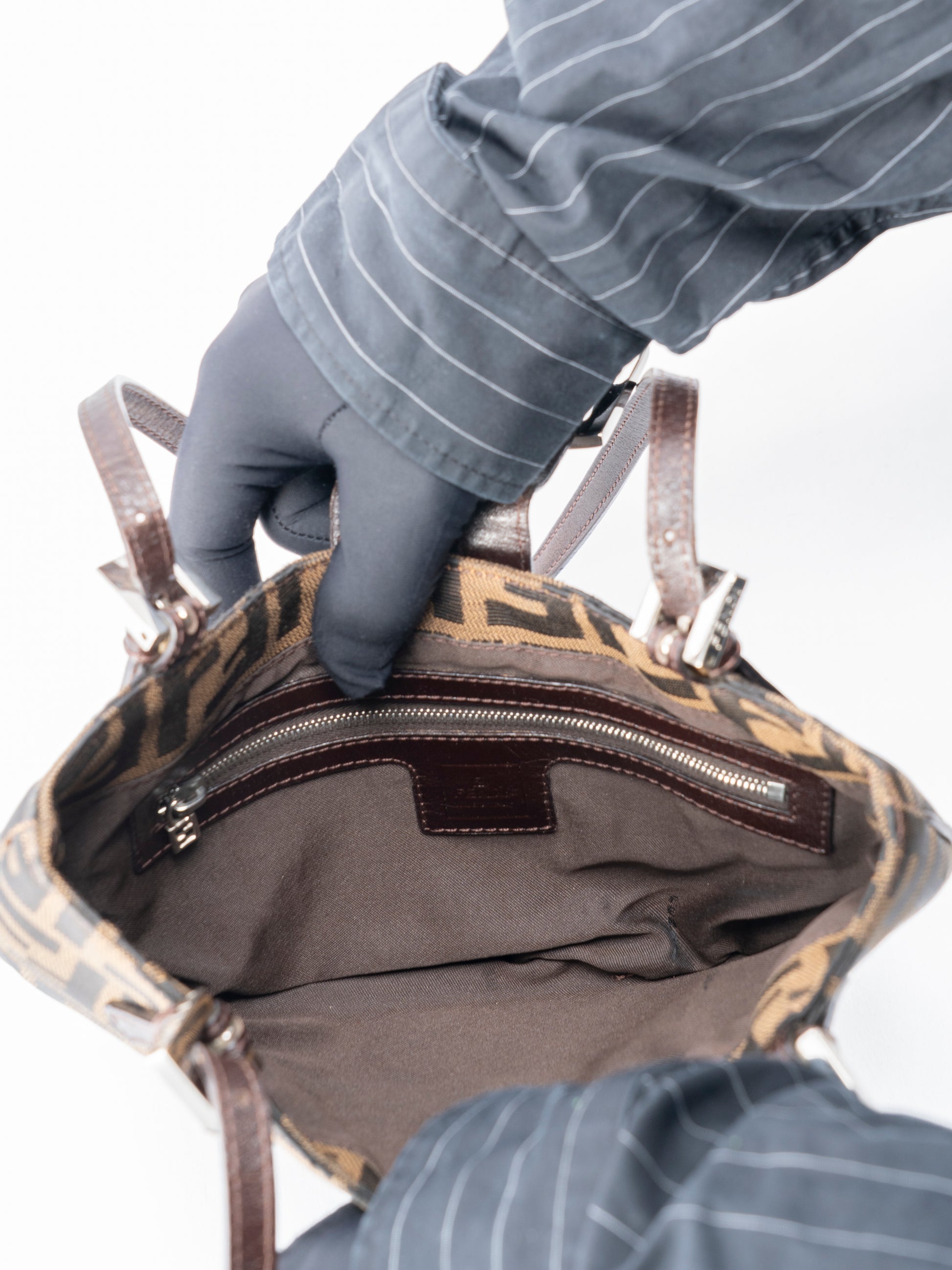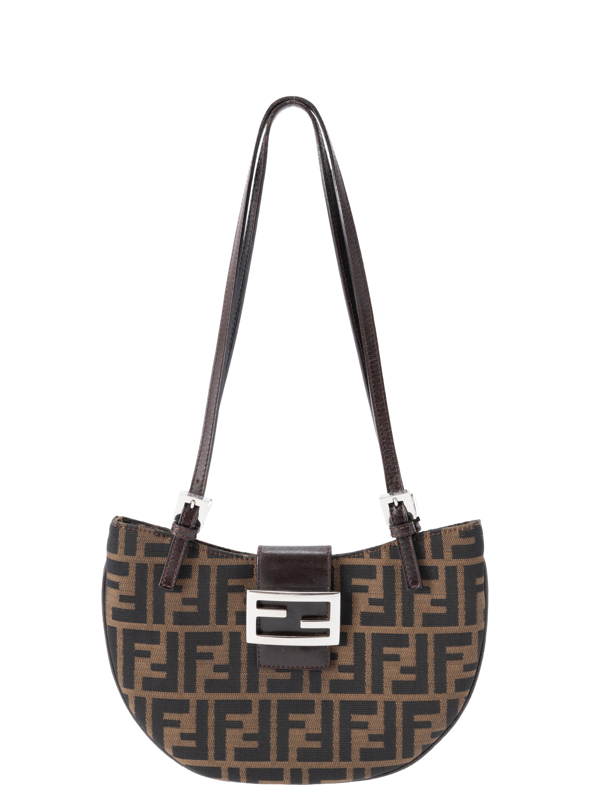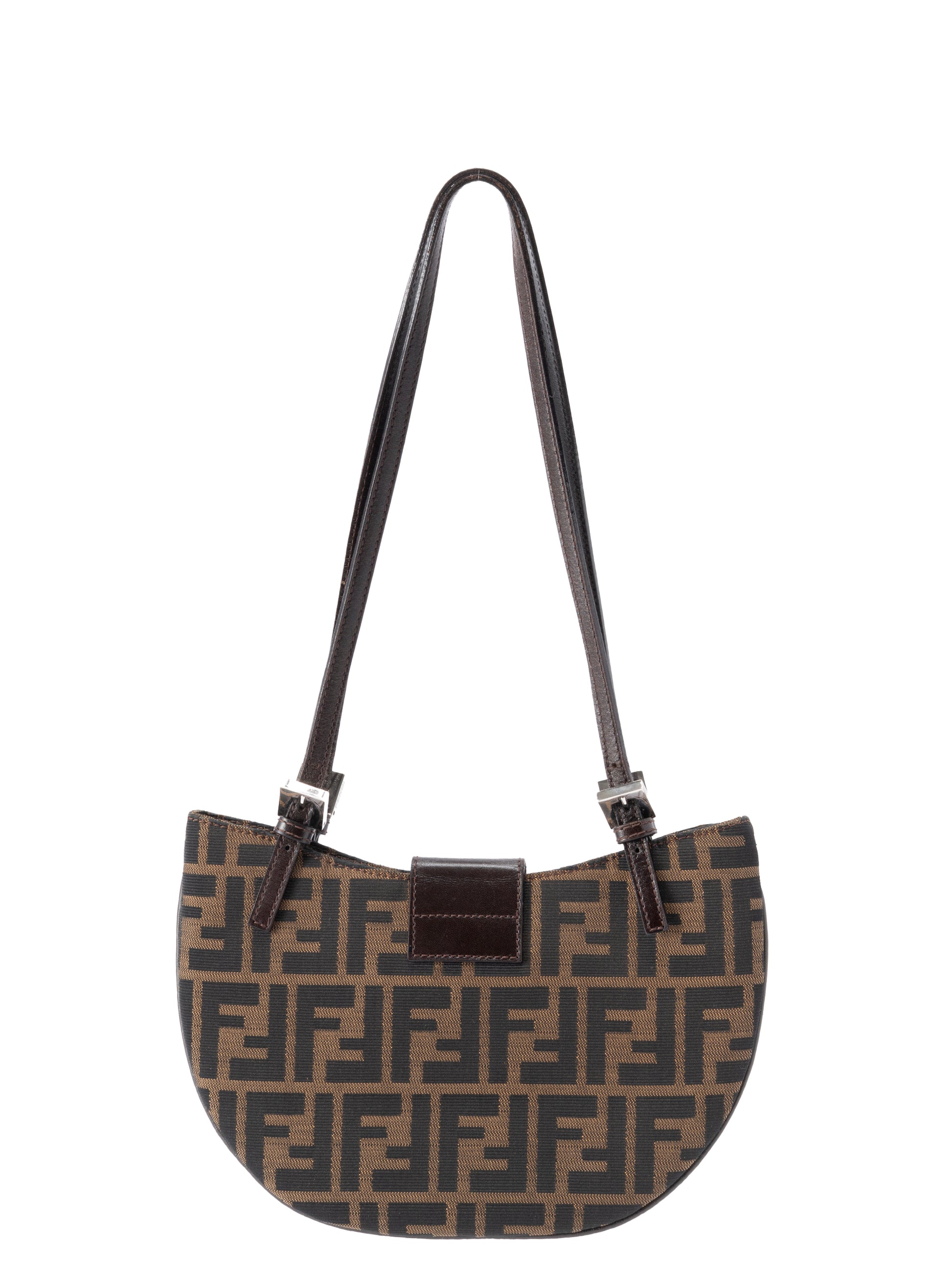 フェンディ ズッカ ショルダーバッグ キャンバス ブラウン シルバー金具