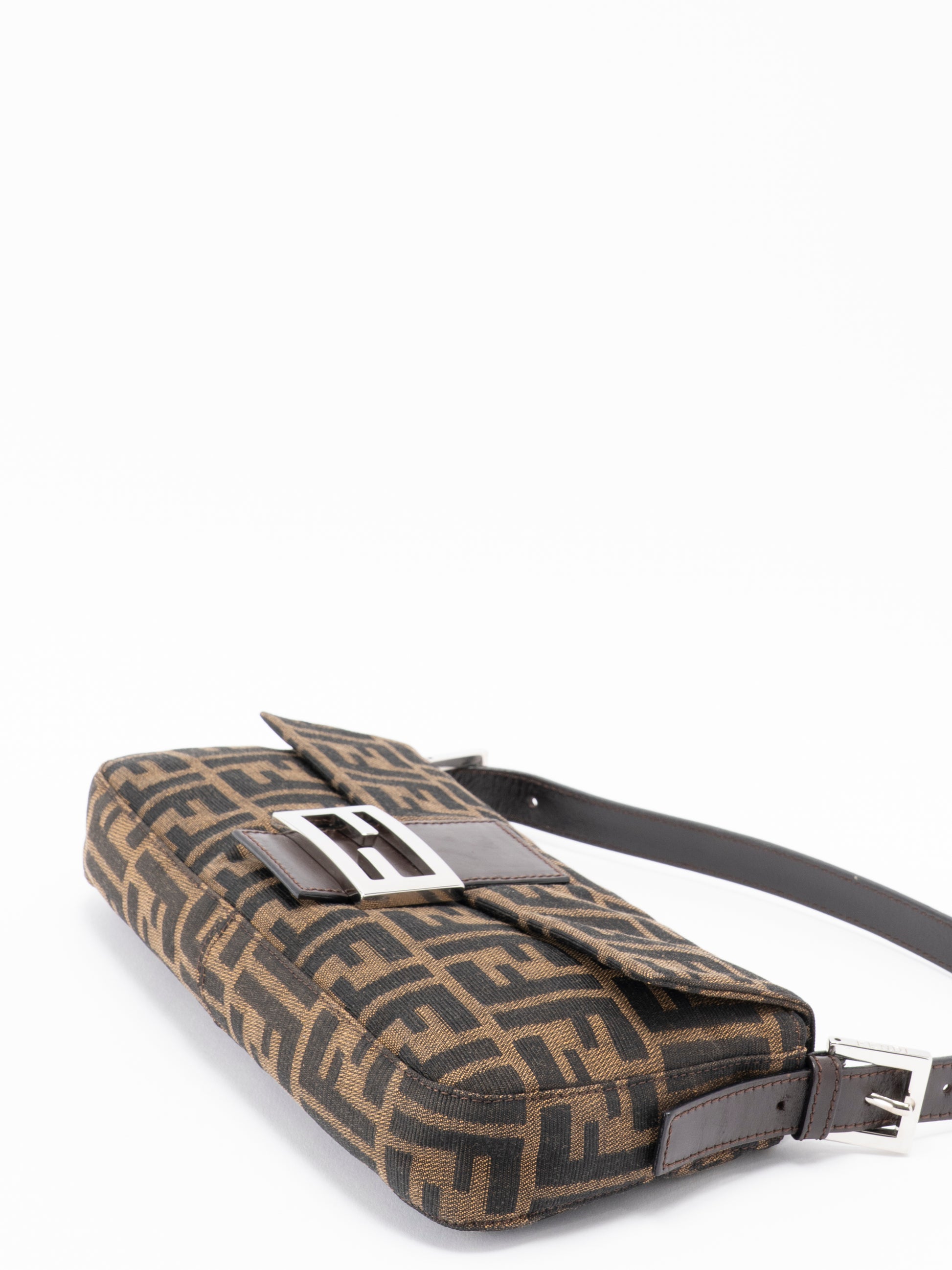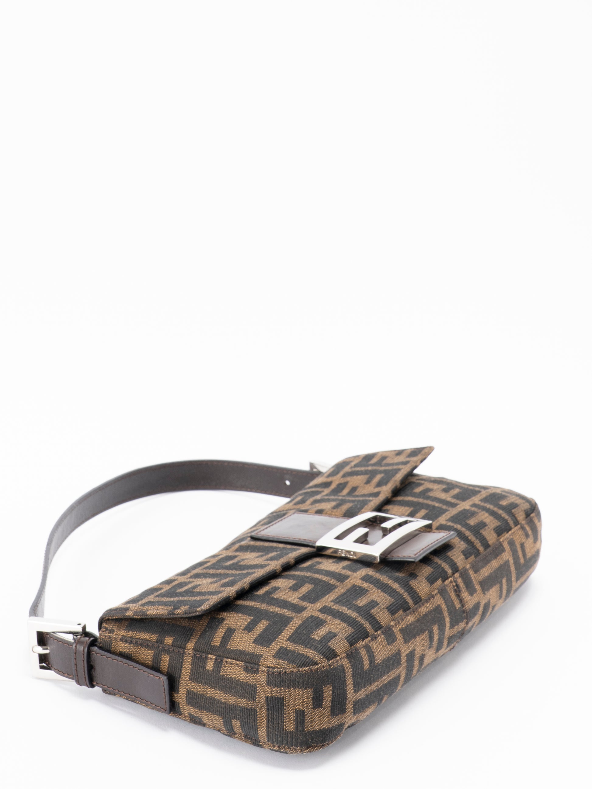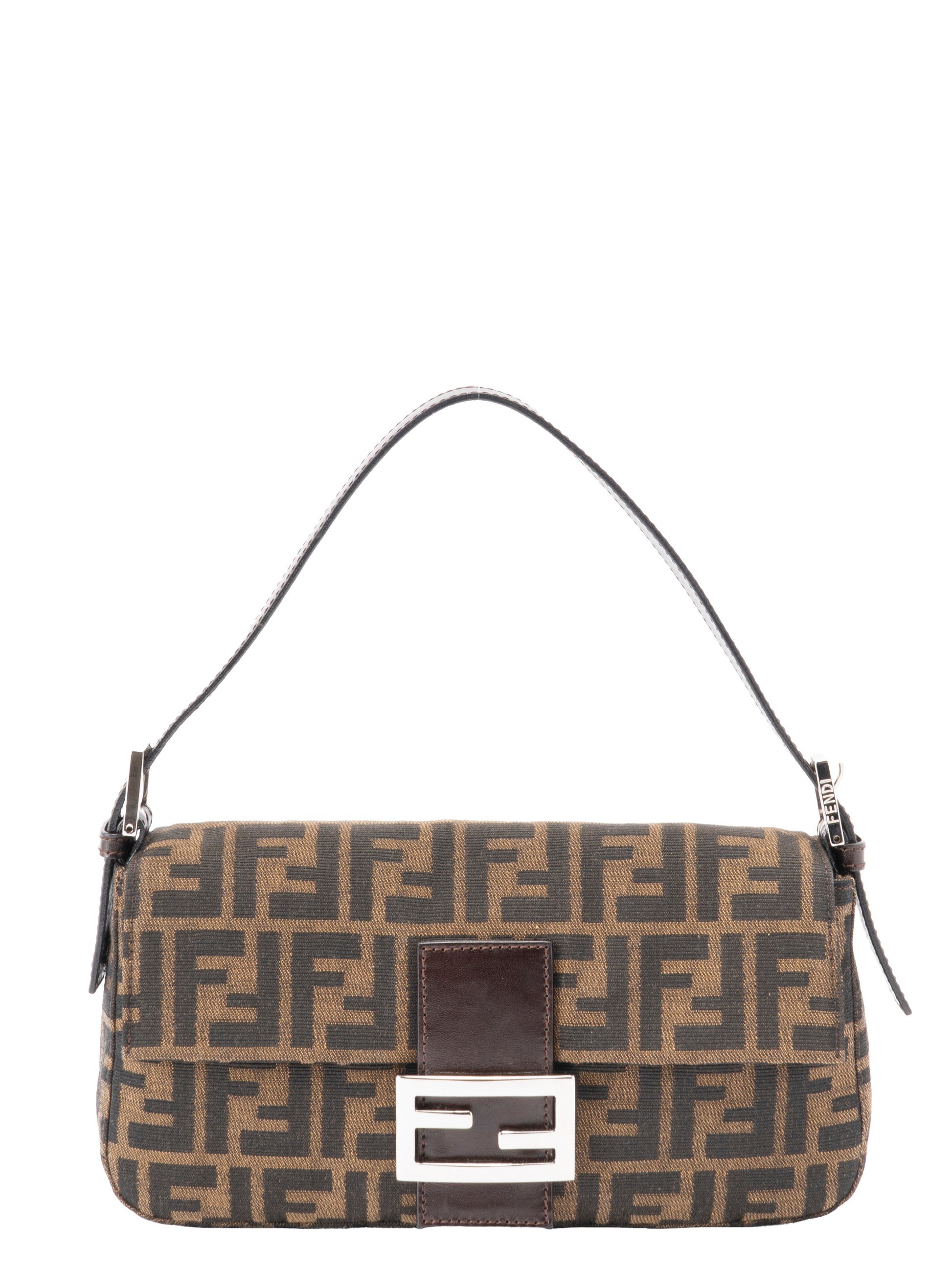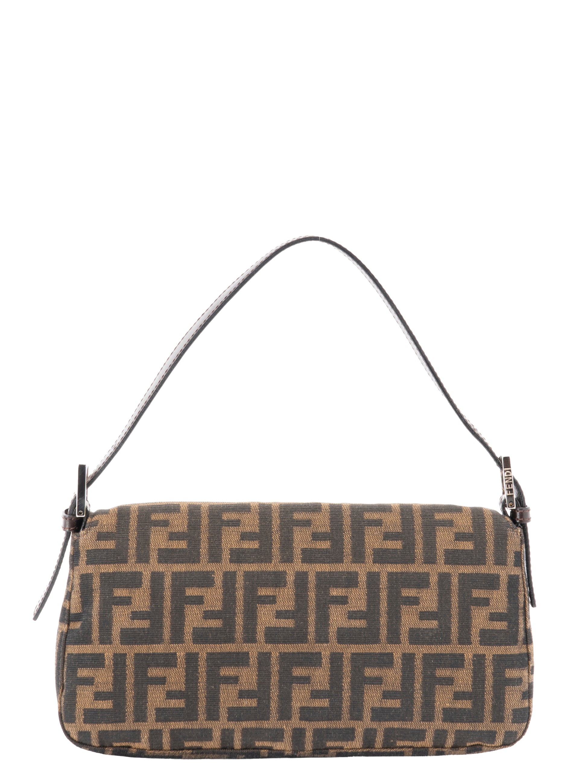 フェンディ ズッカ マンマバケット ショルダーバッグ キャンバス ブラウン シルバー金具