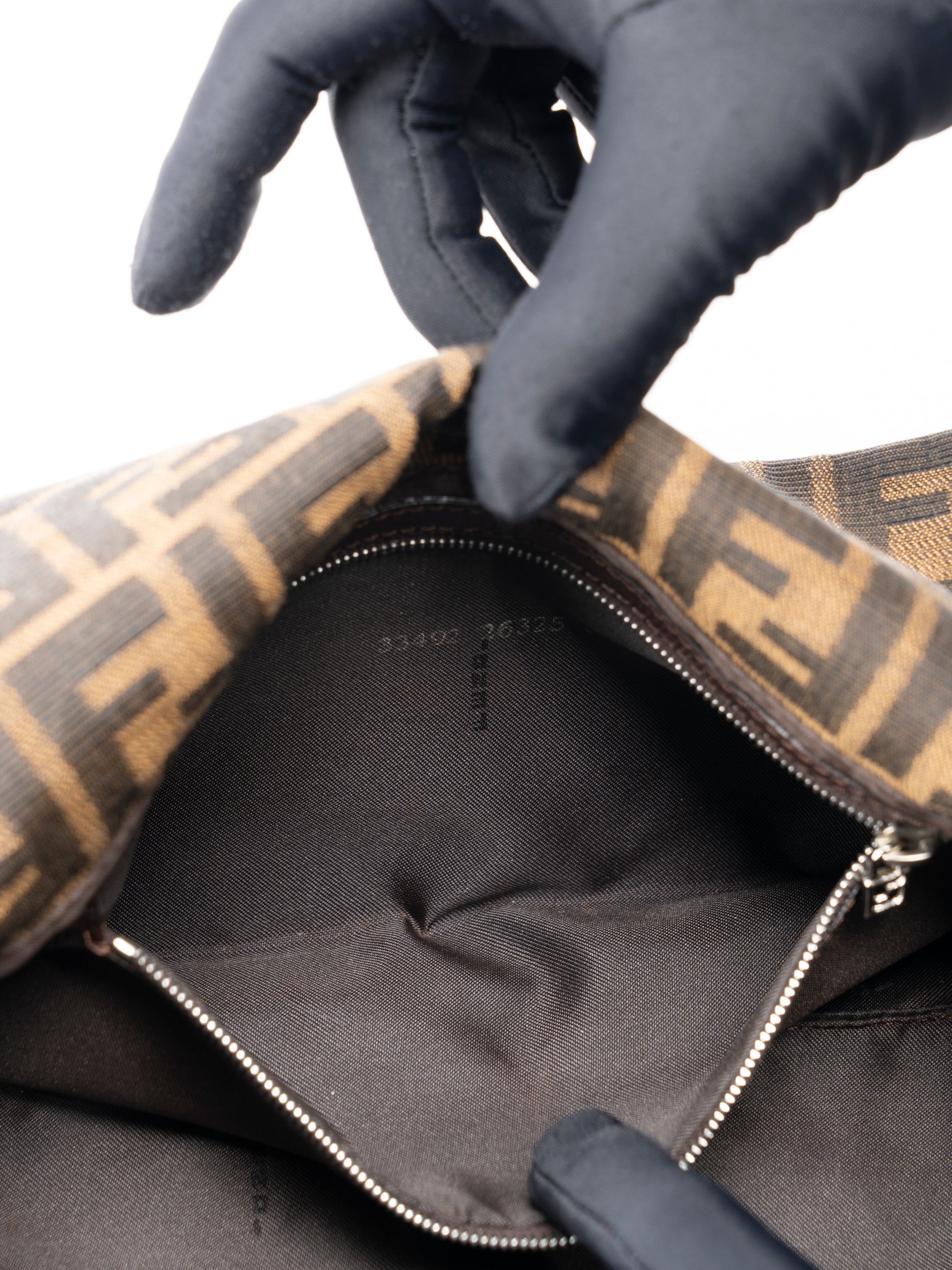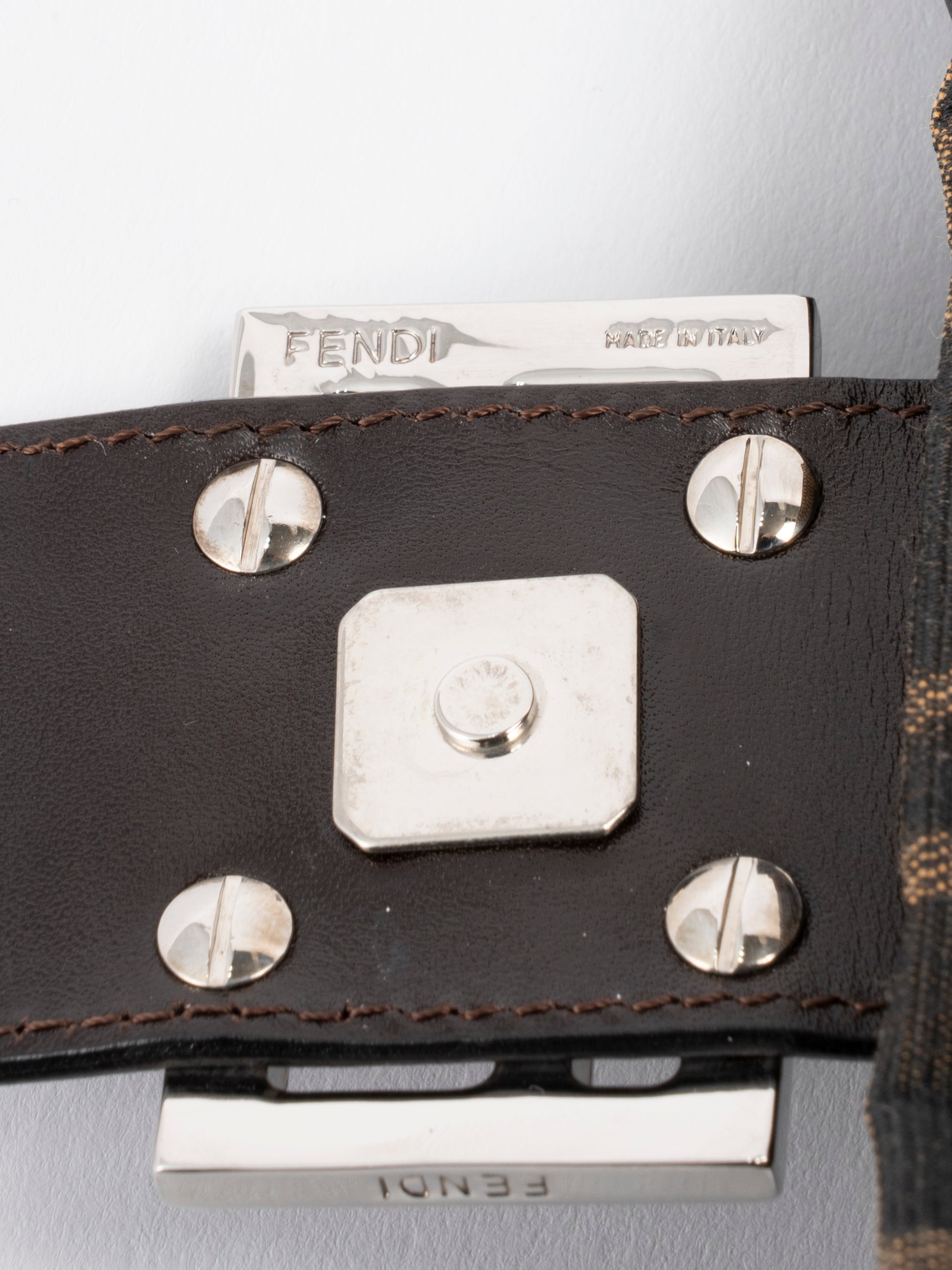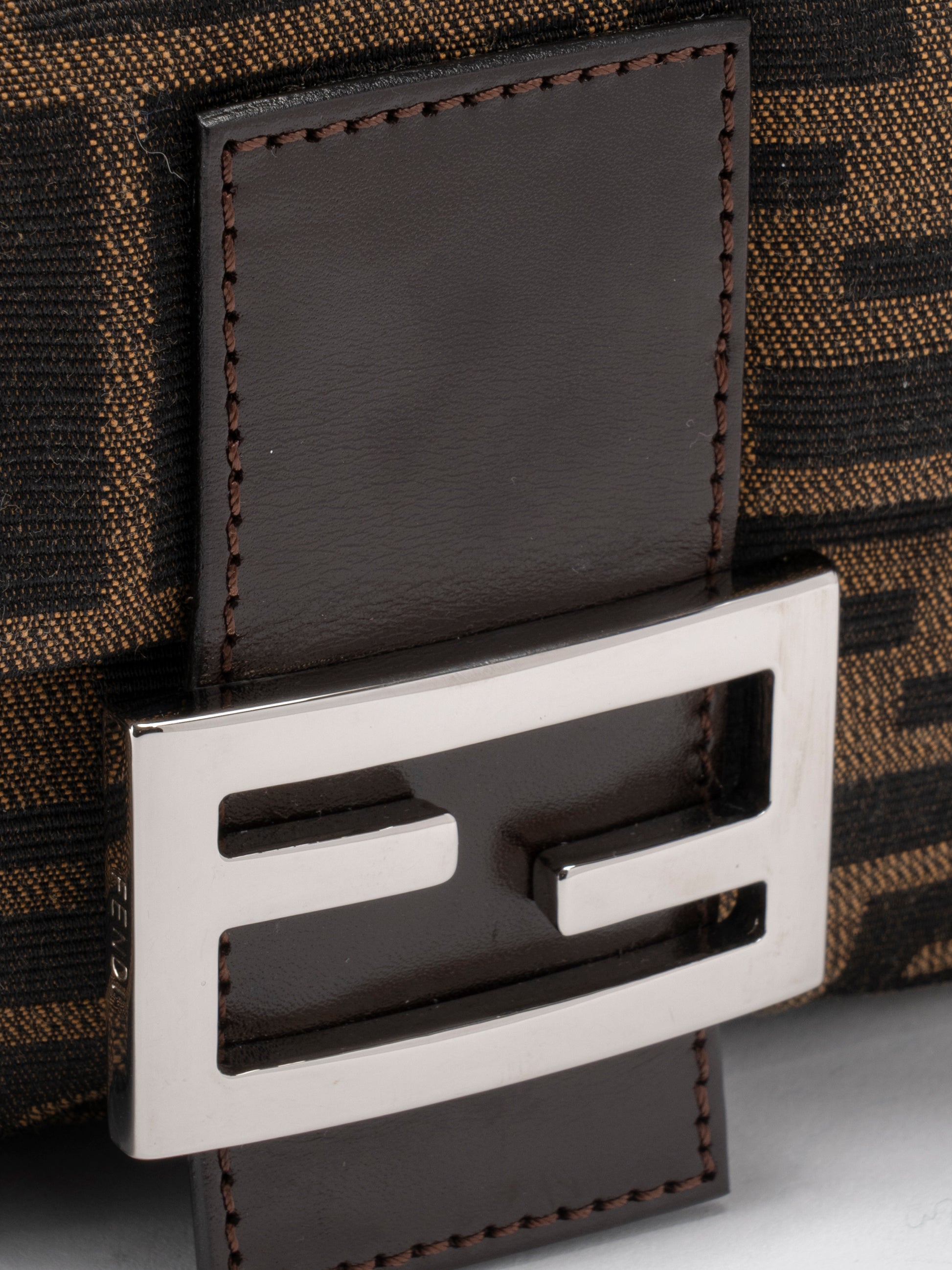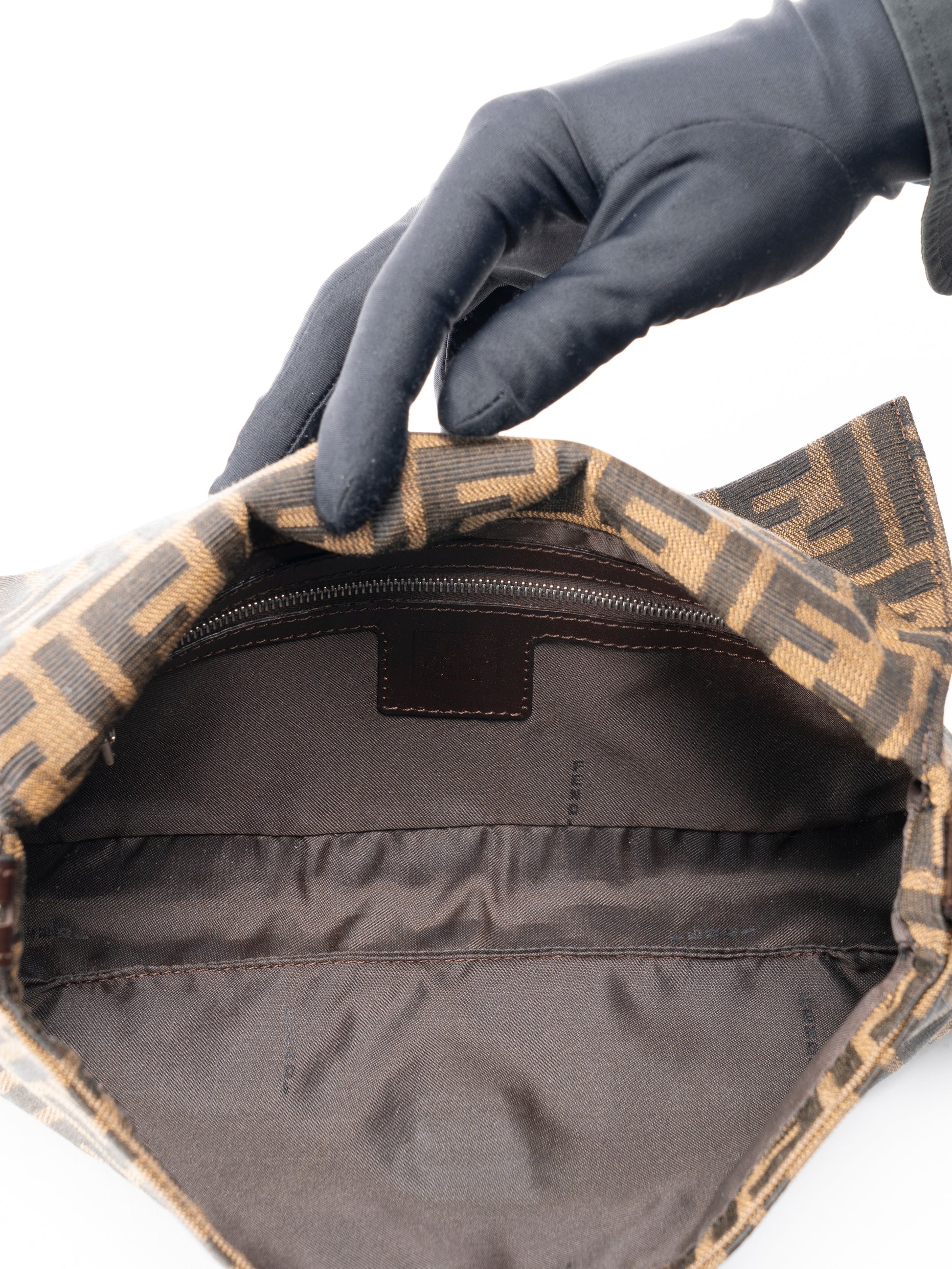 フェンディ ズッカ マンマバケット ショルダーバッグ キャンバス ブラウン シルバー金具