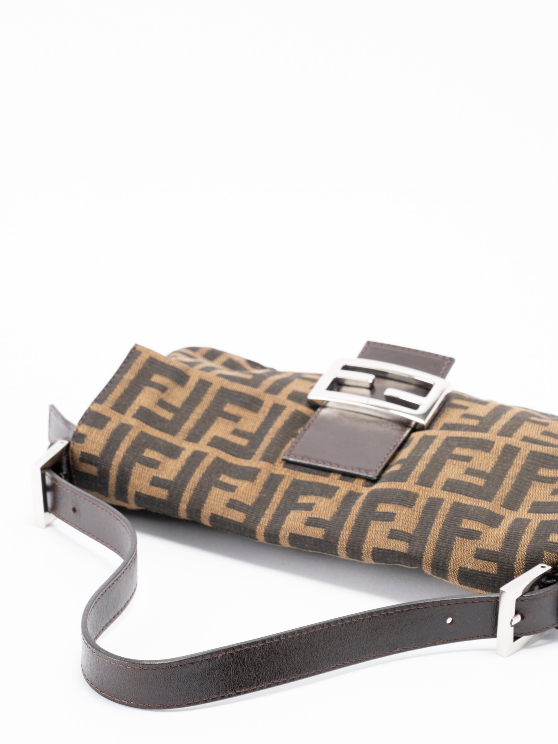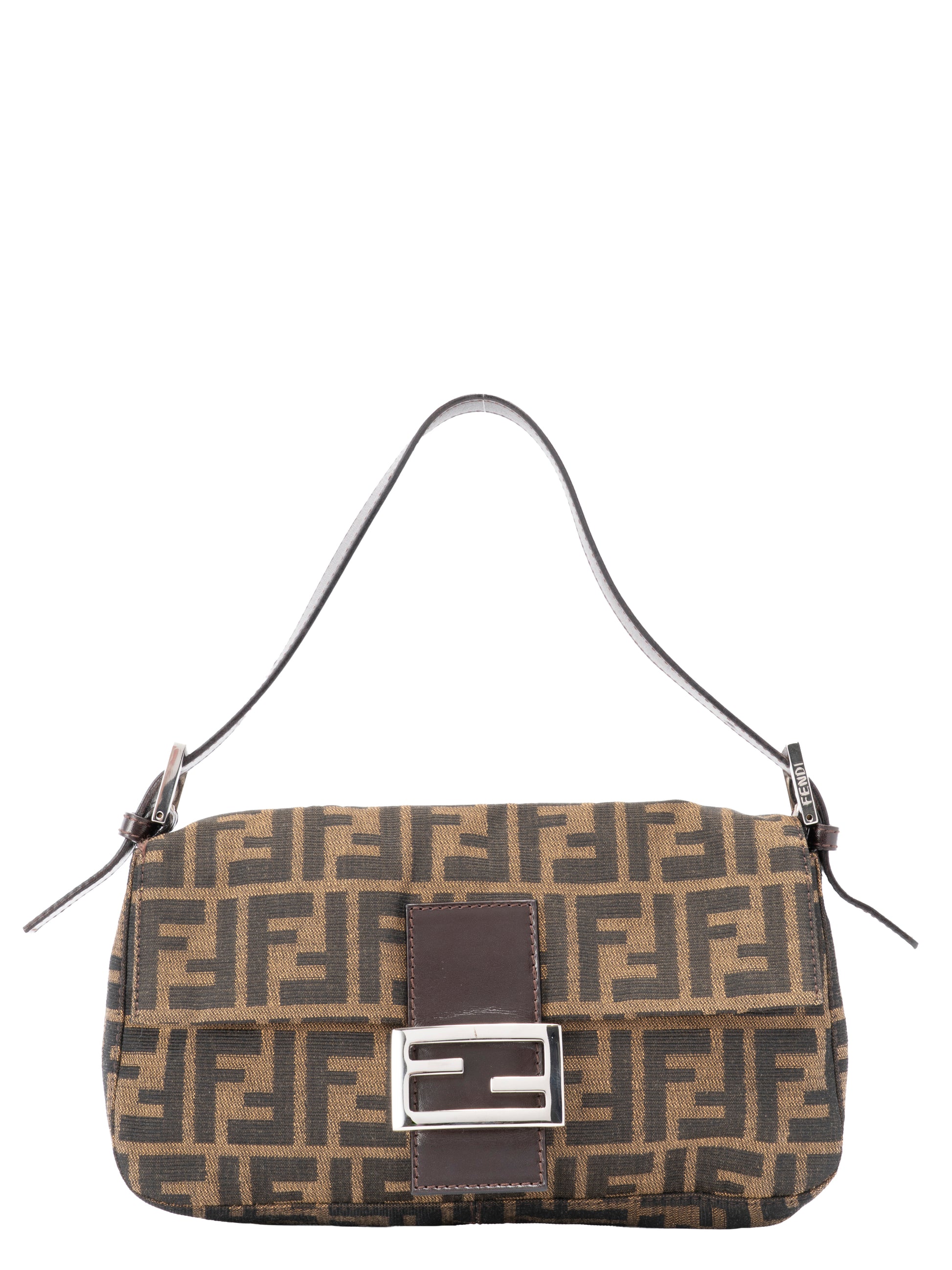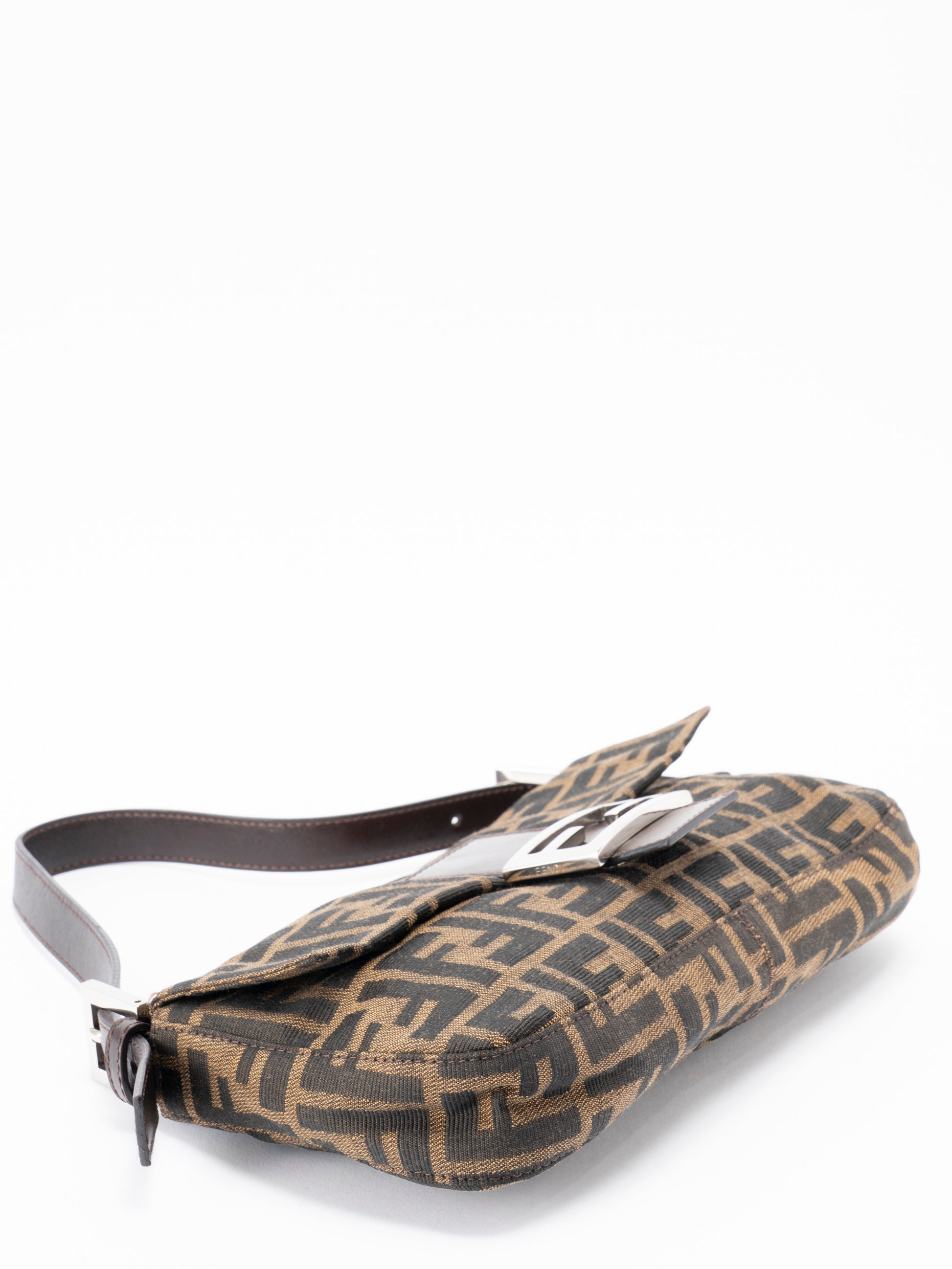 フェンディ ズッカ マンマバケット ショルダーバッグ キャンバス ブラウン シルバー金具