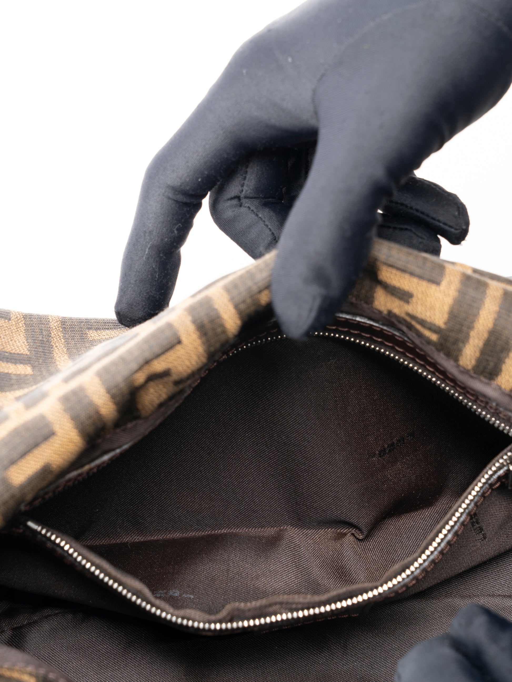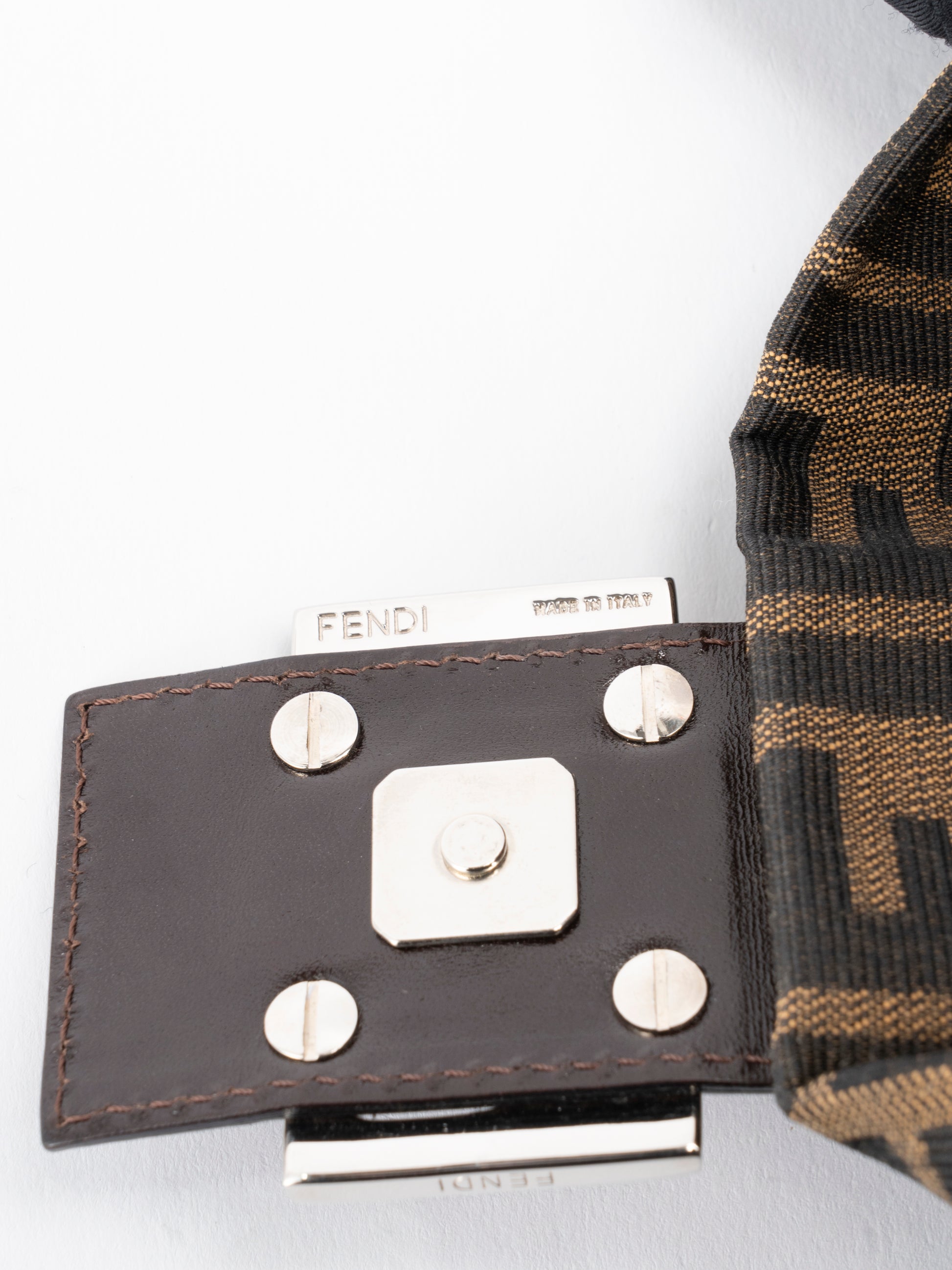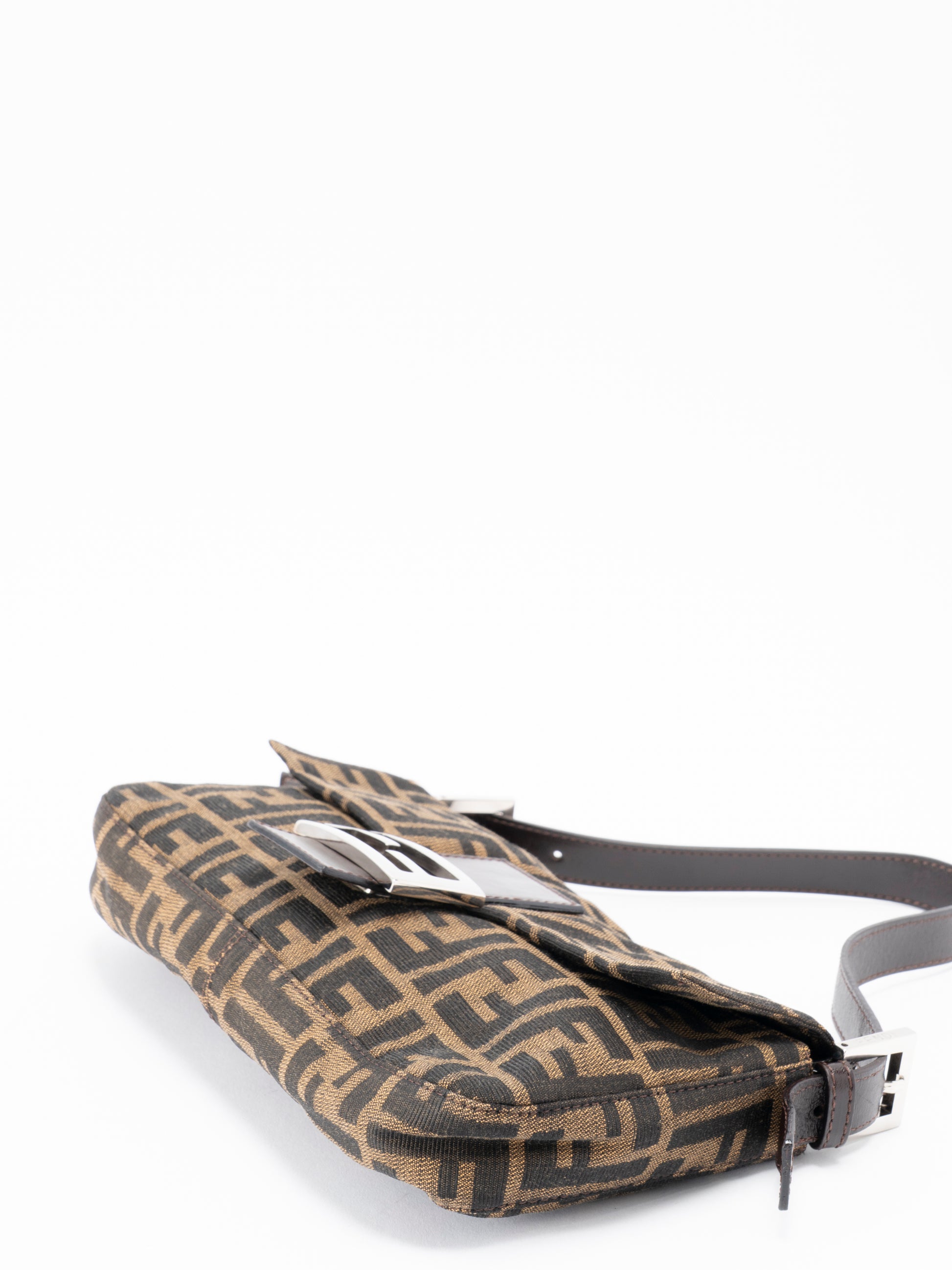 フェンディ ズッカ マンマバケット ショルダーバッグ キャンバス ブラウン シルバー金具
