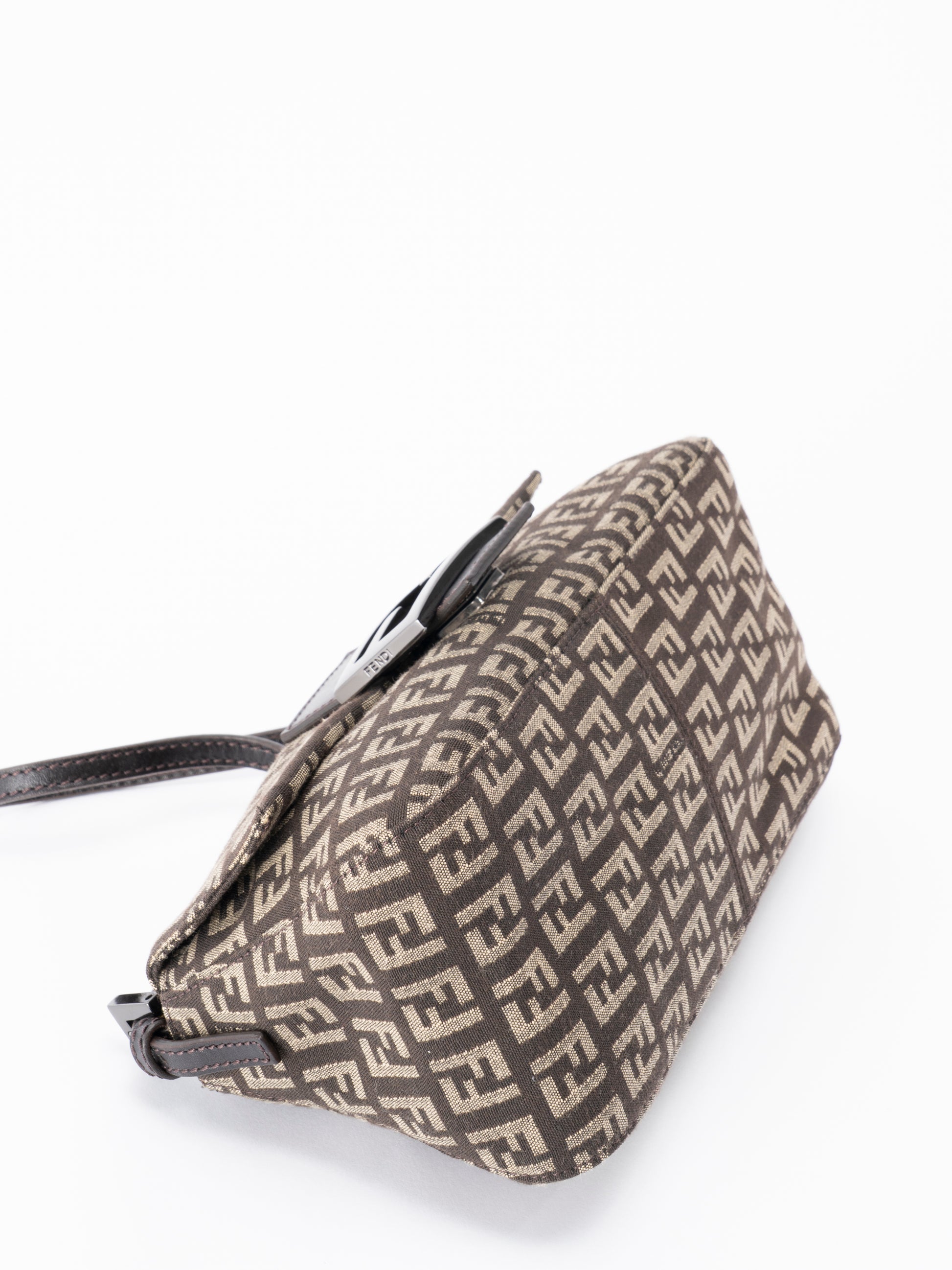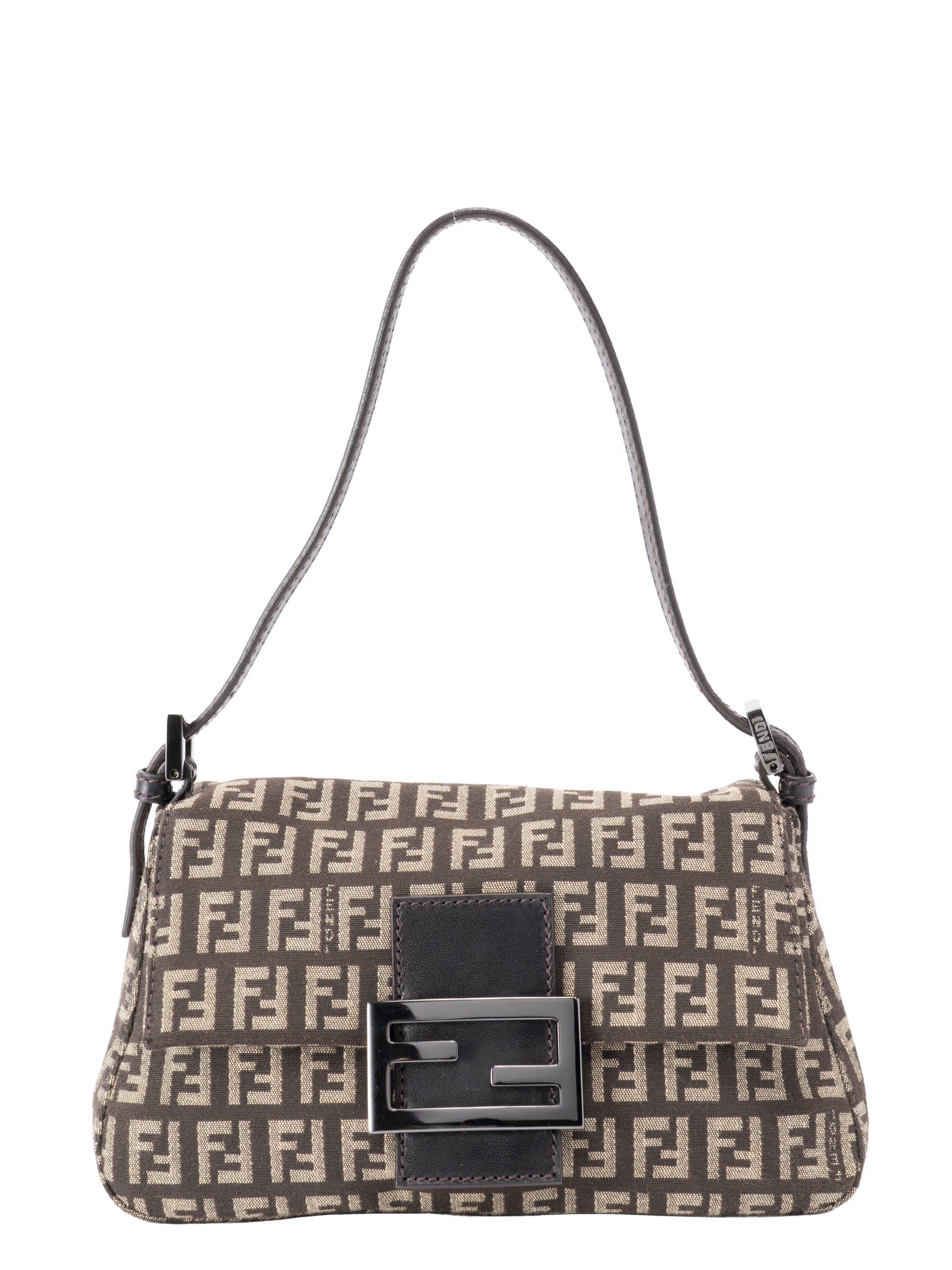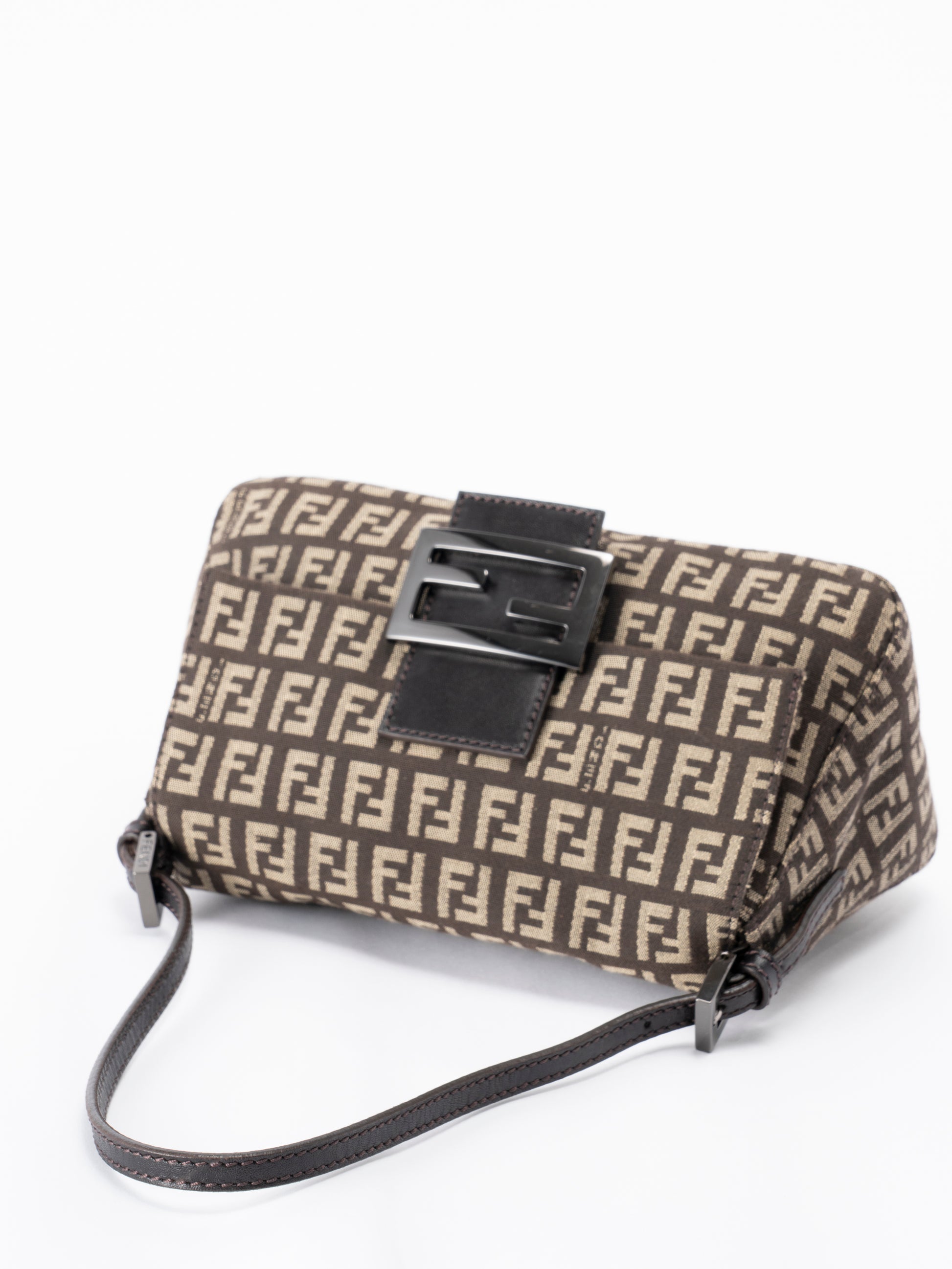 フェンディ ズッキーノ ミニハンドバッグ キャンバス ブラウン ブラック金具