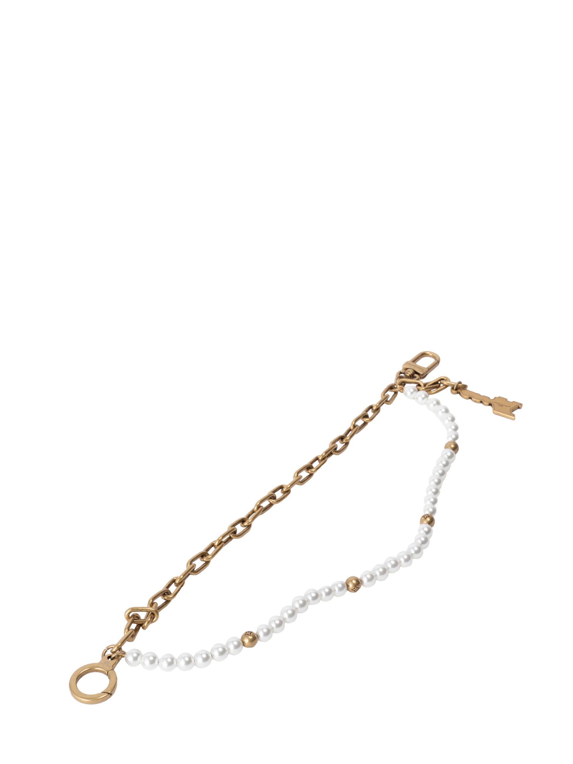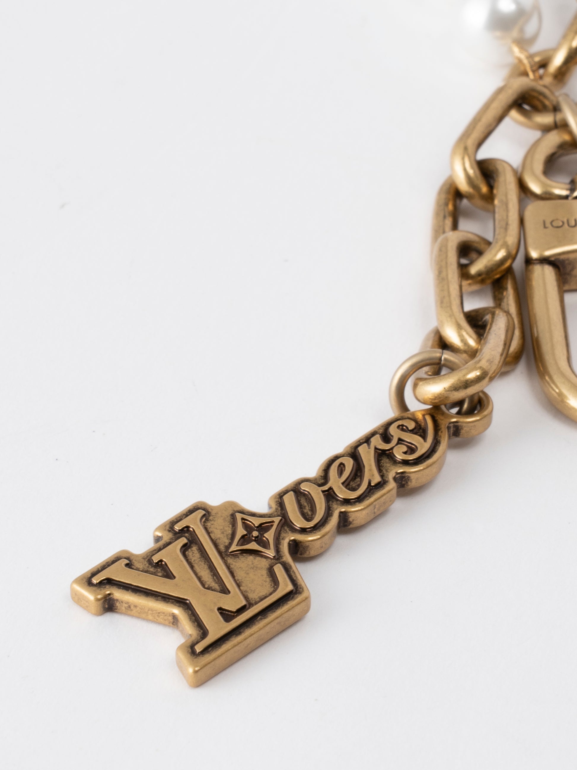 ルイ・ヴィトン M01689 チェーンベルト LVロゴプレート付 パールチェーンリンクチャーム 金メッキ×パール ゴールド