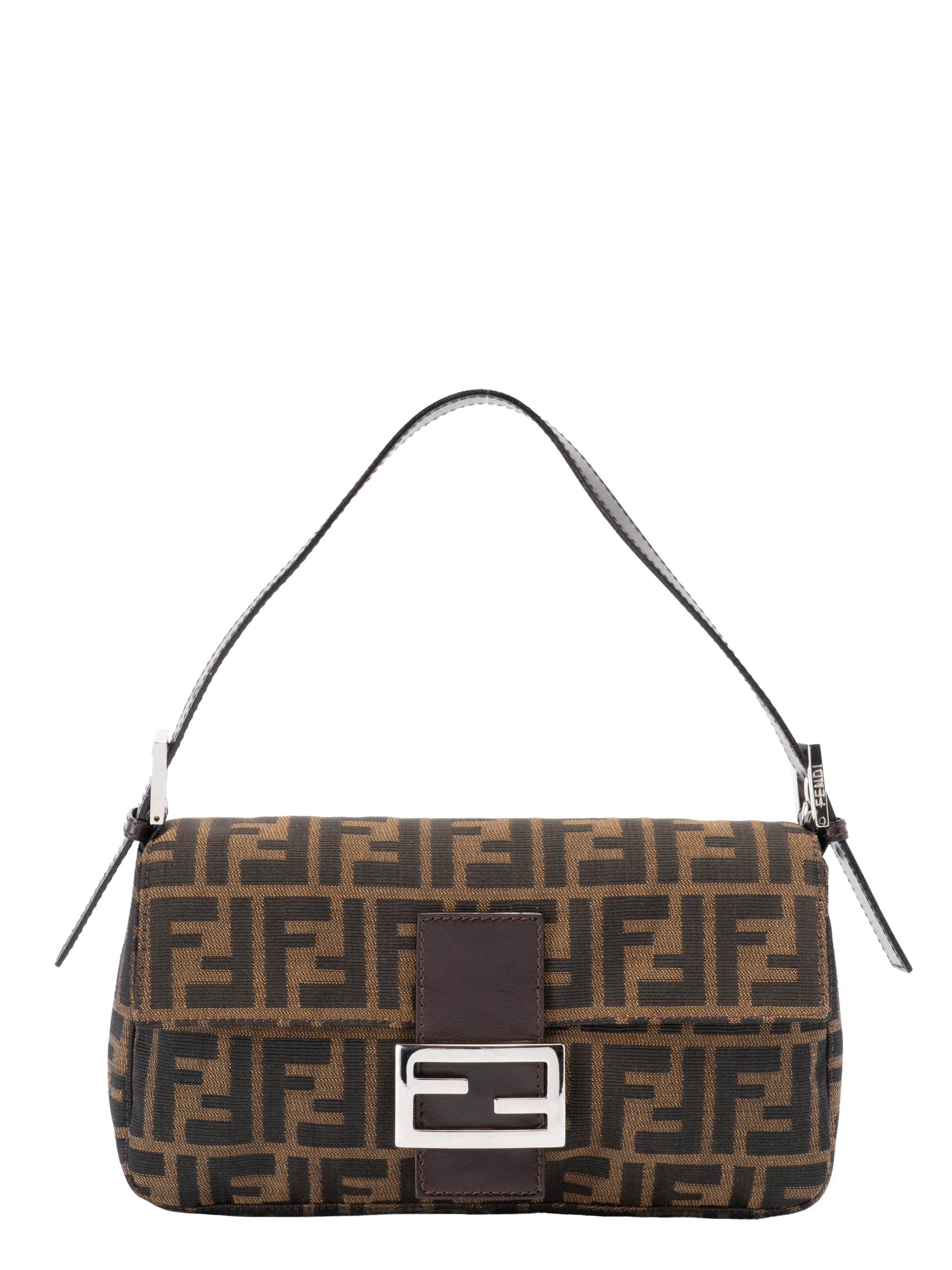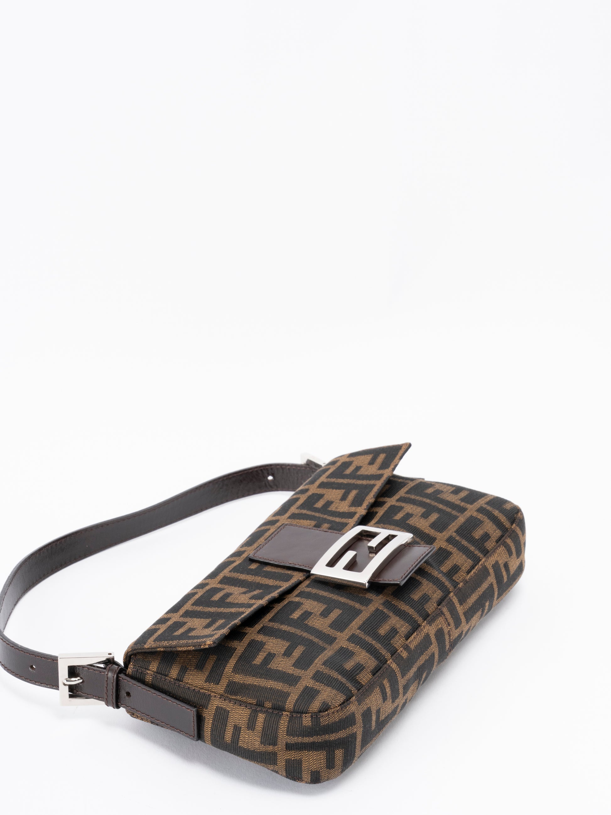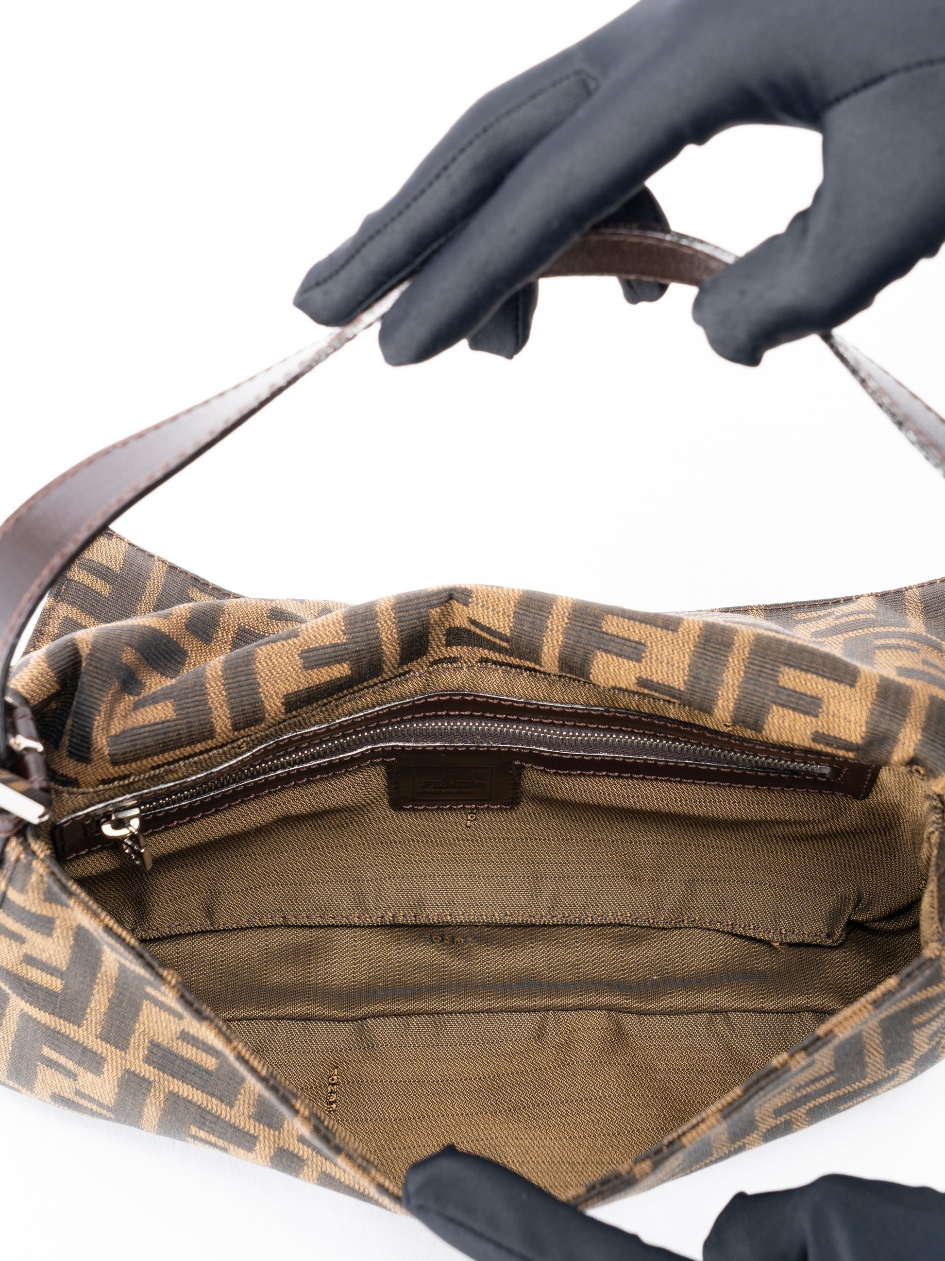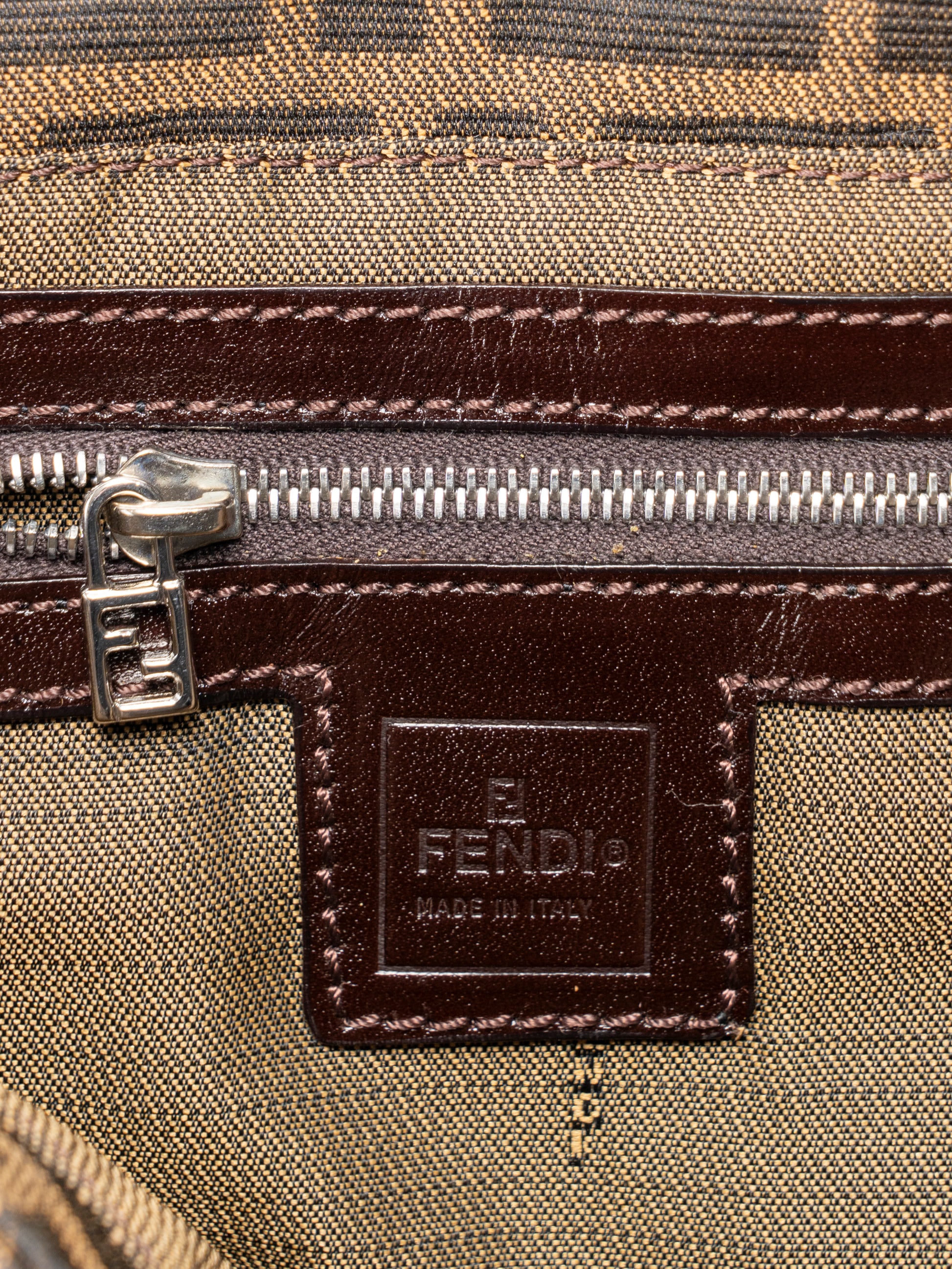 フェンディ ズッカ マンマバケット ショルダーバッグ キャンバス ブラウン シルバー金具