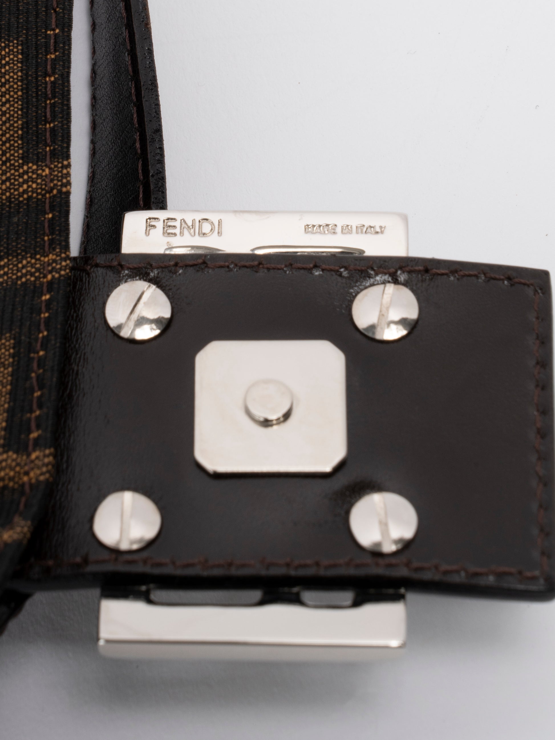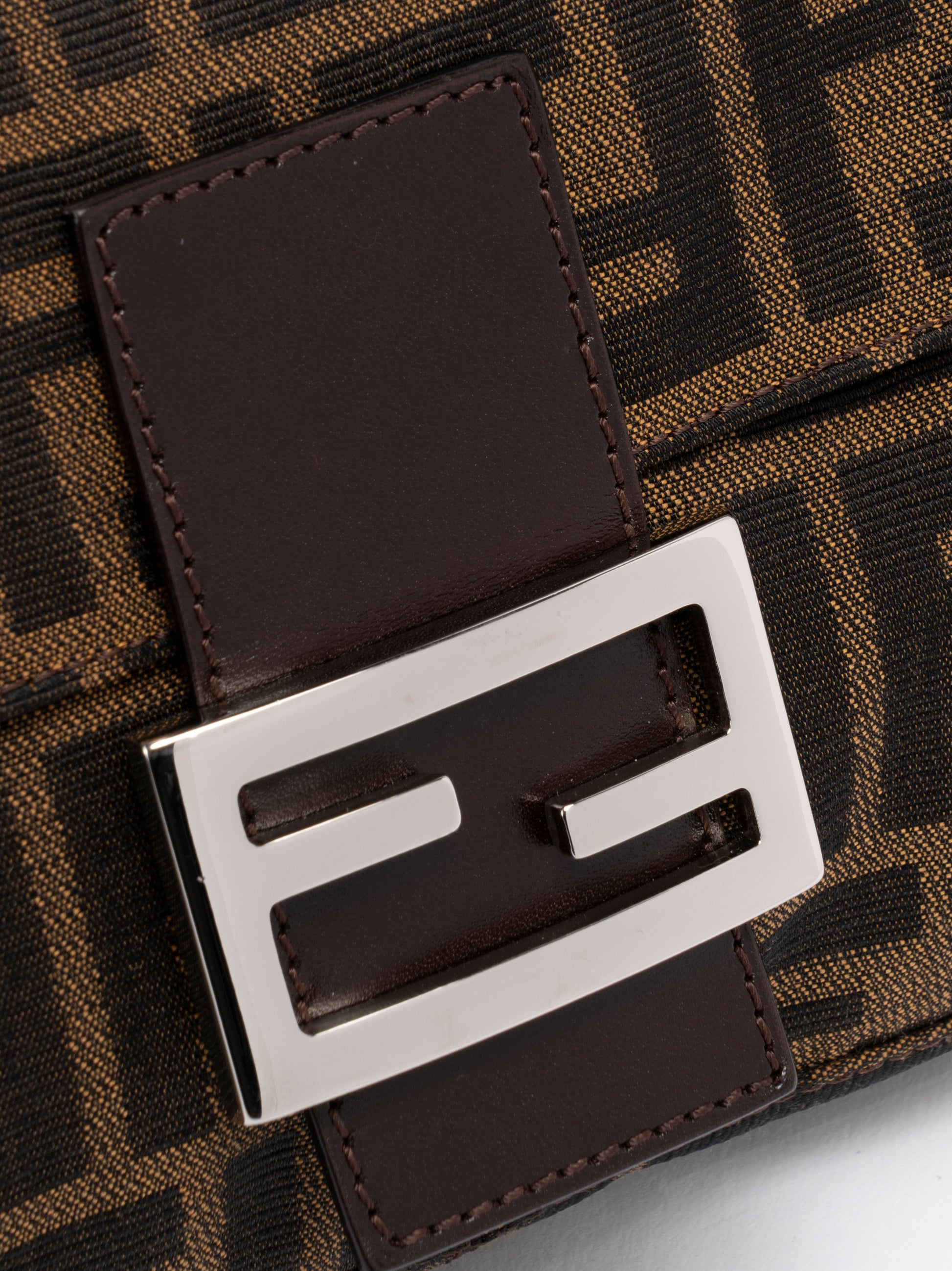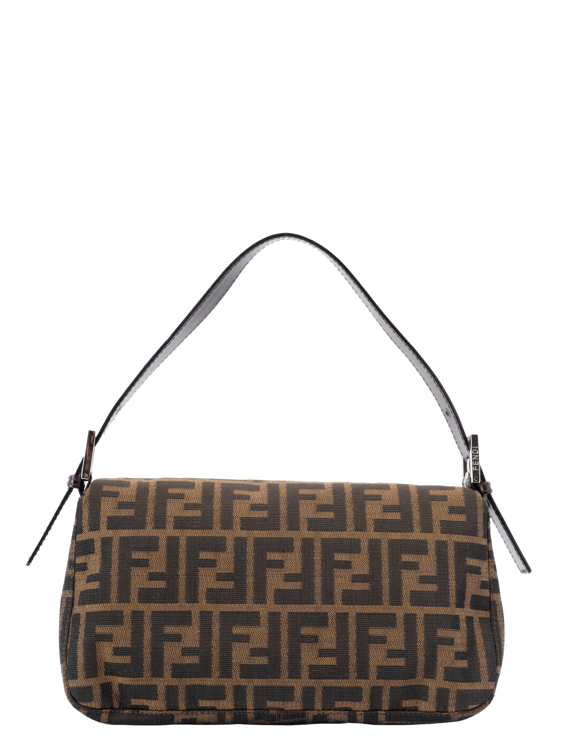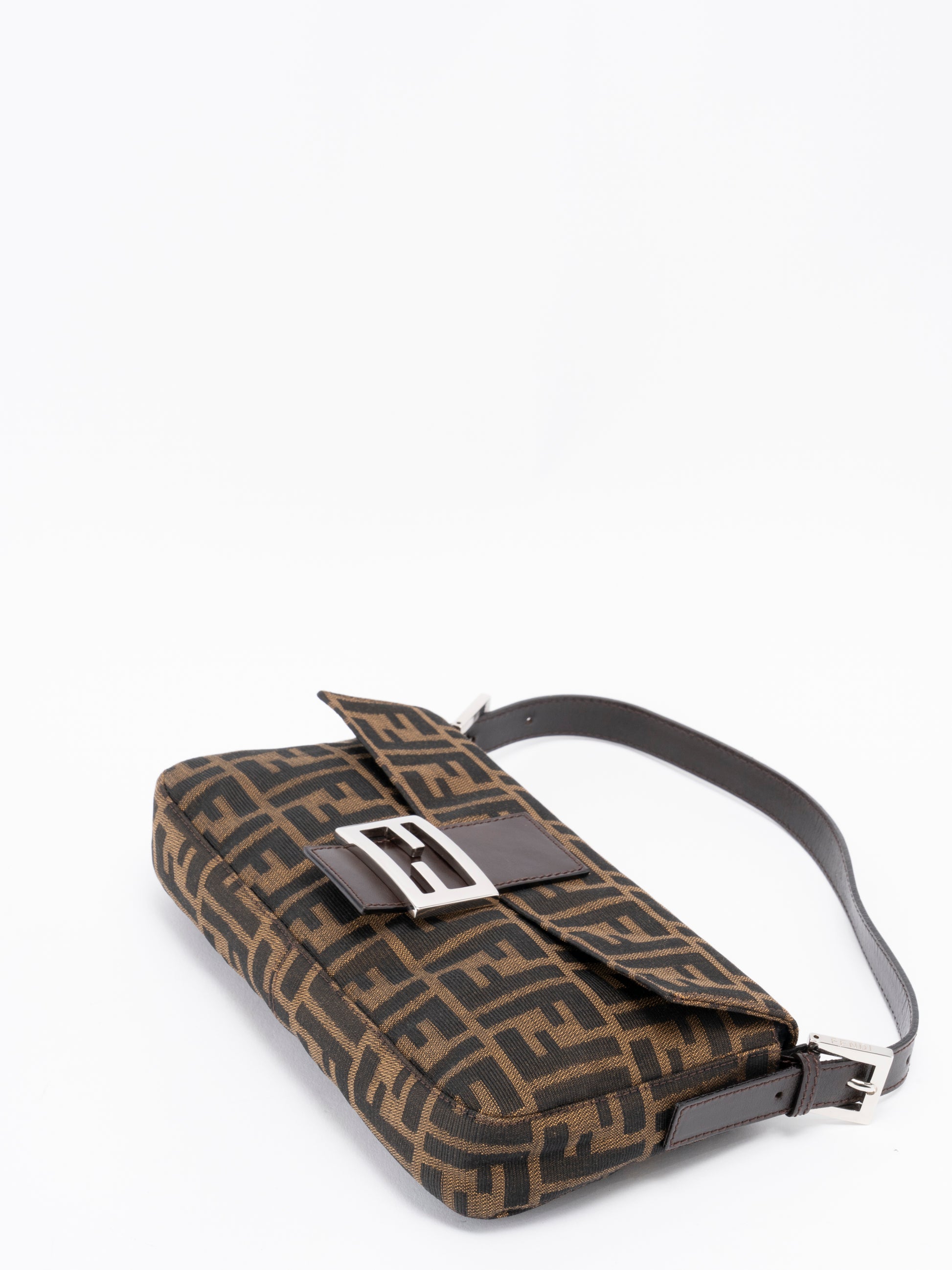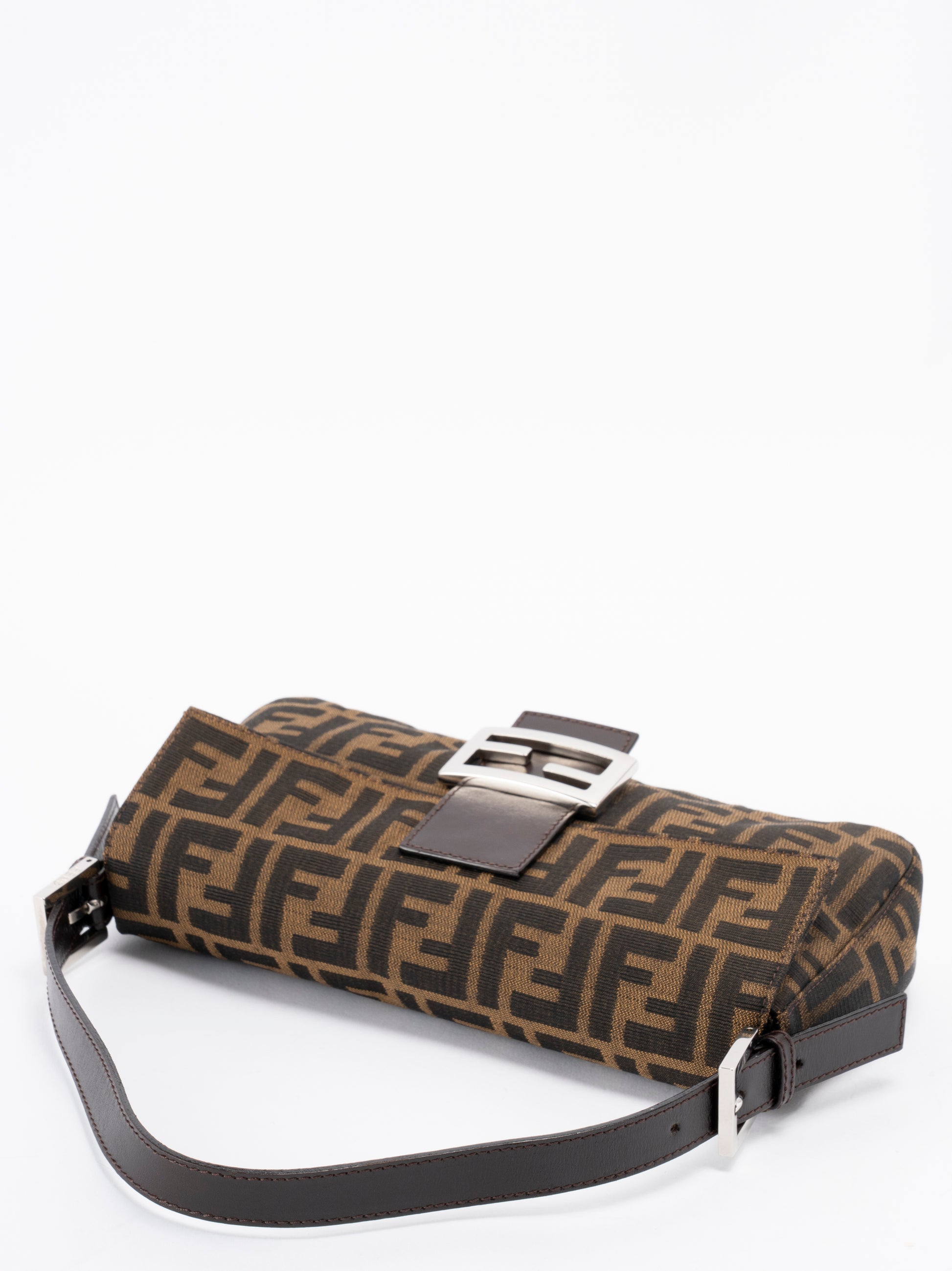 フェンディ ズッカ マンマバケット ショルダーバッグ キャンバス ブラウン シルバー金具